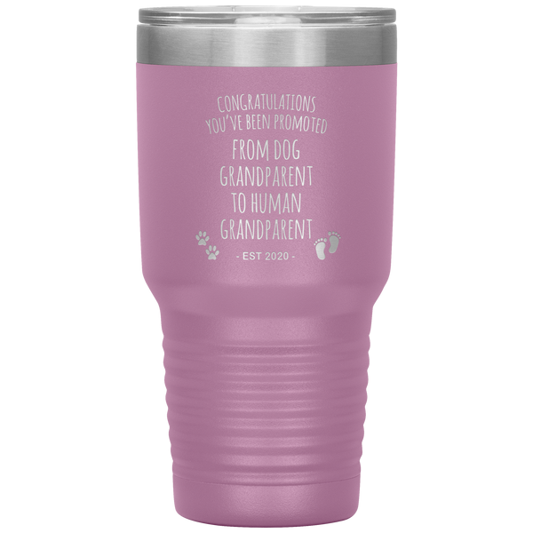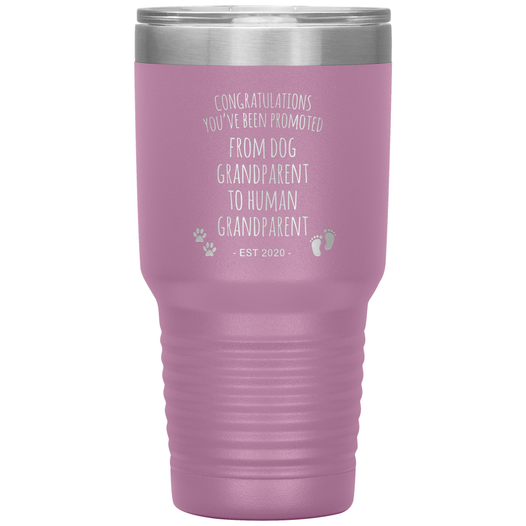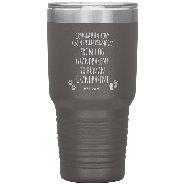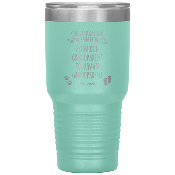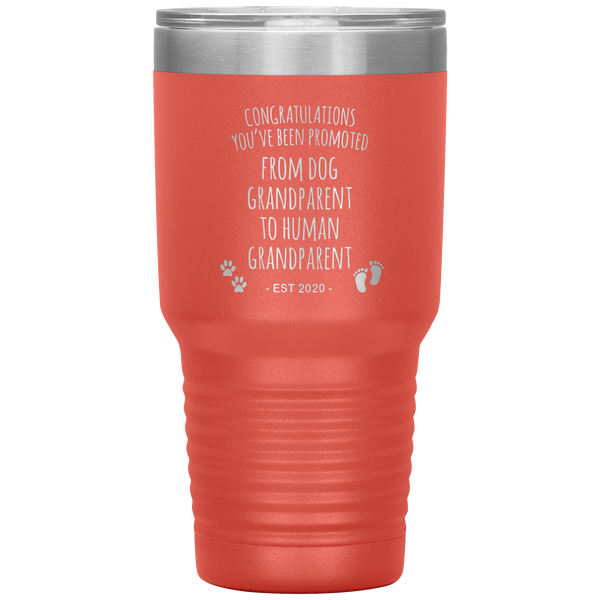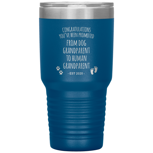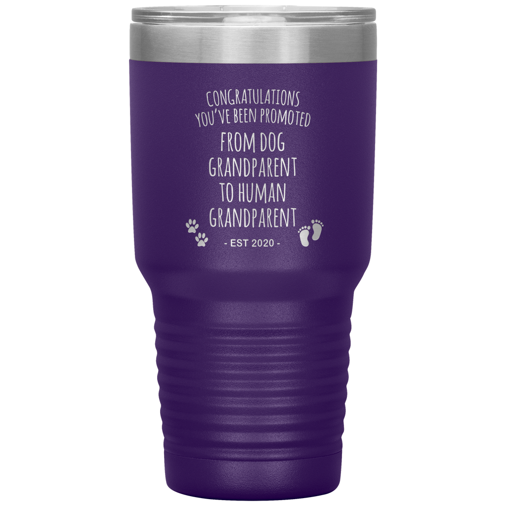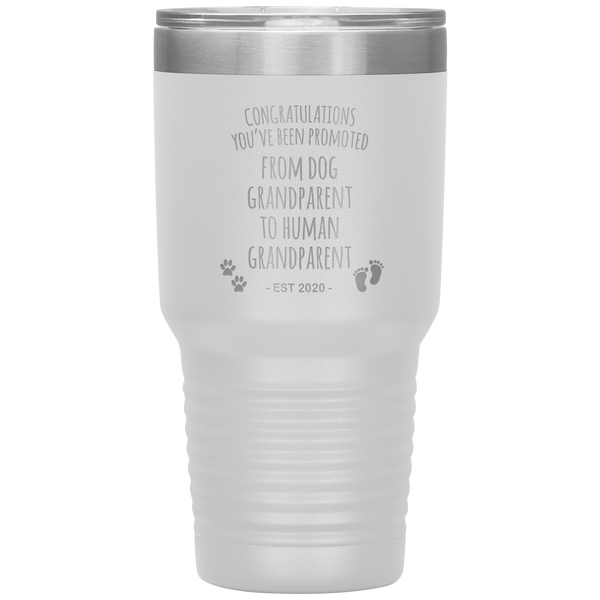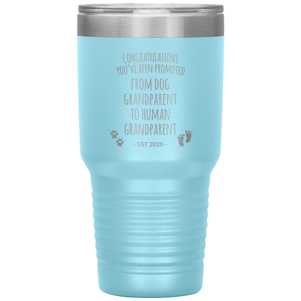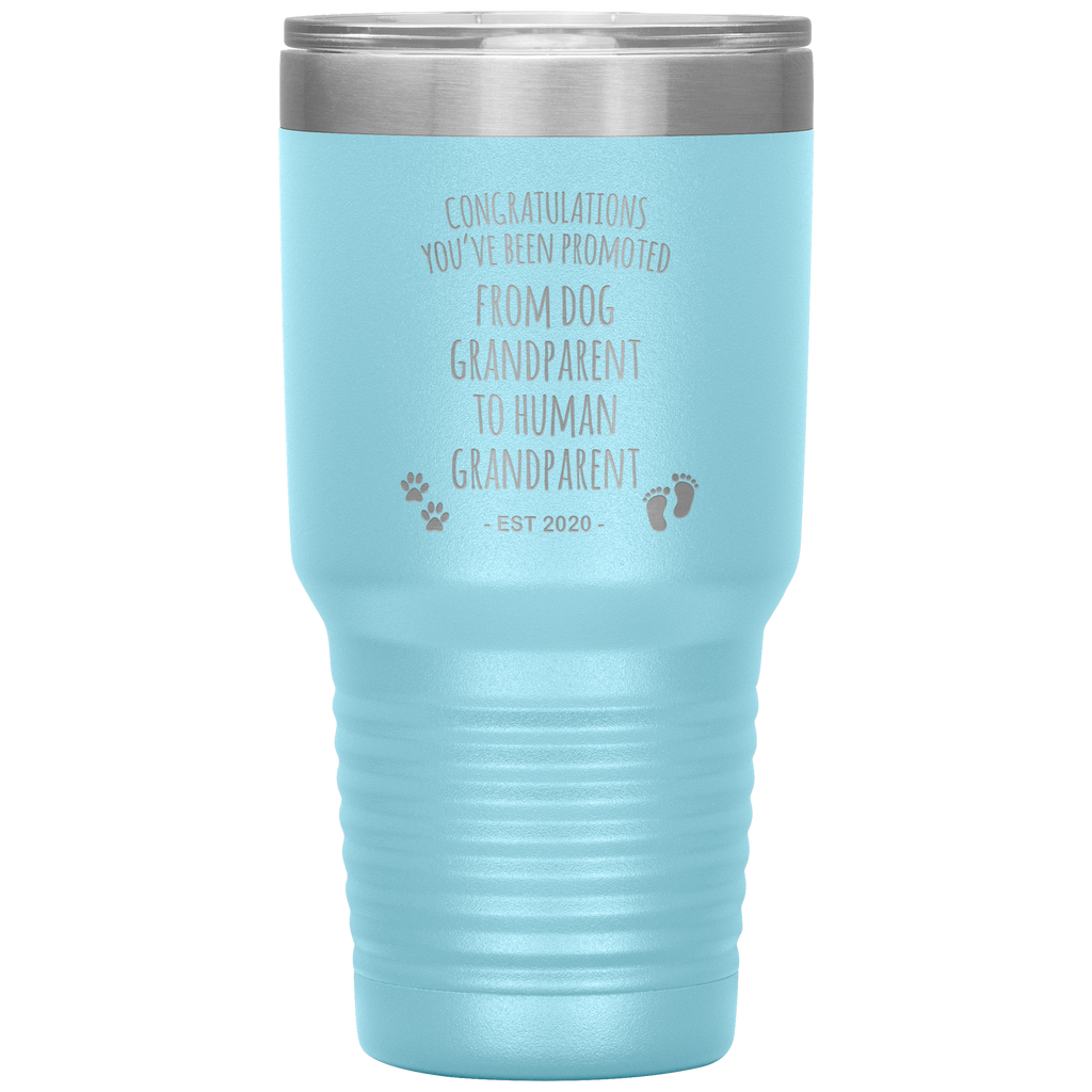 Dog Grandparent To Human Grandparent Est 2020 Pregnancy Reveal First Time Grandma Gift Promoted to Grandparent Tumbler Travel Coffee Cup BPA Free