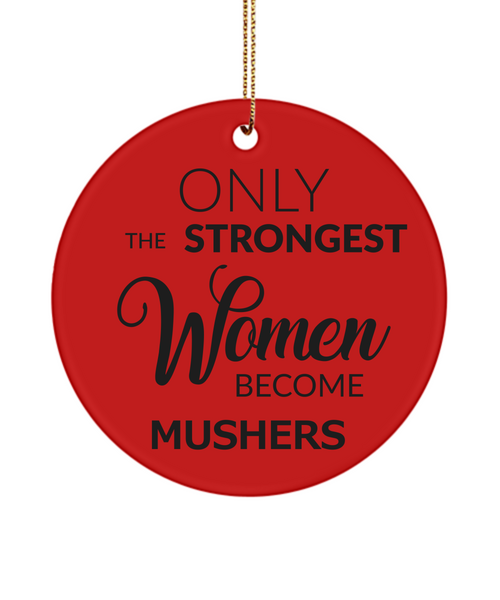 Female Musher Only The Strongest Women Become Mushers Ceramic Christmas Tree Ornament
