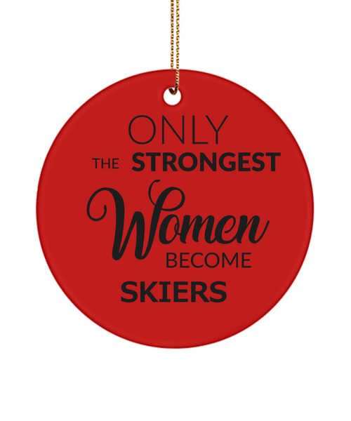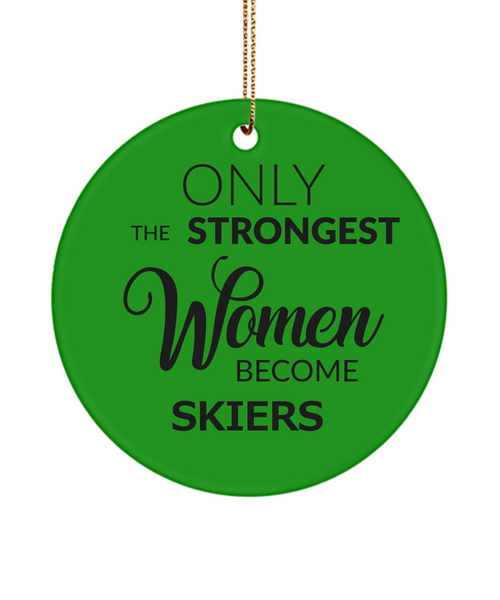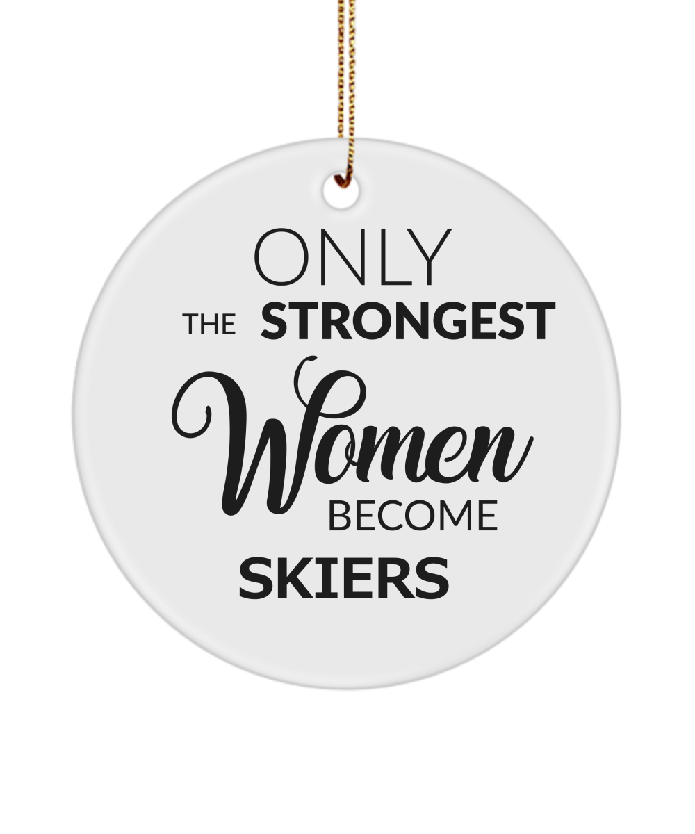 Female Skier Skiing Ornament Only The Strongest Women Become Skiers Ceramic Christmas Tree Ornament