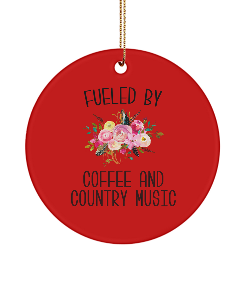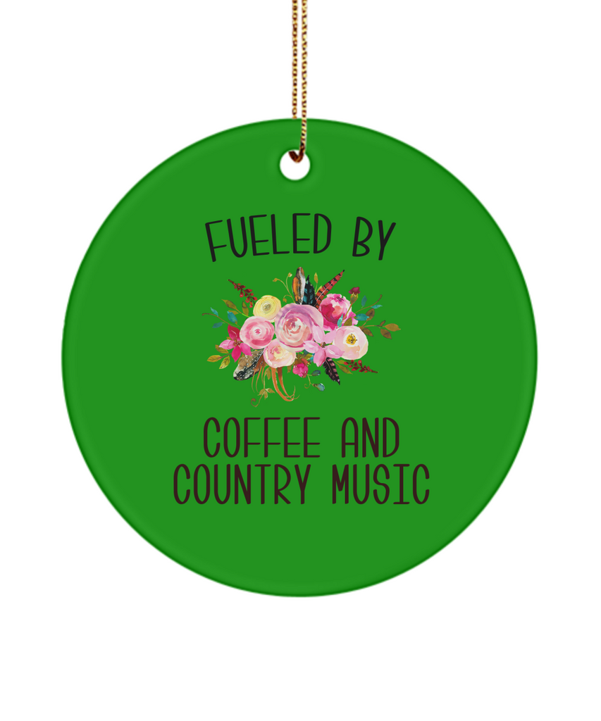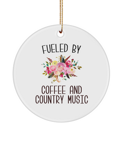 Fueled By Coffee And Country Music Lover Ceramic Christmas Tree Ornament