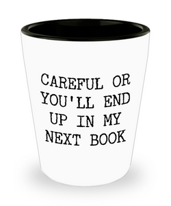 Funny Book Author Gift for Men Women Careful or You'll End Up in My Next Book Shot Glass