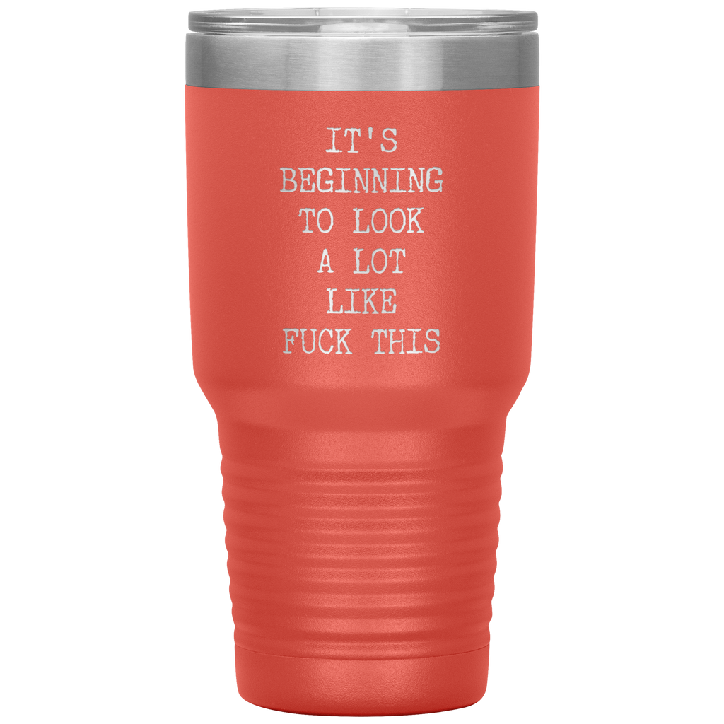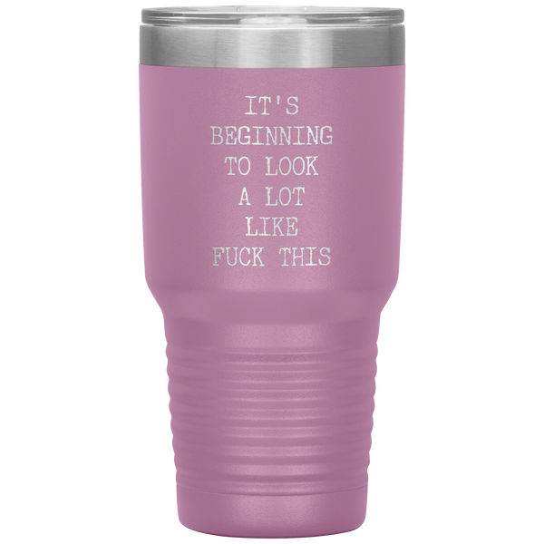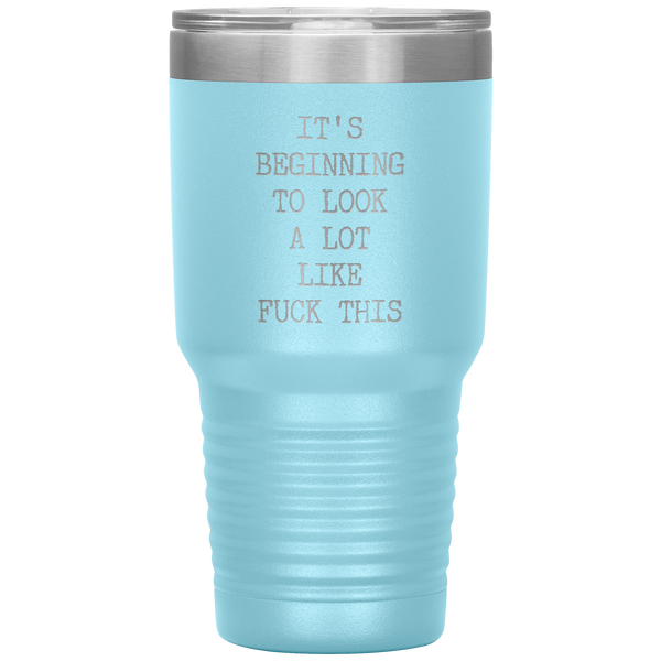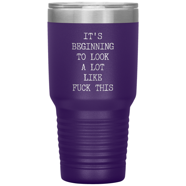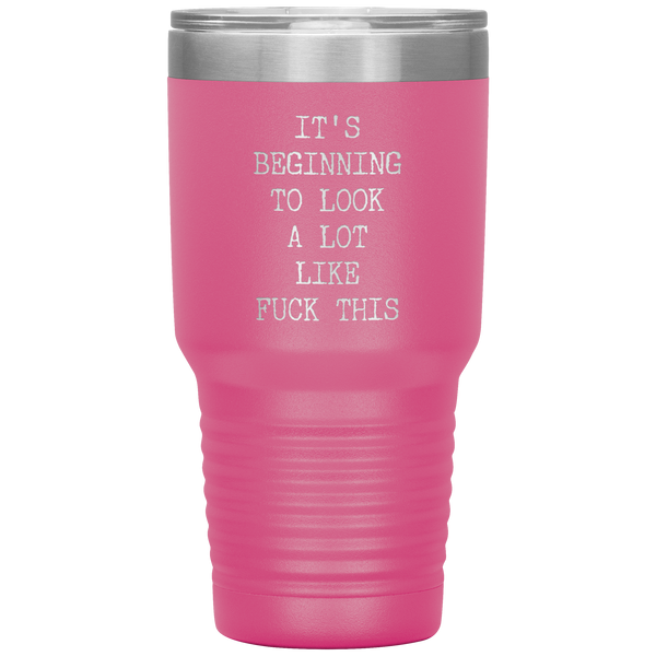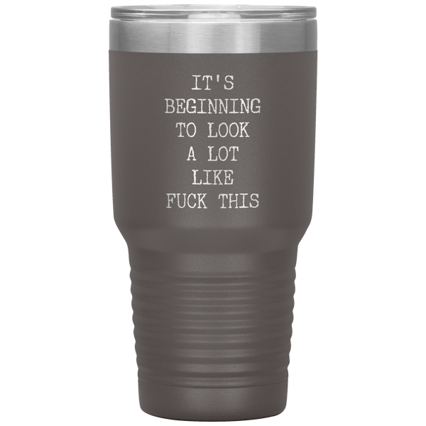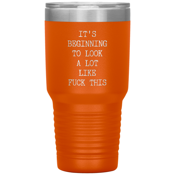 Funny Christmas Gift Exchange Rude Offensive Profanity It's Beginning to Look Lot Like Fuck This Mature Tumbler Insulated Travel Coffee Cup BPA Free