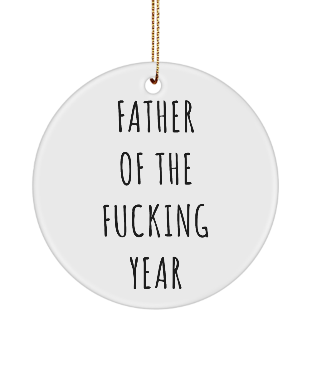 Funny Dad Ornament Father Of The Fucking Year Ceramic Christmas Tree Ornament