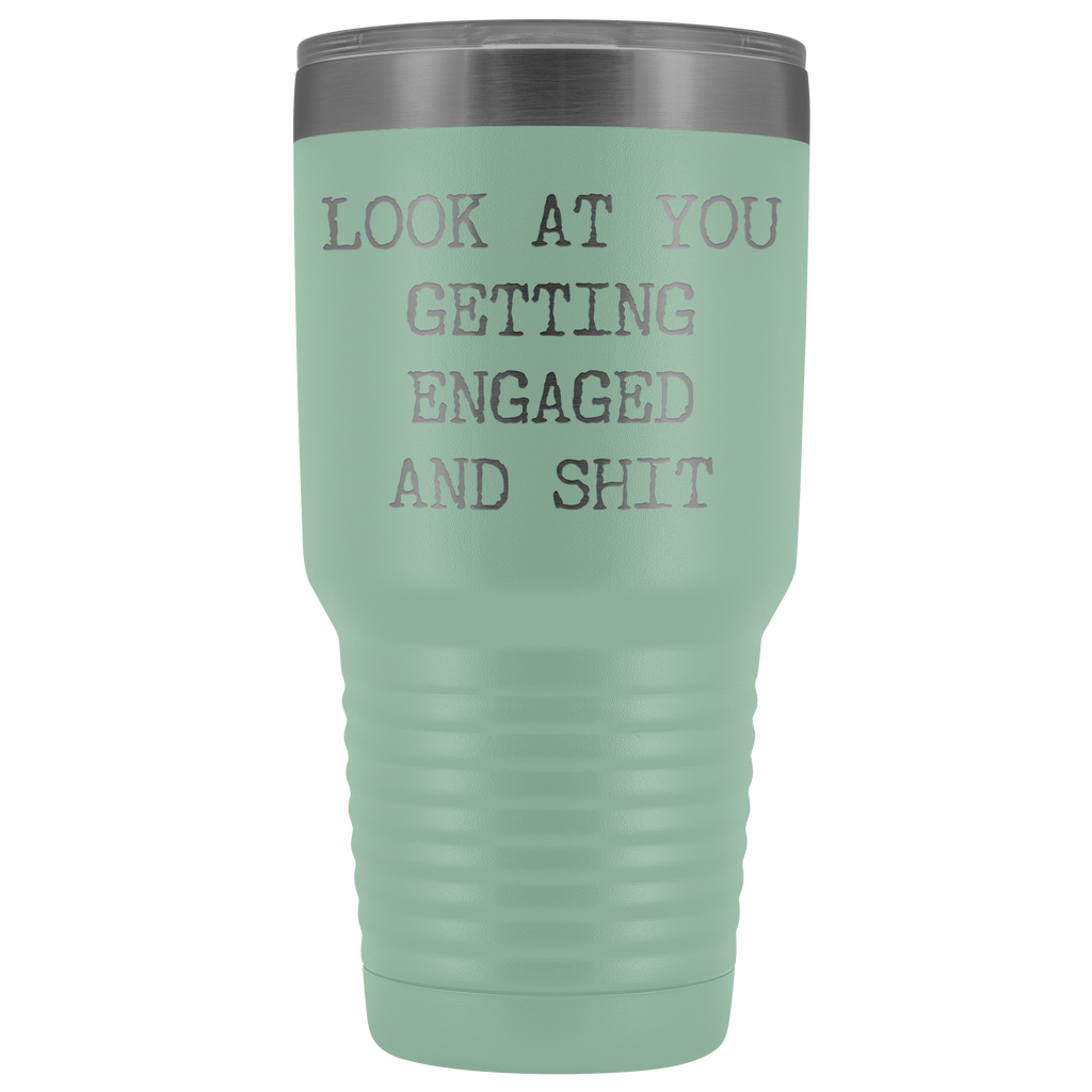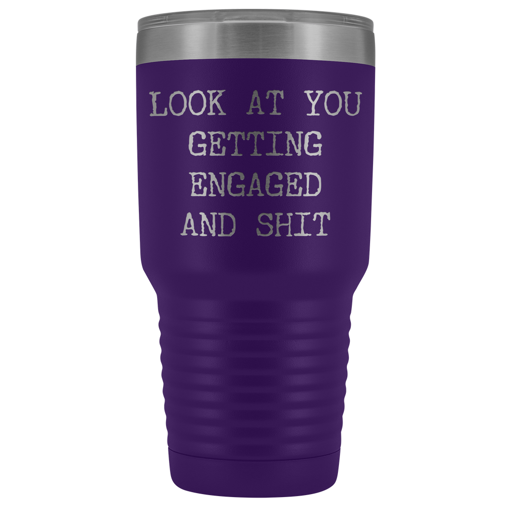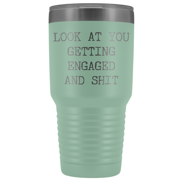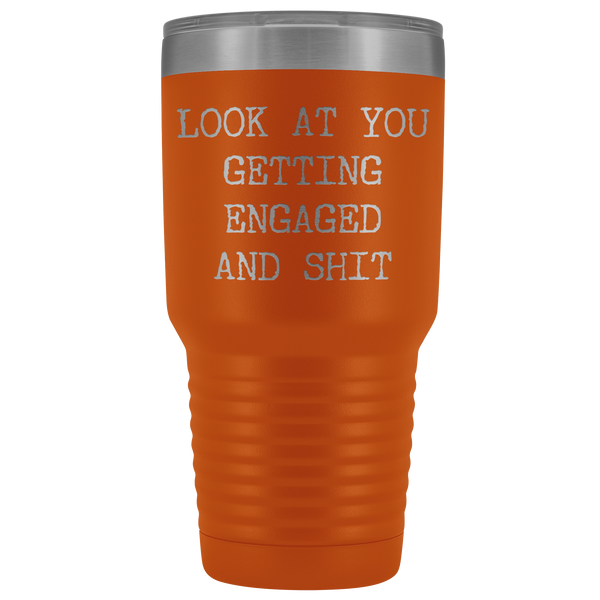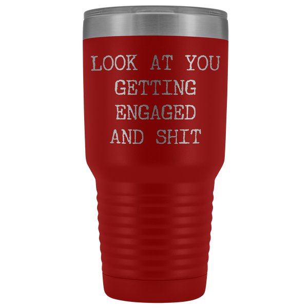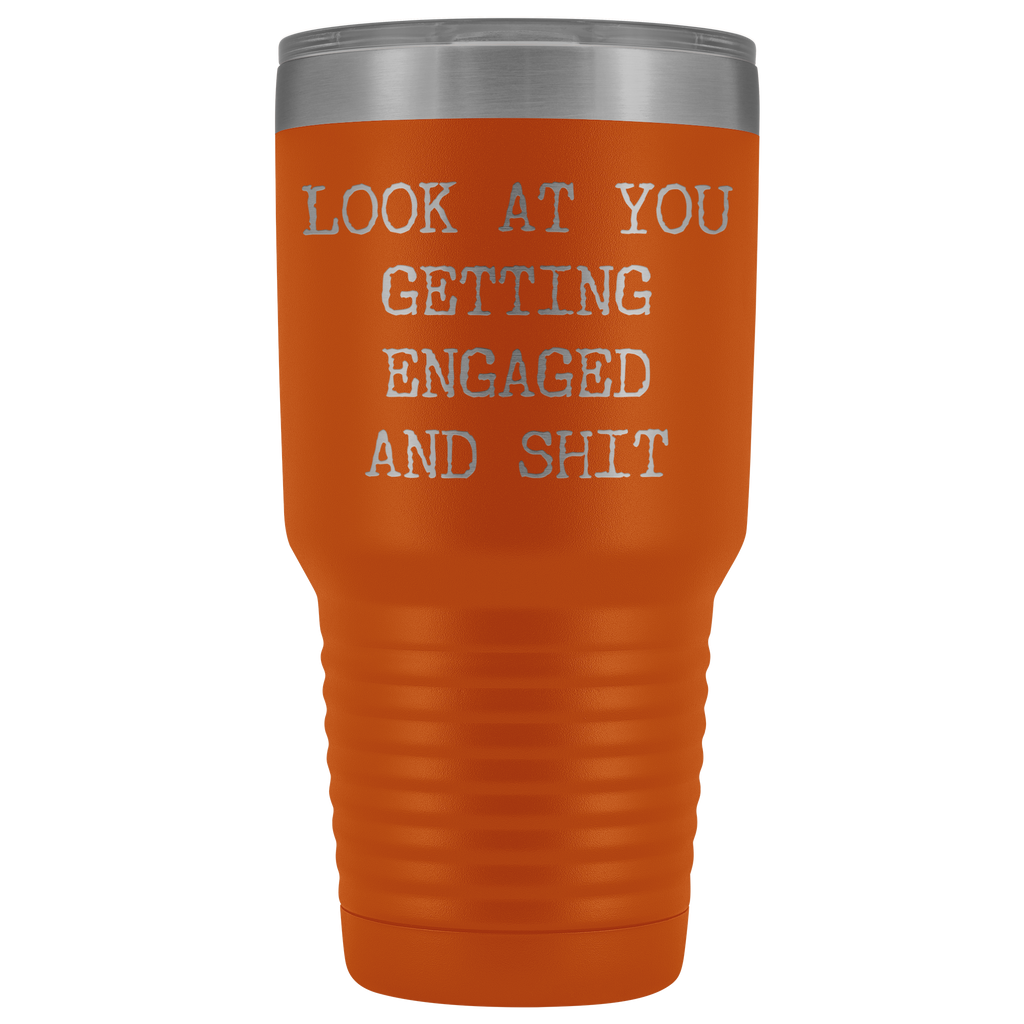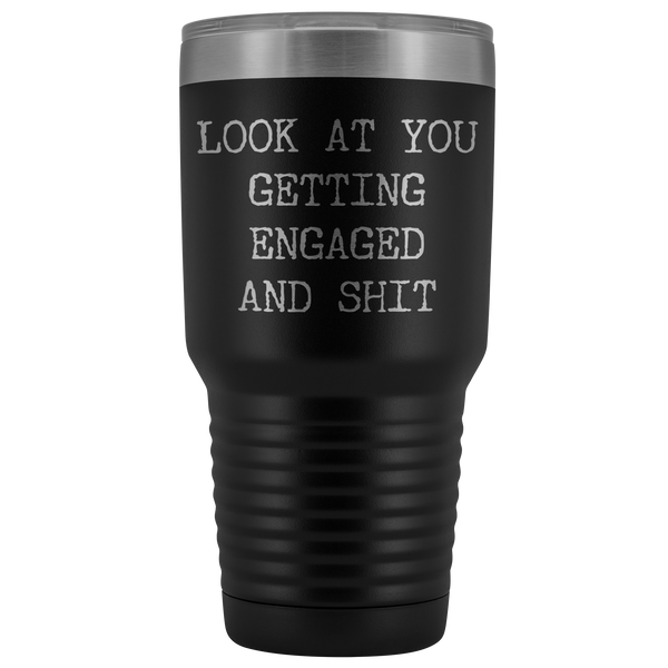 Funny Engagement Gifts Look at You Getting Engaged Tumbler Metal Mug Insulated Hot Cold Travel Coffee Cup 30oz BPA Free
