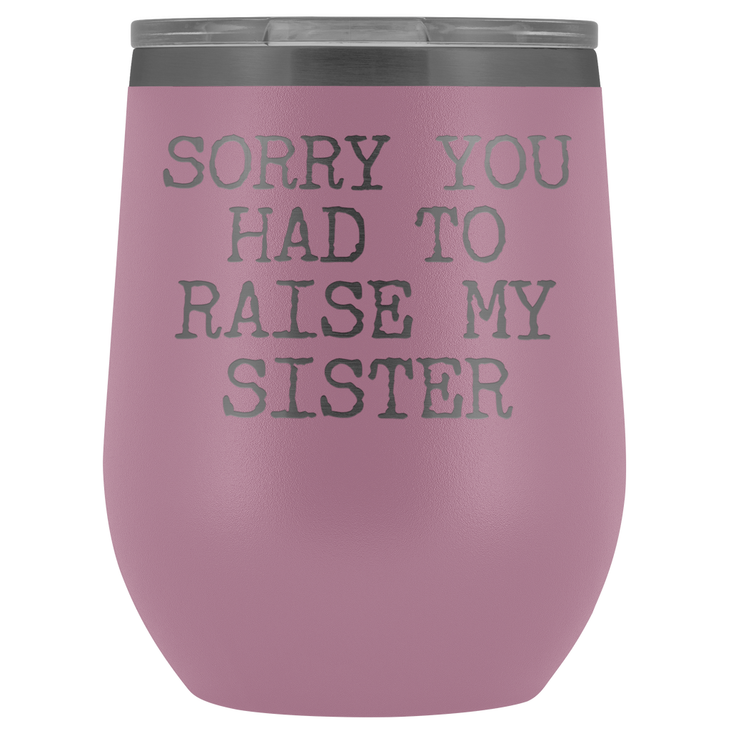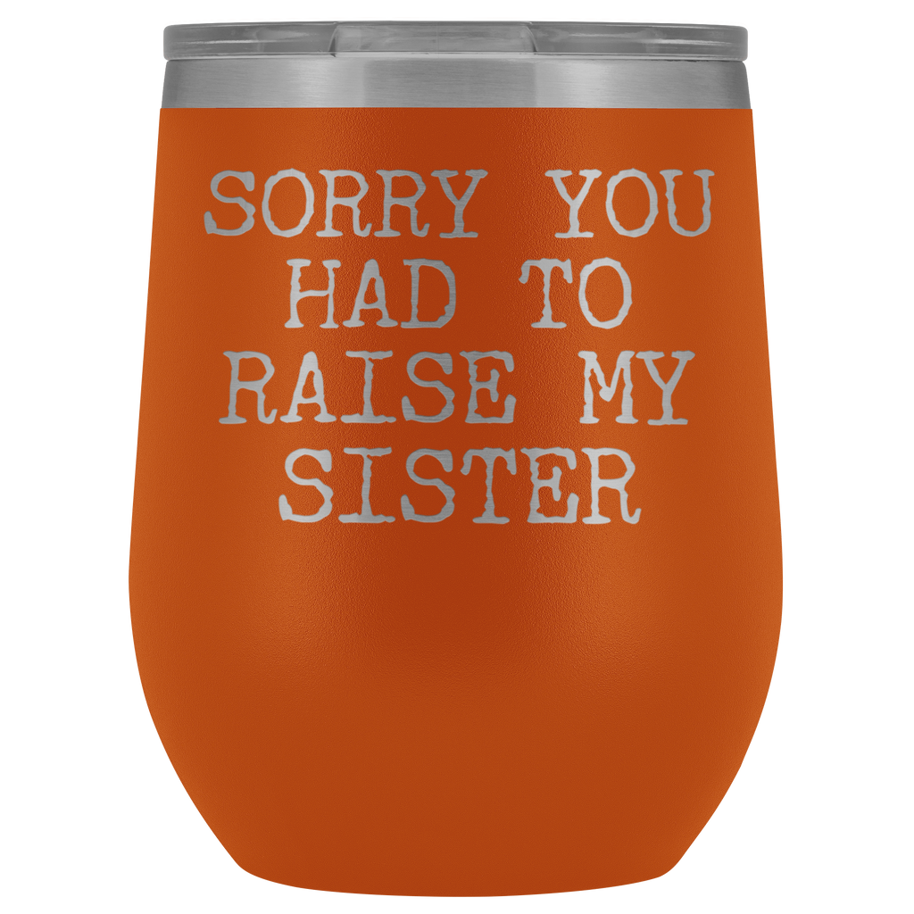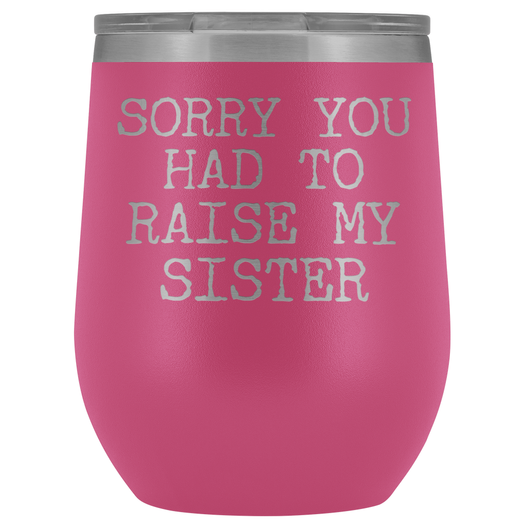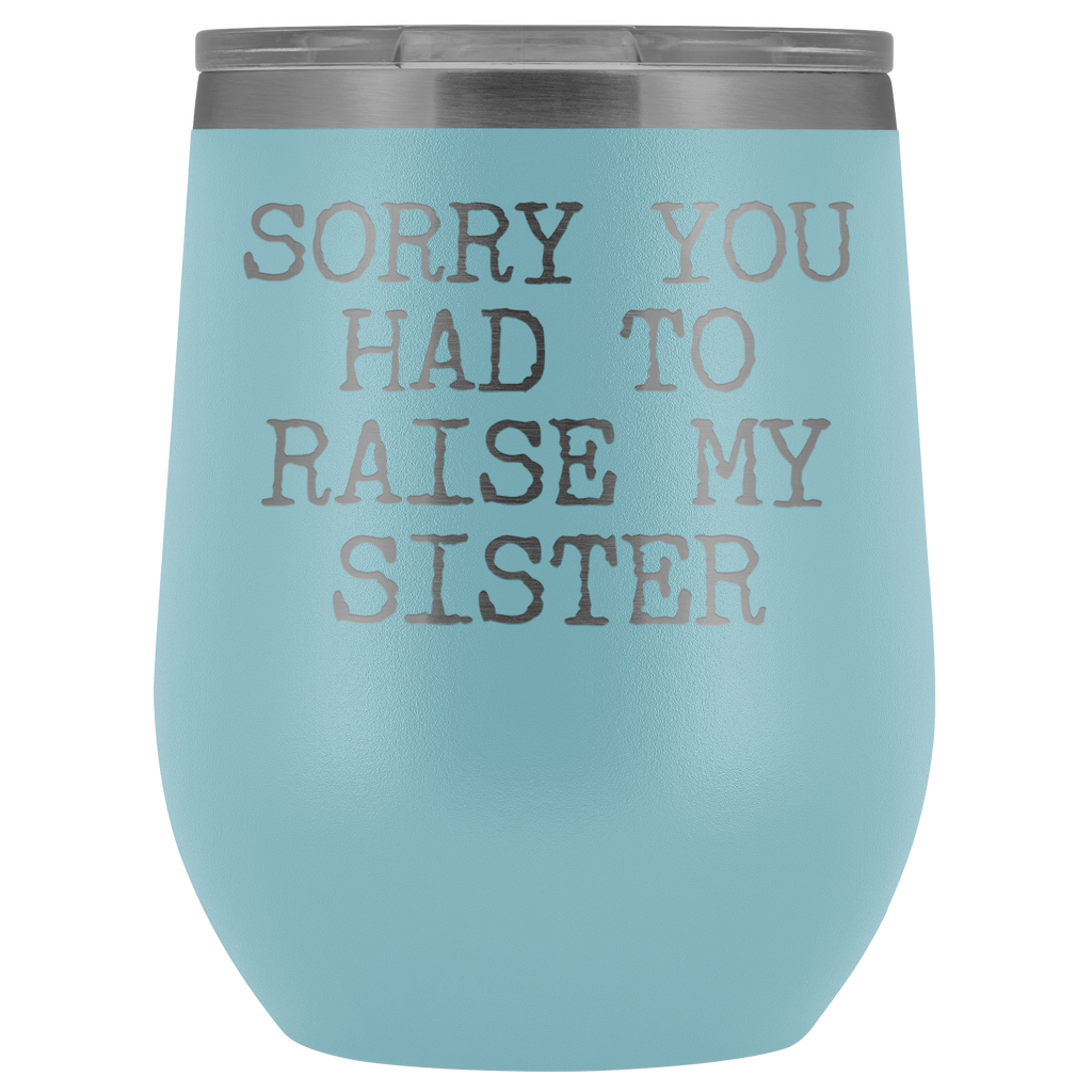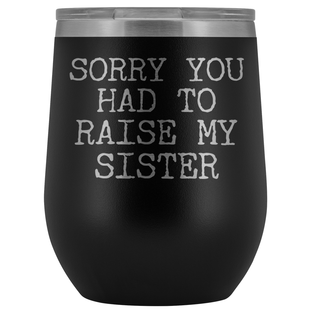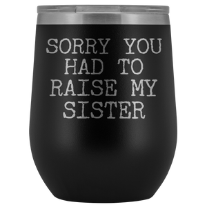 Funny Mother's Day Gift Sorry You Had to Raise My Sister Stemless Stainless Steel Insulated Wine Tumbler Cup BPA Free 12oz