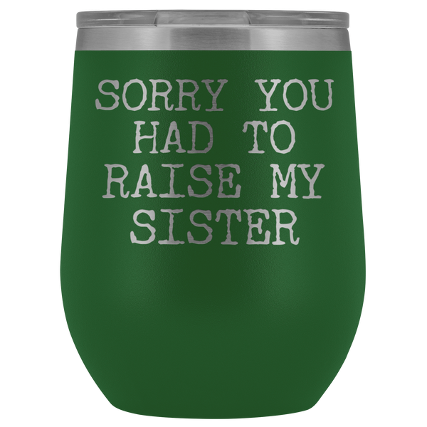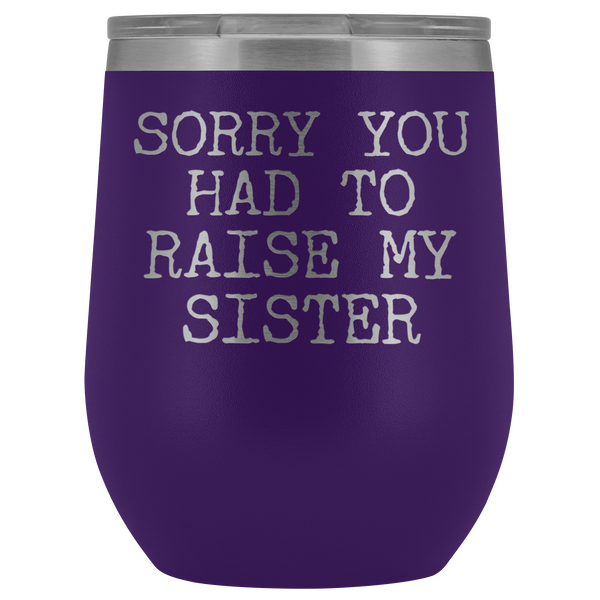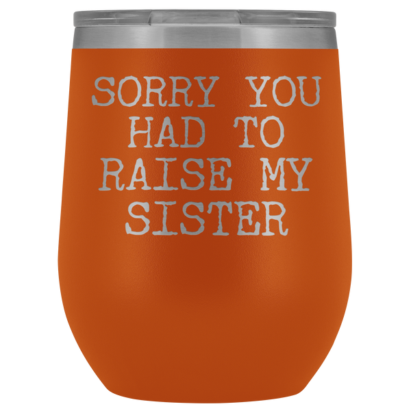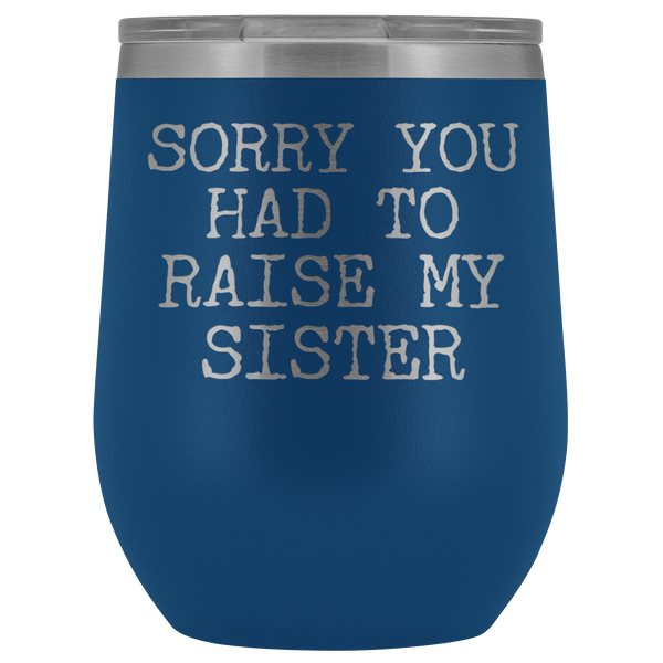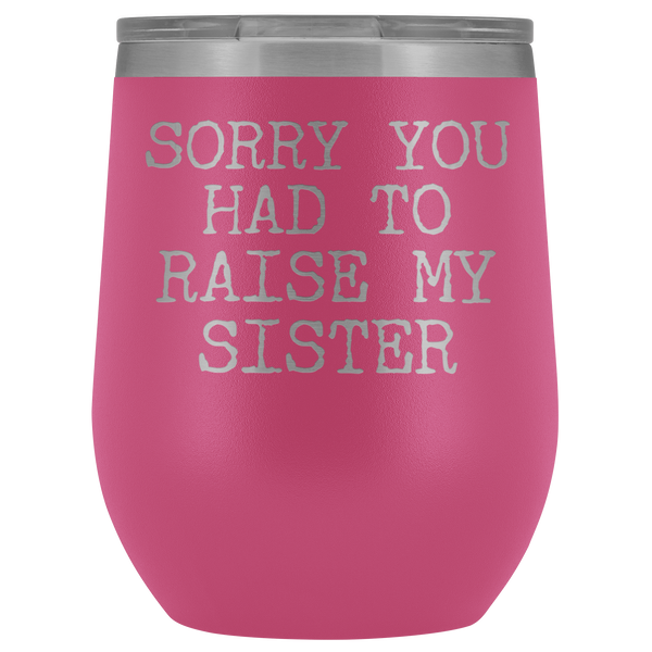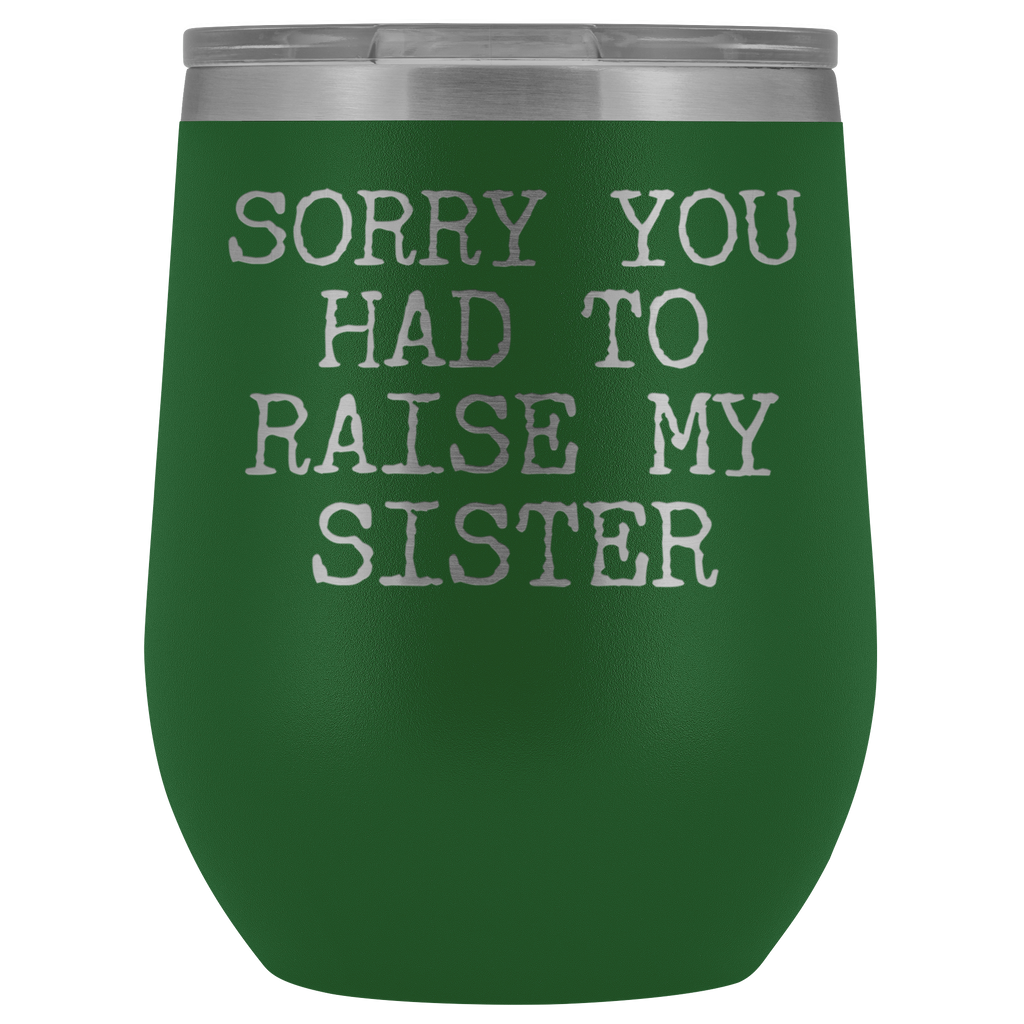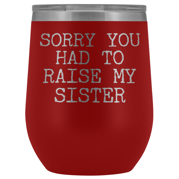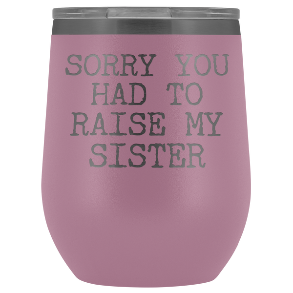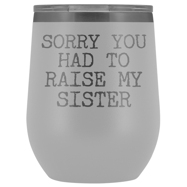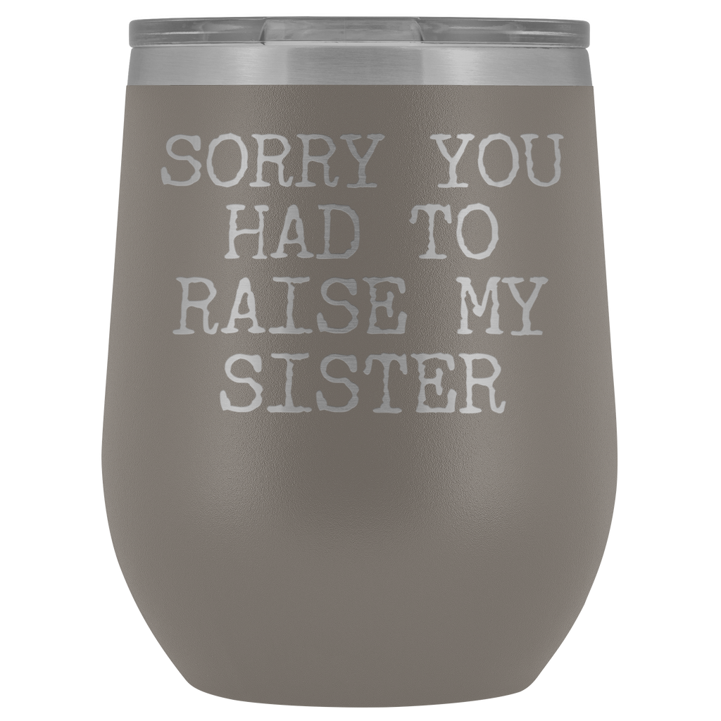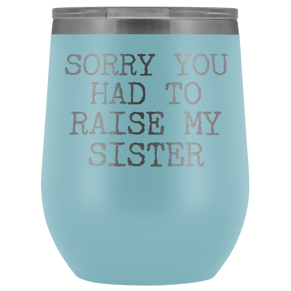 Funny Mother's Day Gift Sorry You Had to Raise My Sister Stemless Stainless Steel Insulated Wine Tumbler Cup BPA Free 12oz