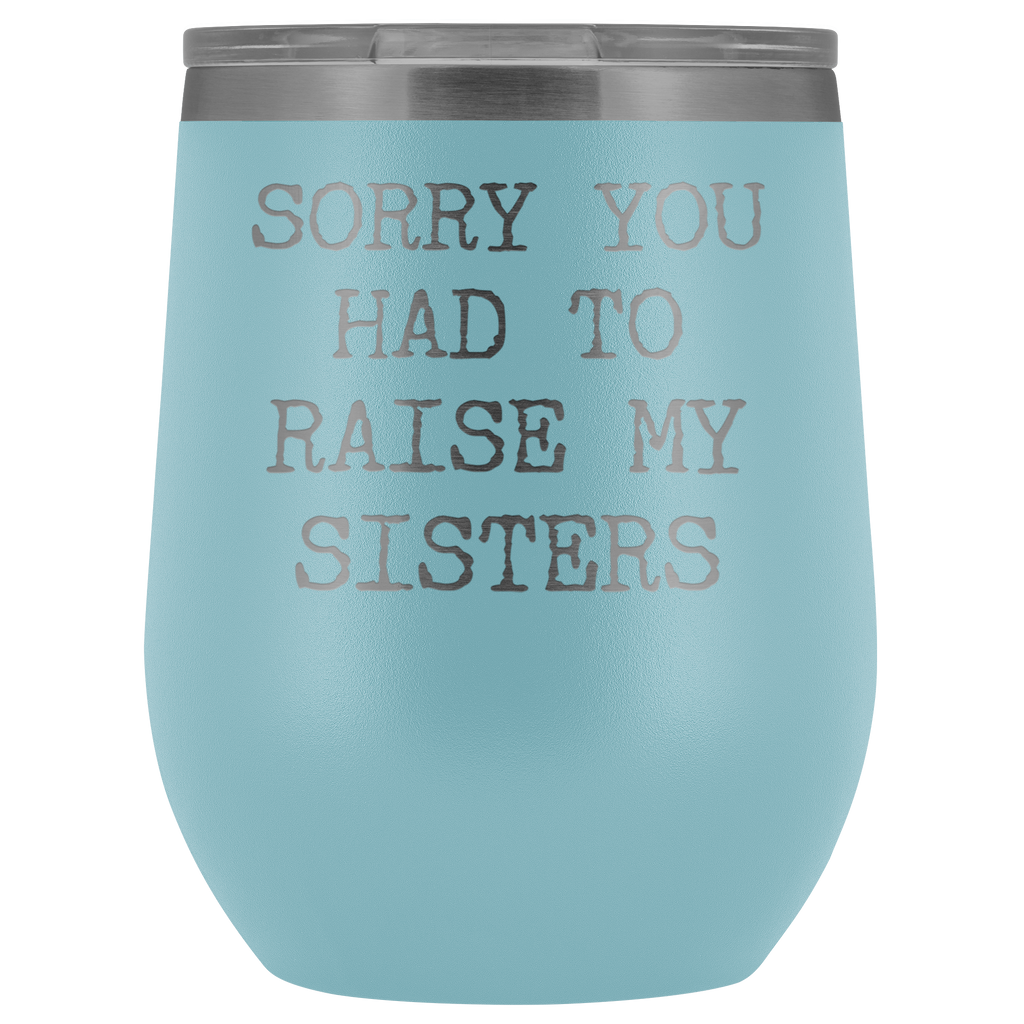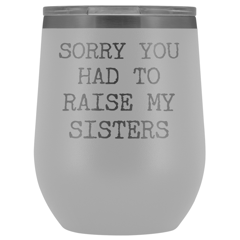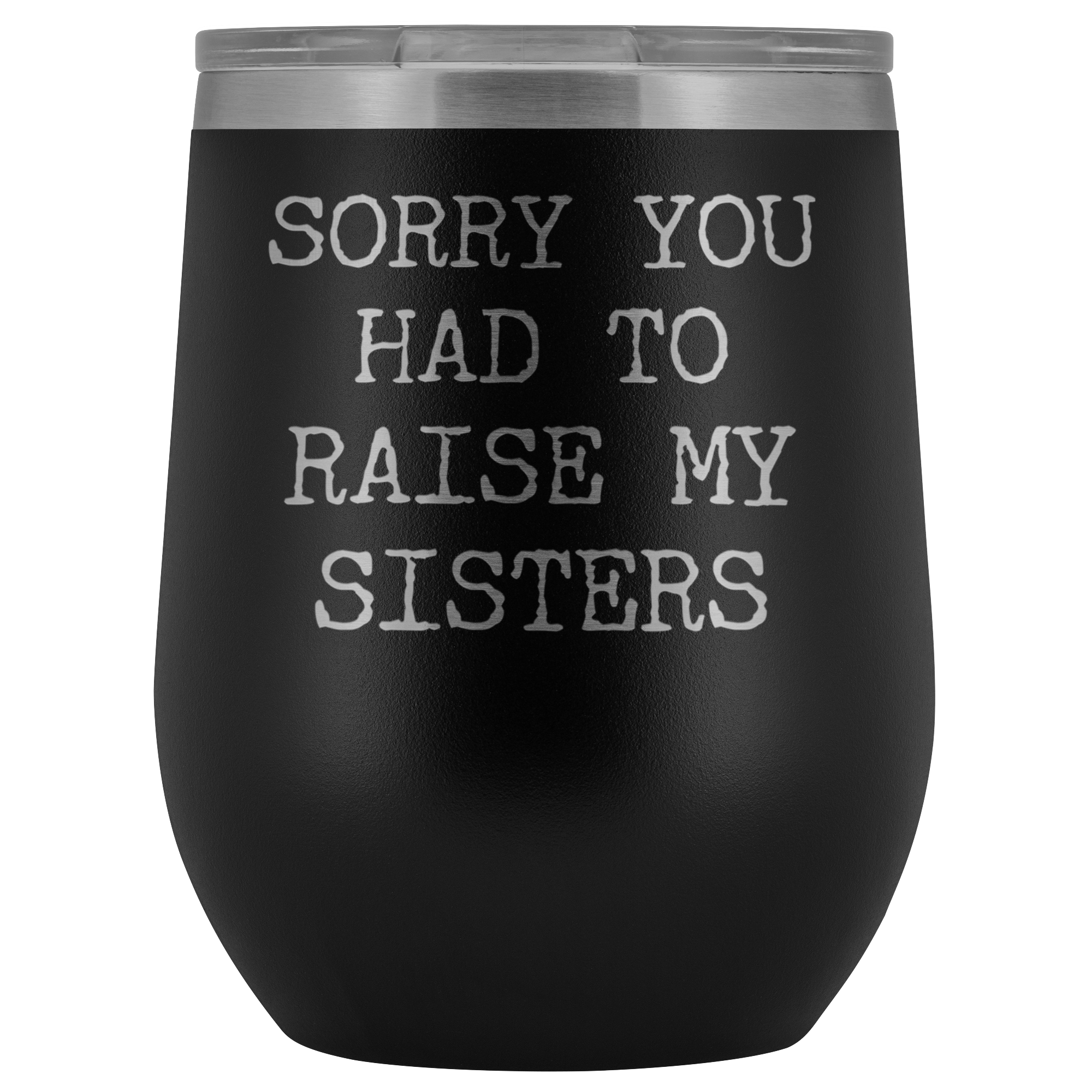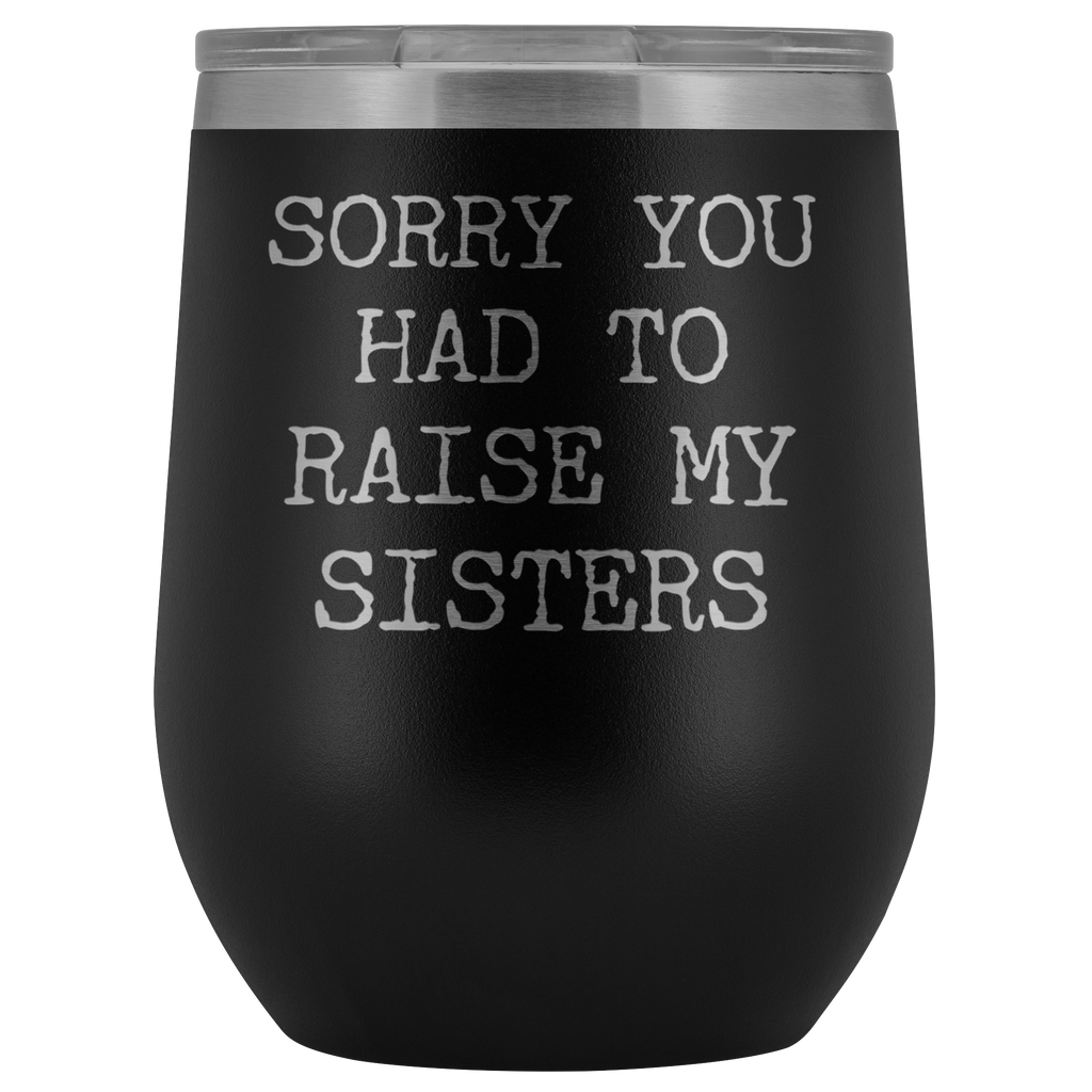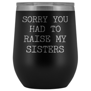 Funny Mother's Day Gift Sorry You Had to Raise My Sisters Stemless Stainless Steel Insulated Wine Tumbler Cup BPA Free 12oz