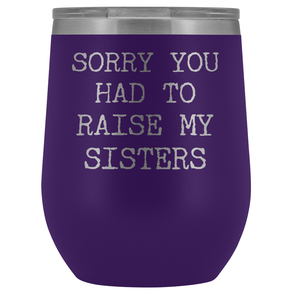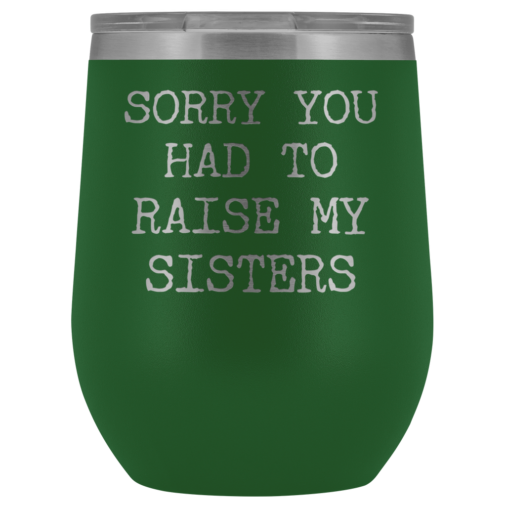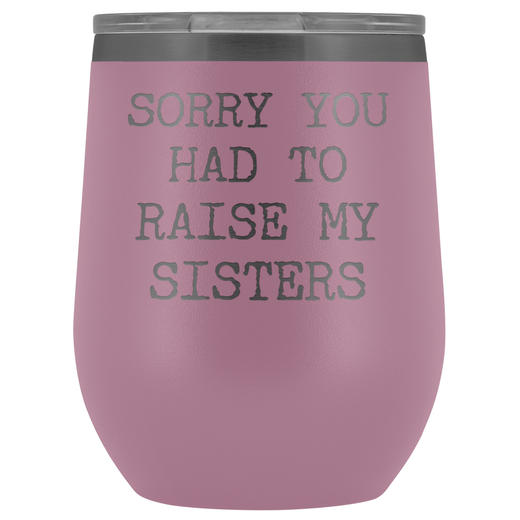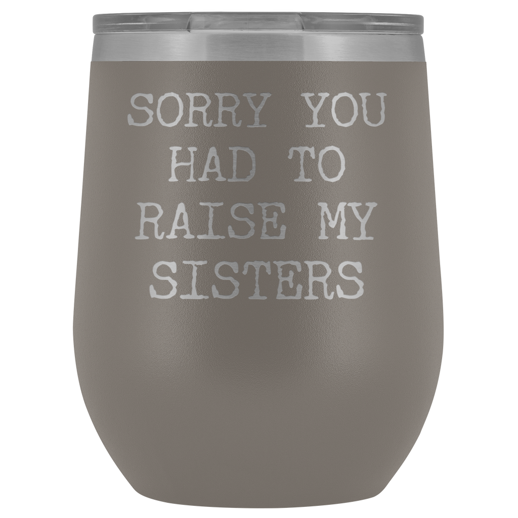 Funny Mother's Day Gift Sorry You Had to Raise My Sisters Stemless Stainless Steel Insulated Wine Tumbler Cup BPA Free 12oz