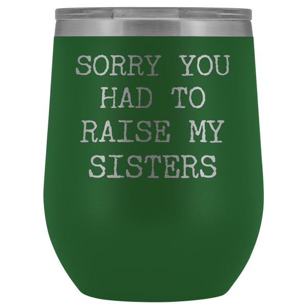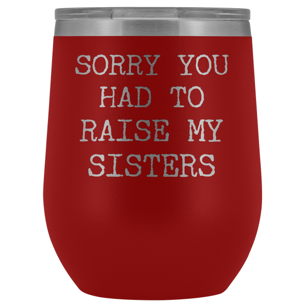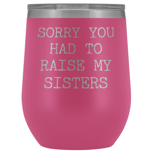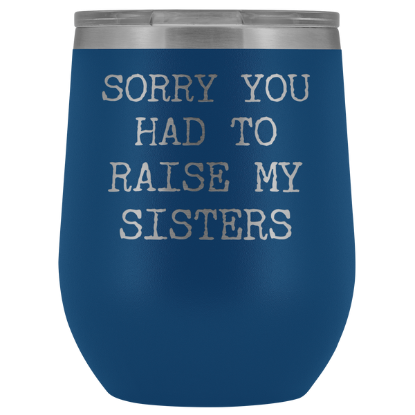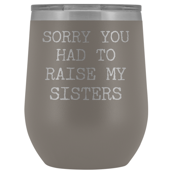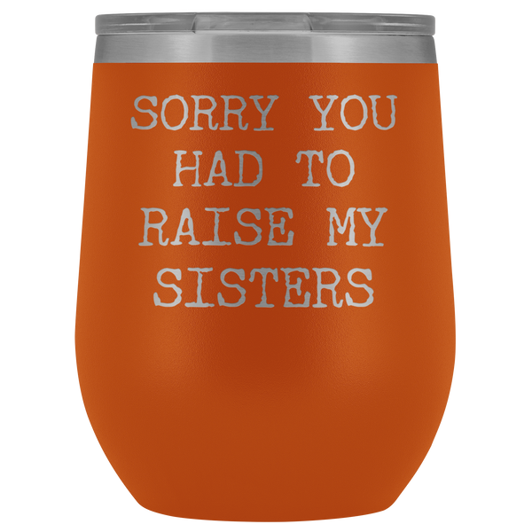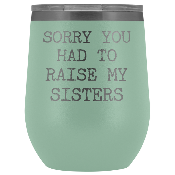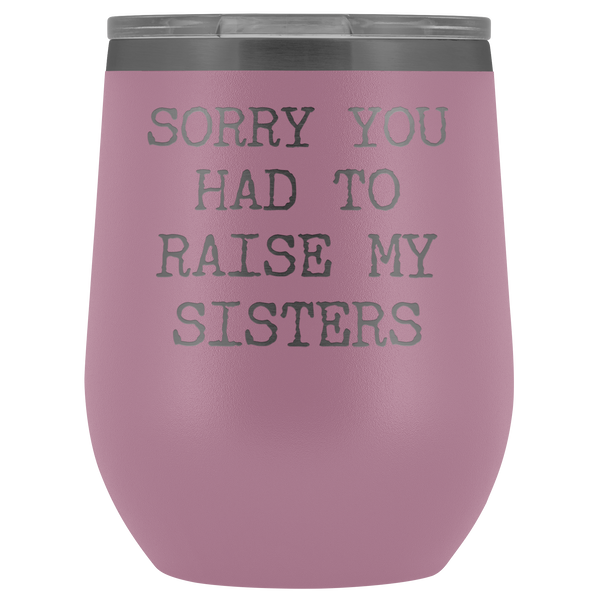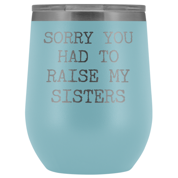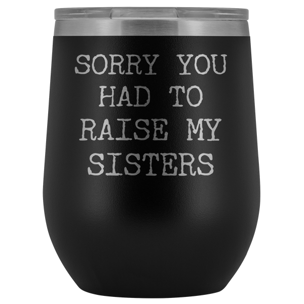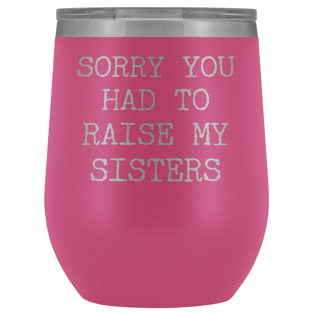 Funny Mother's Day Gift Sorry You Had to Raise My Sisters Stemless Stainless Steel Insulated Wine Tumbler Cup BPA Free 12oz