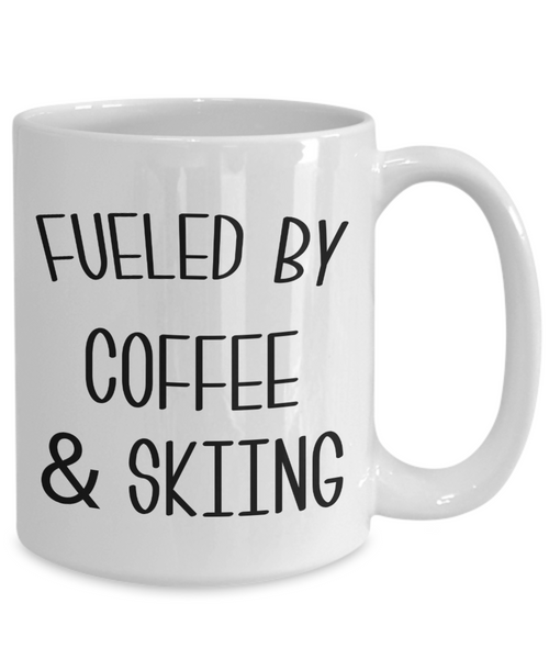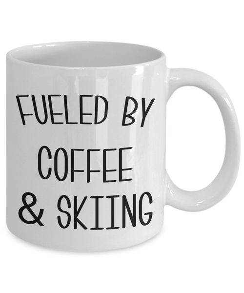 Funny Skier Gift Fueled By Coffee and Skiing Mug Winter Coffee Cup