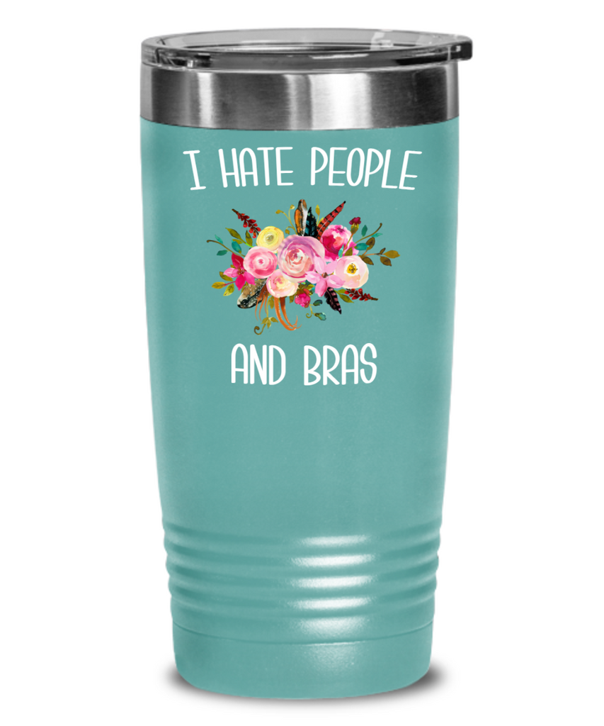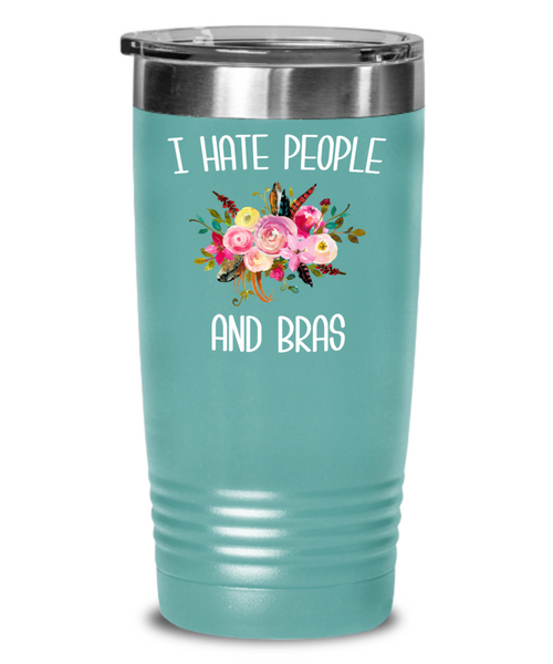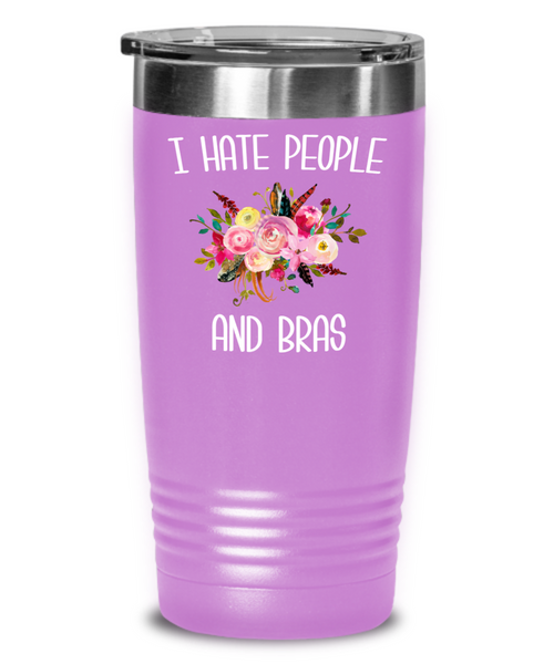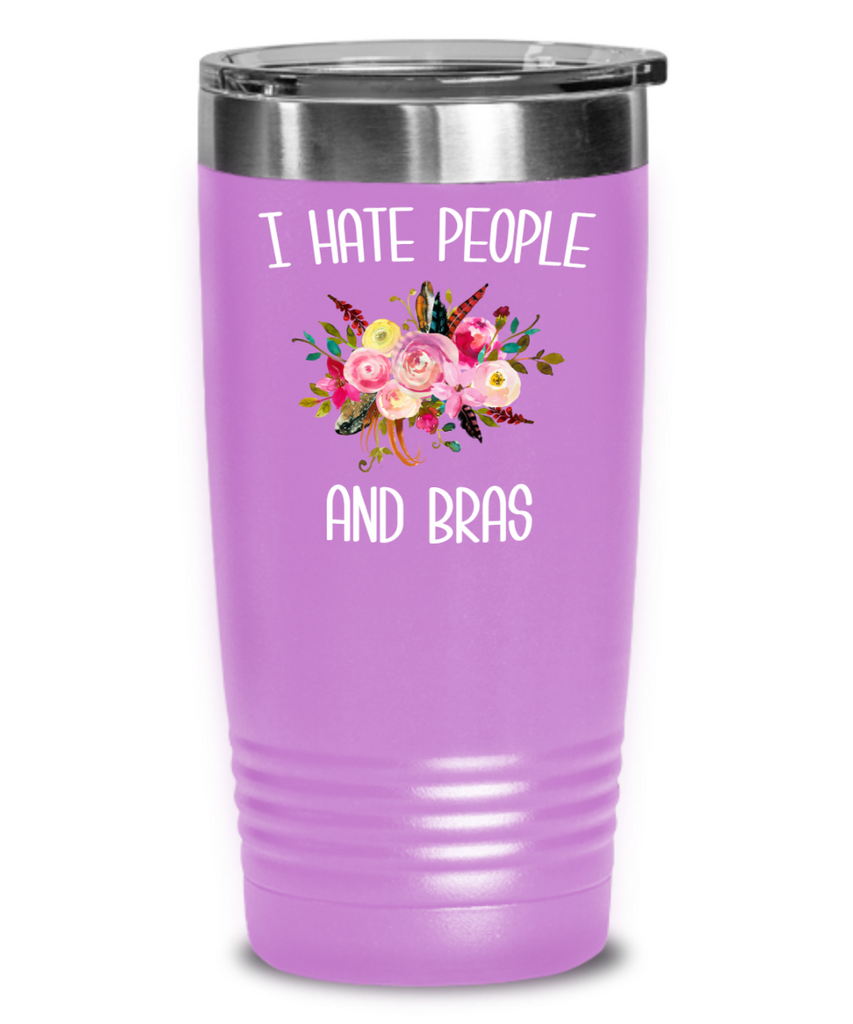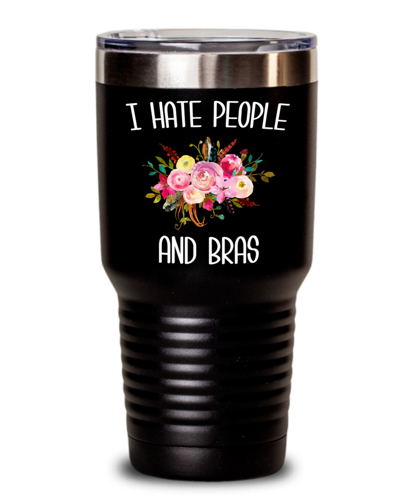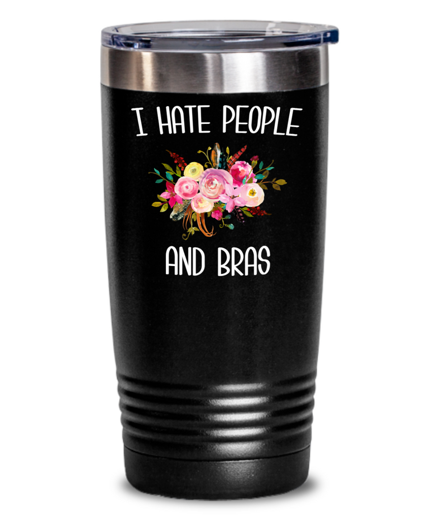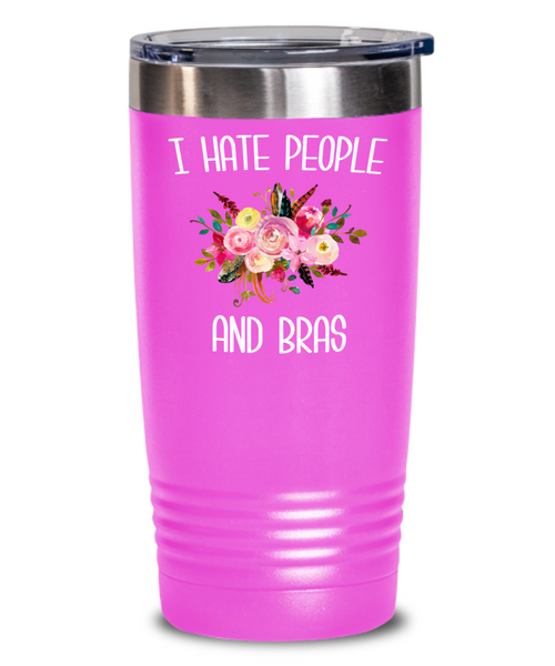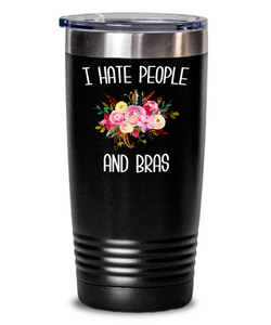 Funny Tumbler for Women I Hate People and Bras People Suck Gift for Her Insulated Hot Cold Travel Coffee Cup BPA Free