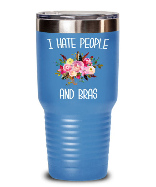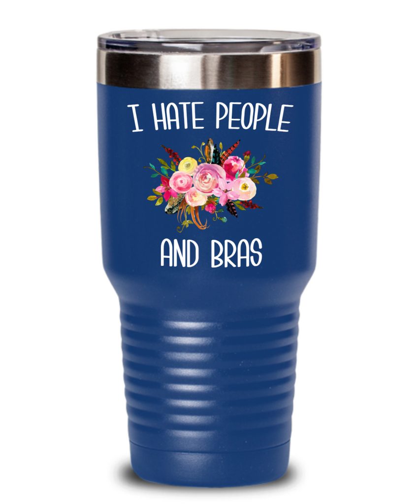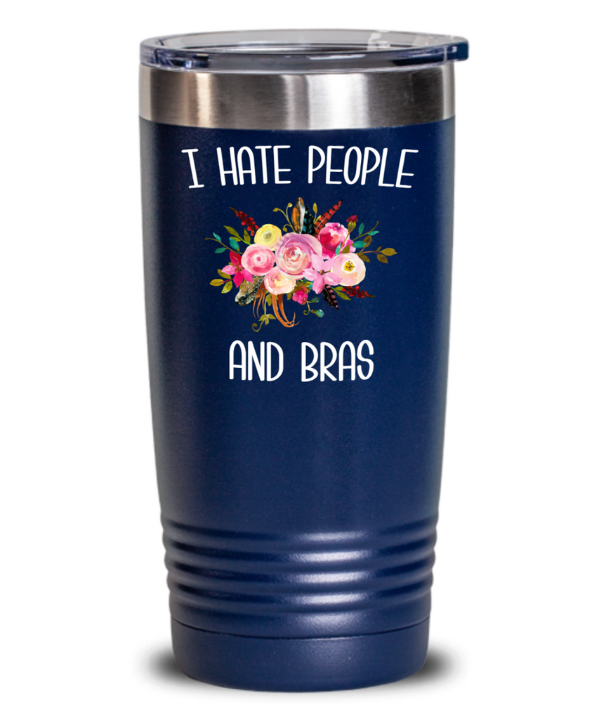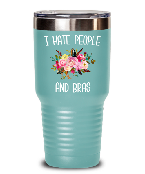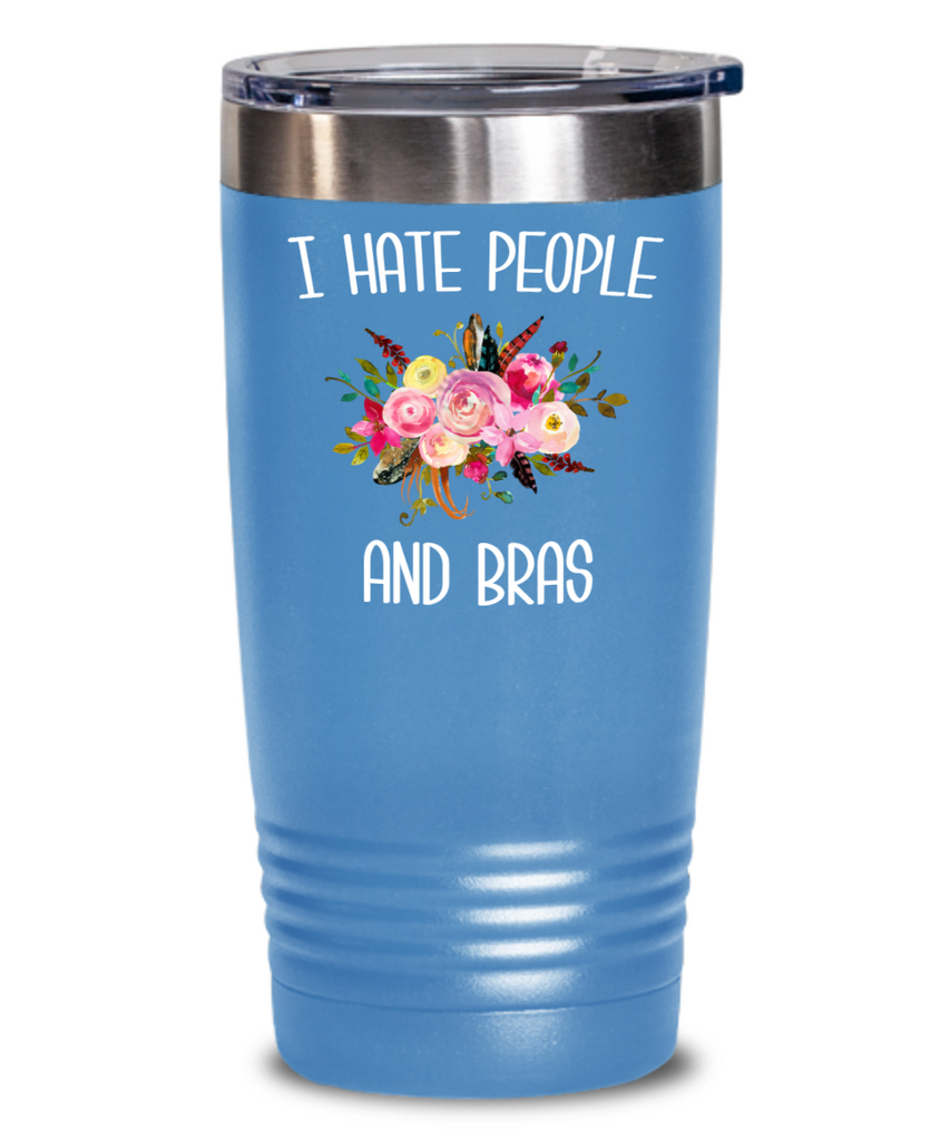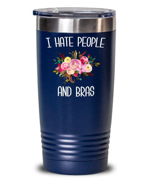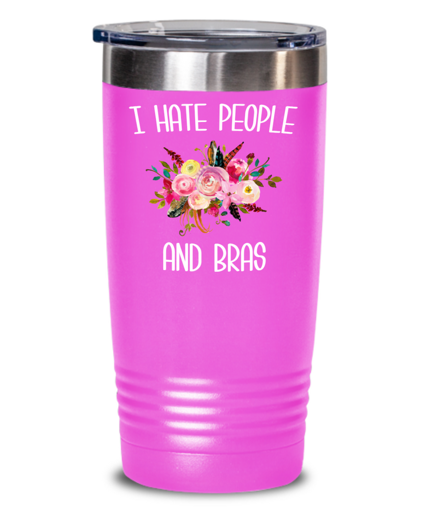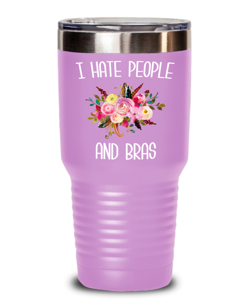 Funny Tumbler for Women I Hate People and Bras People Suck Gift for Her Insulated Hot Cold Travel Coffee Cup BPA Free