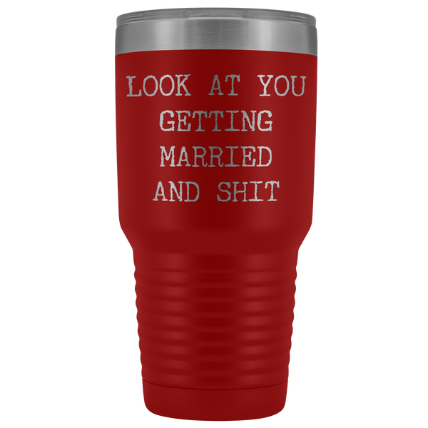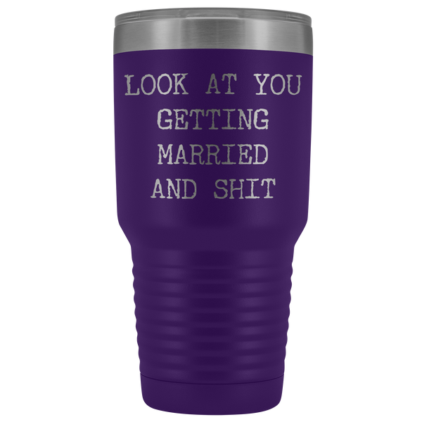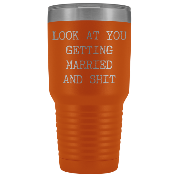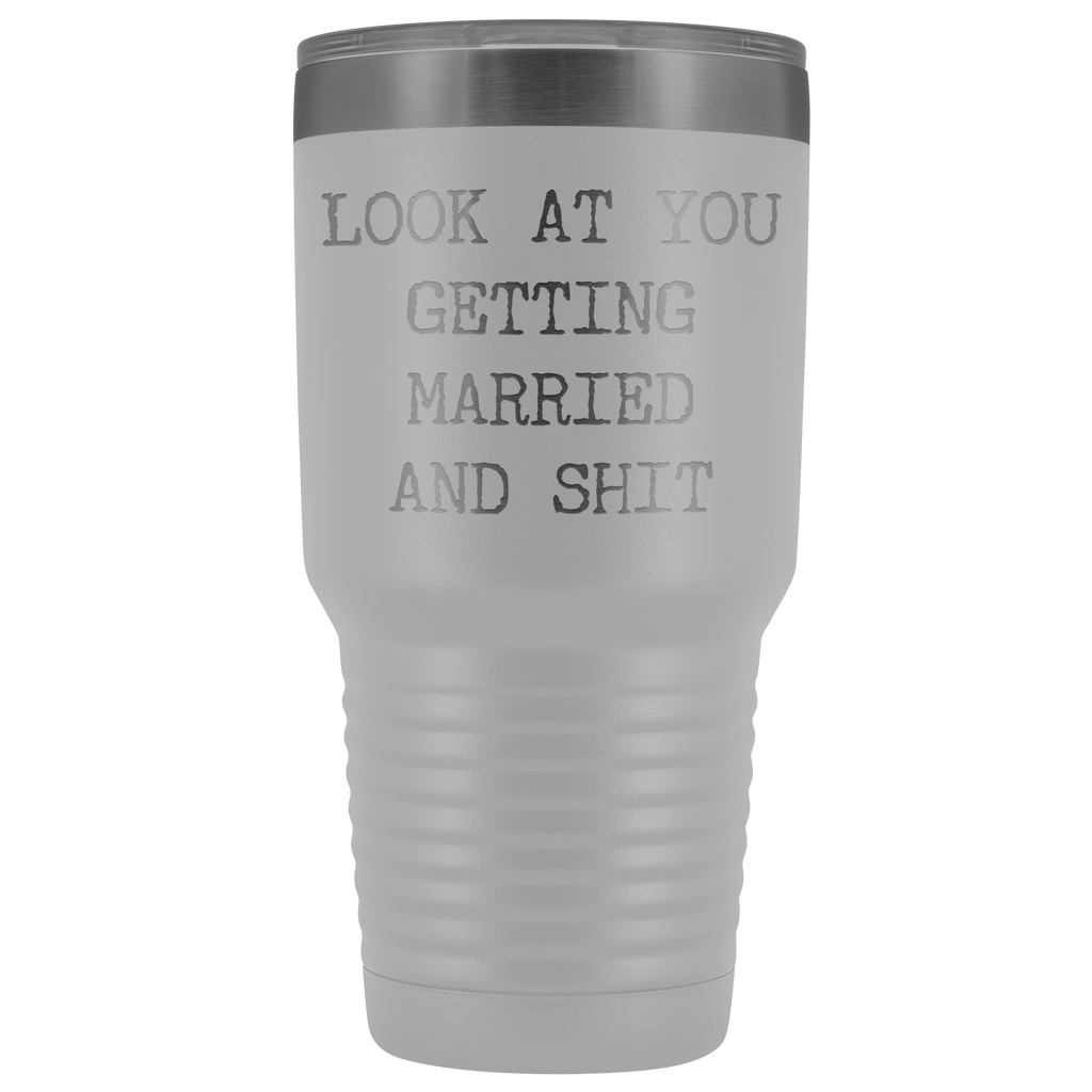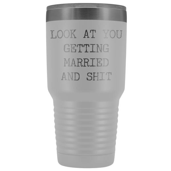 Funny Wedding Gifts Look at You Getting Married Tumbler Metal Mug Insulated Hot Cold Travel Coffee Cup 30oz BPA Free
