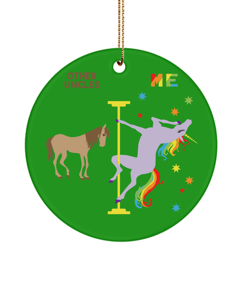 Gay Uncle Rainbow Unicorn Ceramic Christmas Tree Ornament