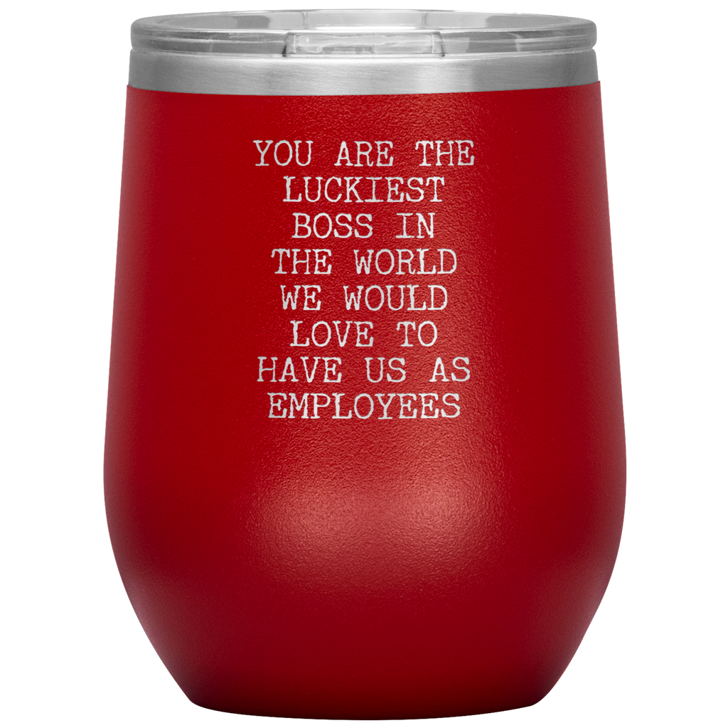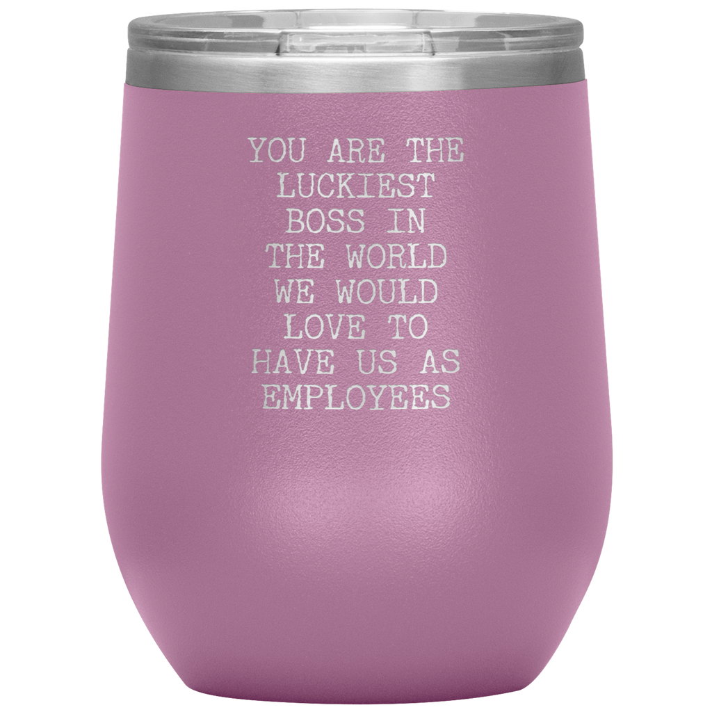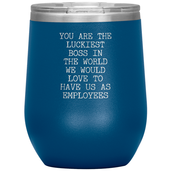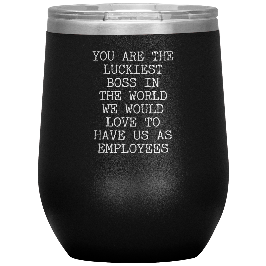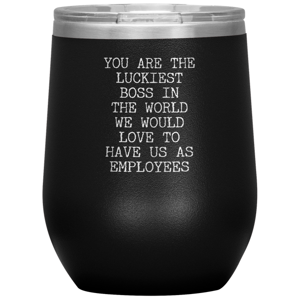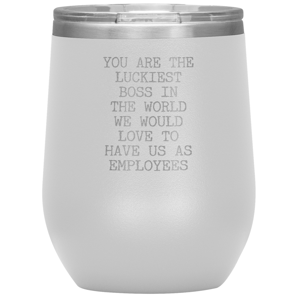 Gift for Boss Luckiest Boss in the World Stemless Stainless Steel Insulated Wine Tumbler BPA Free 12oz