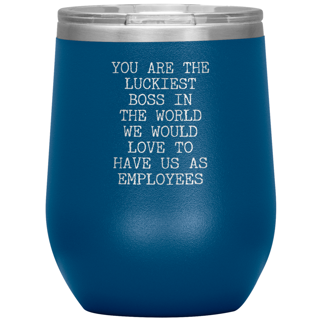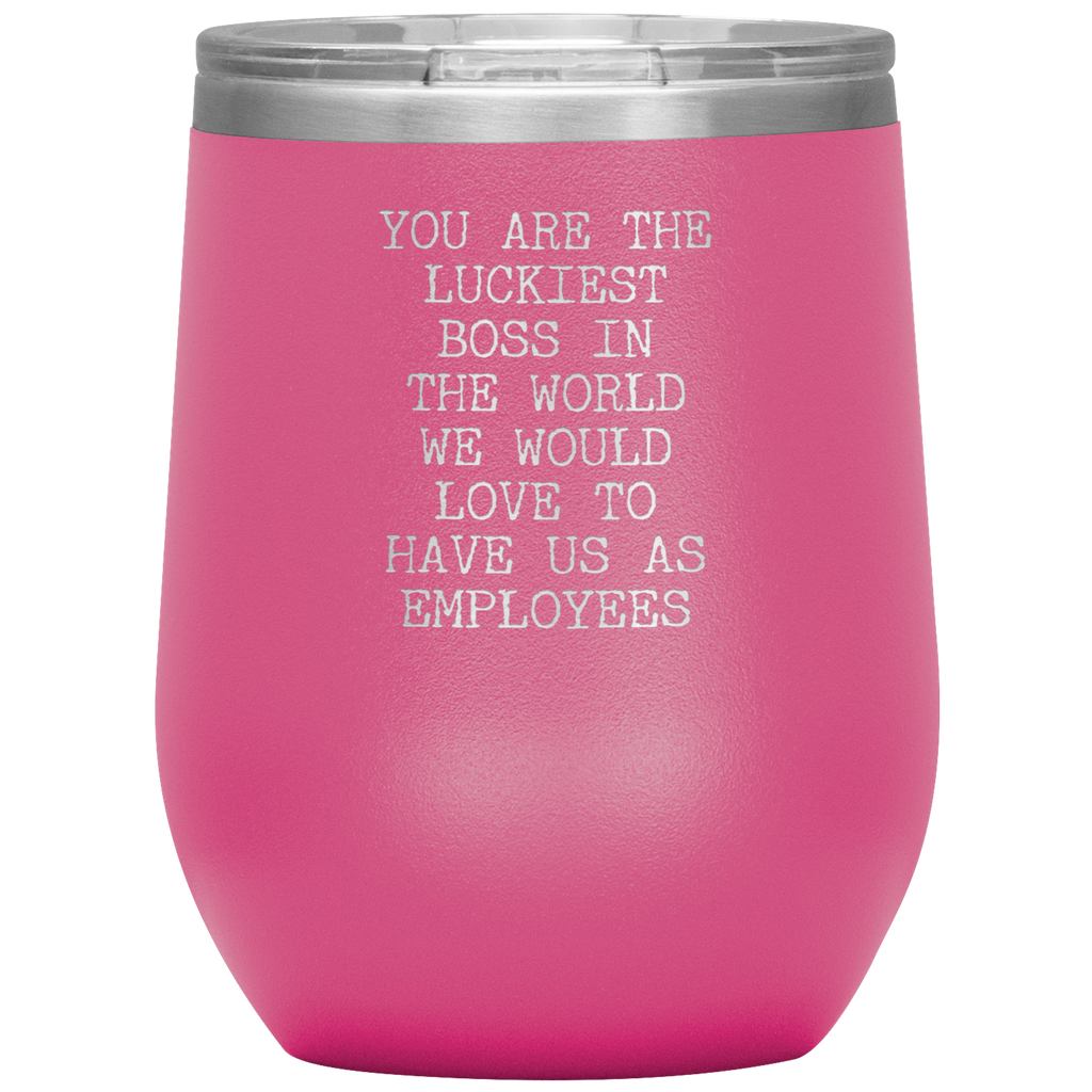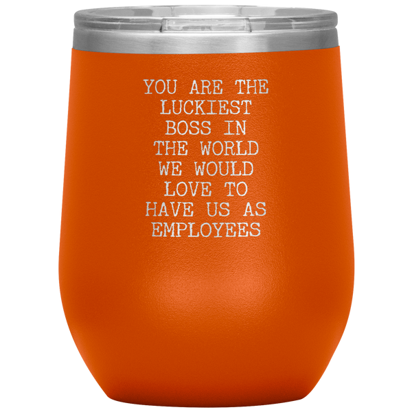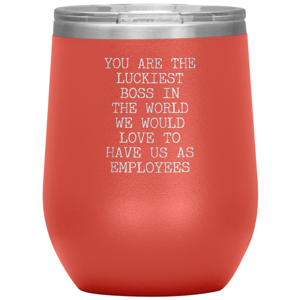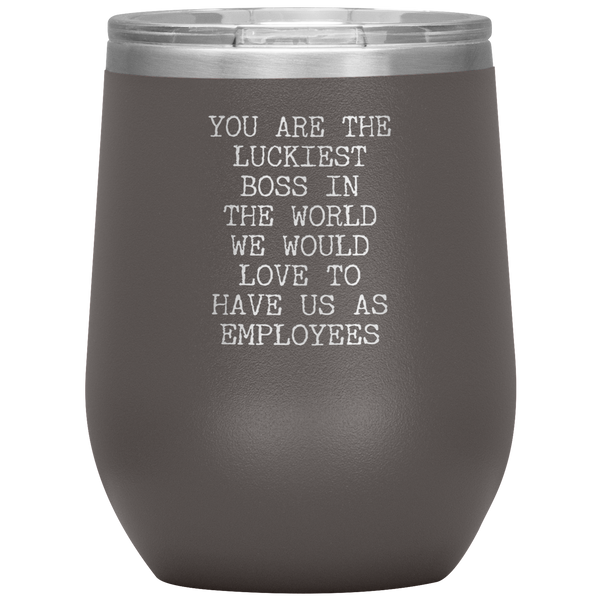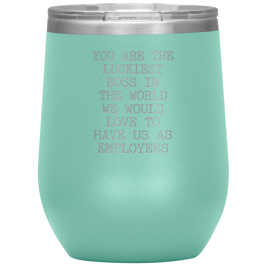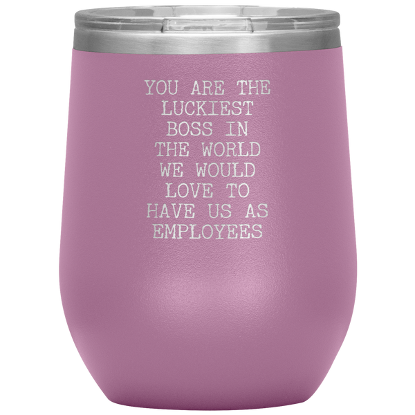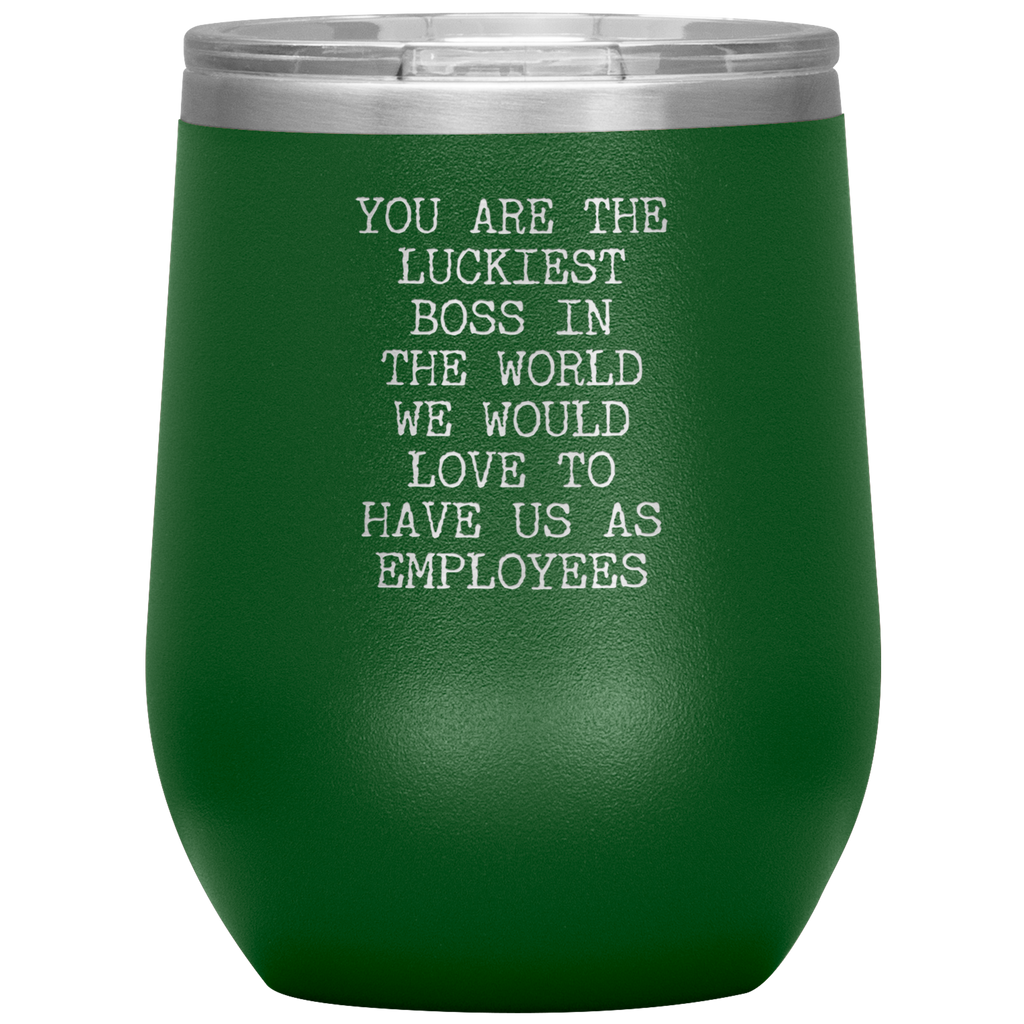 Gift for Boss Luckiest Boss in the World Stemless Stainless Steel Insulated Wine Tumbler BPA Free 12oz