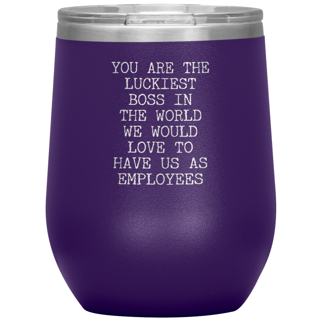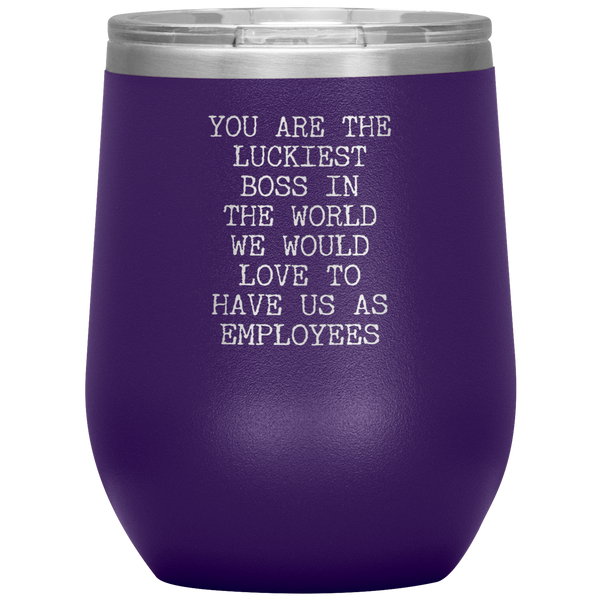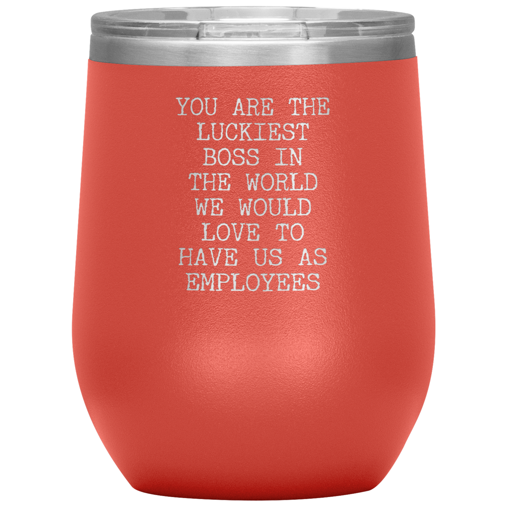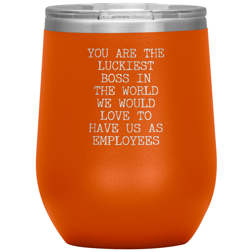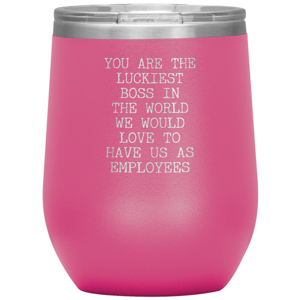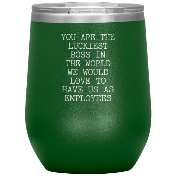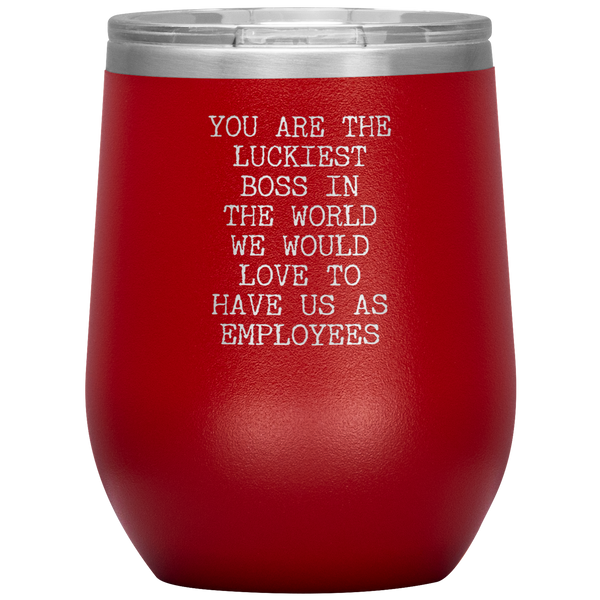 Gift for Boss Luckiest Boss in the World Stemless Stainless Steel Insulated Wine Tumbler BPA Free 12oz