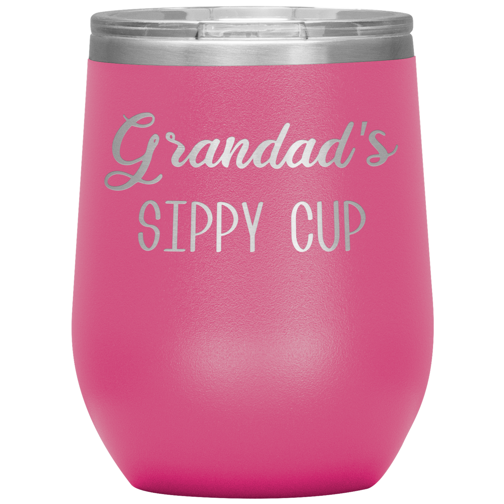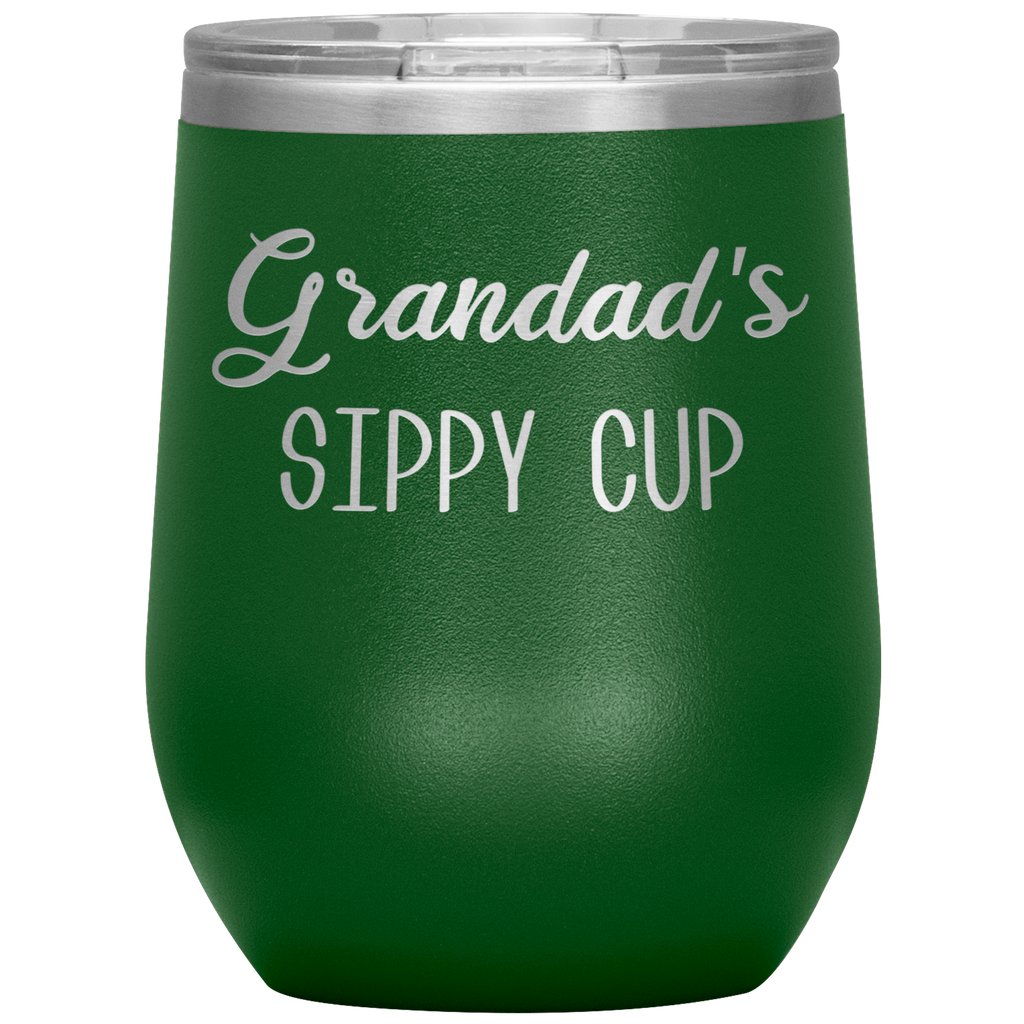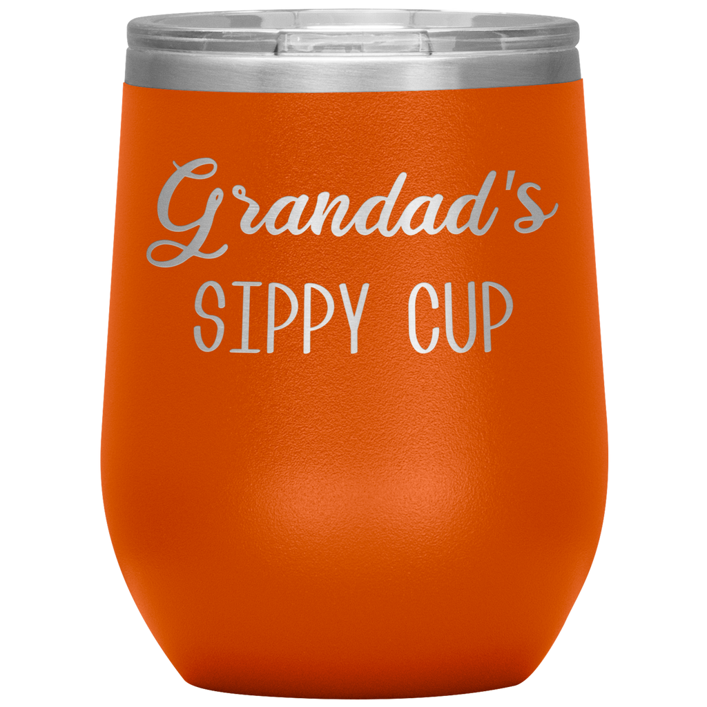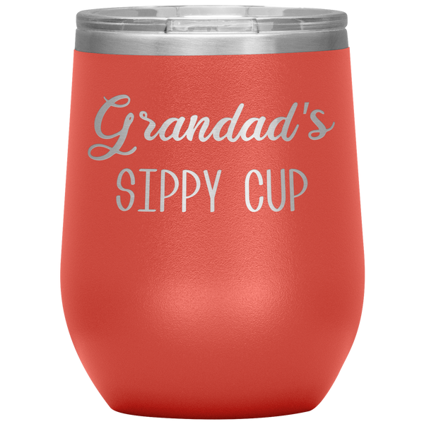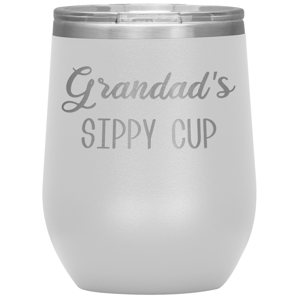 Grandad's Sippy Cup Gift for Grandad Funny Stemless Stainless Steel Insulated Wine Tumbler BPA Free 12oz