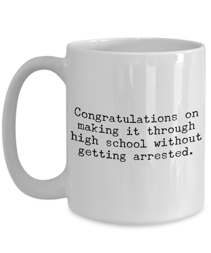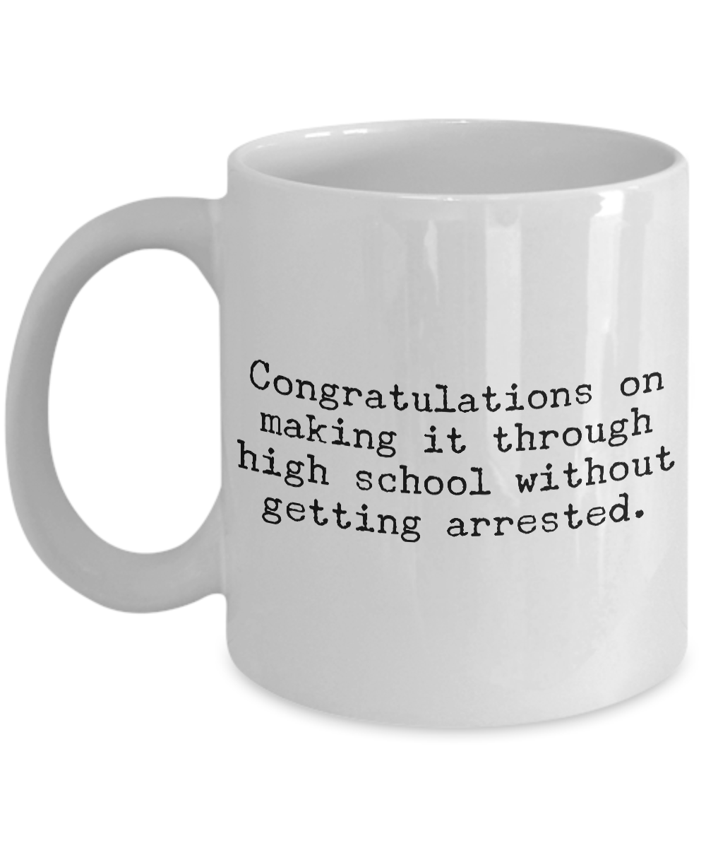 High School Graduation Gifts Graduation Coffee Mug Funny Graduation Gifts Congratulations on Making It Through High School Without Getting Arrested