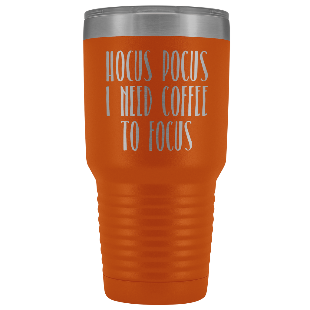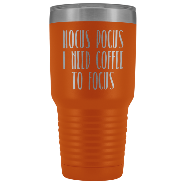 Hocus Pocus I Need Coffee to Focus Tumbler Funny Fall Halloween Gifts Metal Mug Insulated Hot Cold Travel Coffee Cup 30oz BPA Free