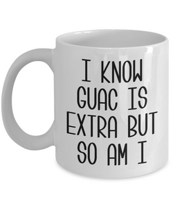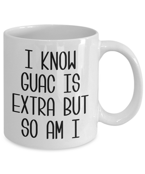 I Know Guac Is Extra AF Mug Funny Coffee Cup Guacamole Avocado Gifts