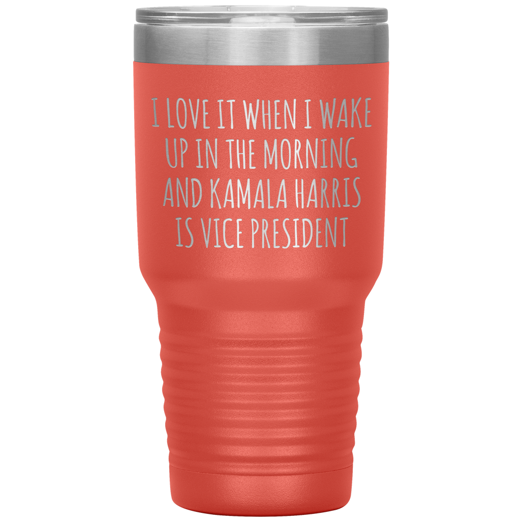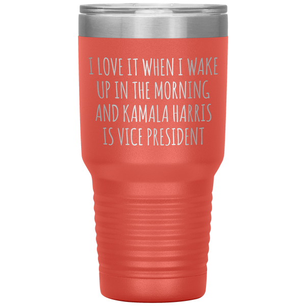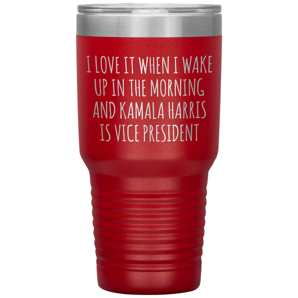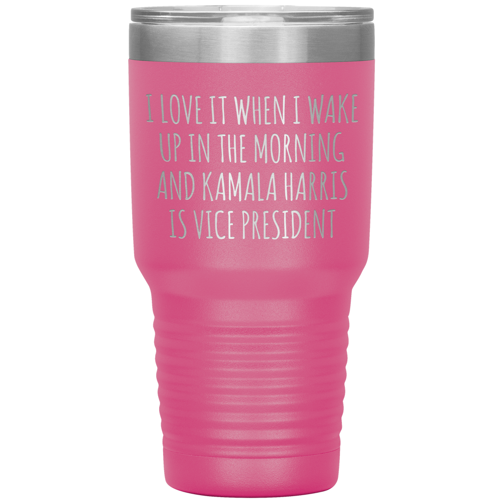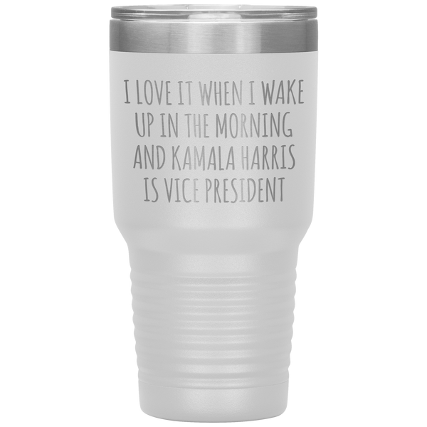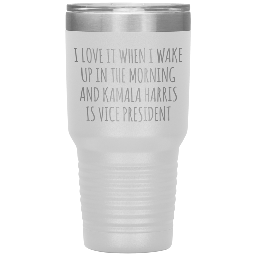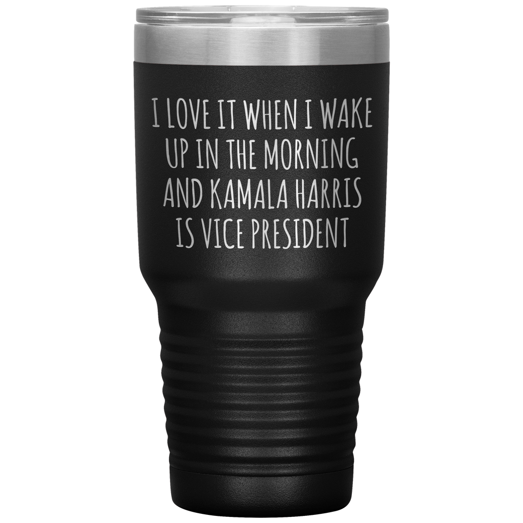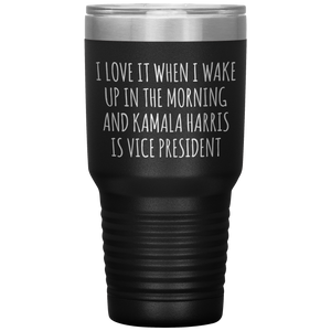 I Love it When I Wake Up in the Morning and Kamala Harris is Vice President Tumbler Insulated Travel Democrat Gifts Coffee Cup 30oz BPA Free