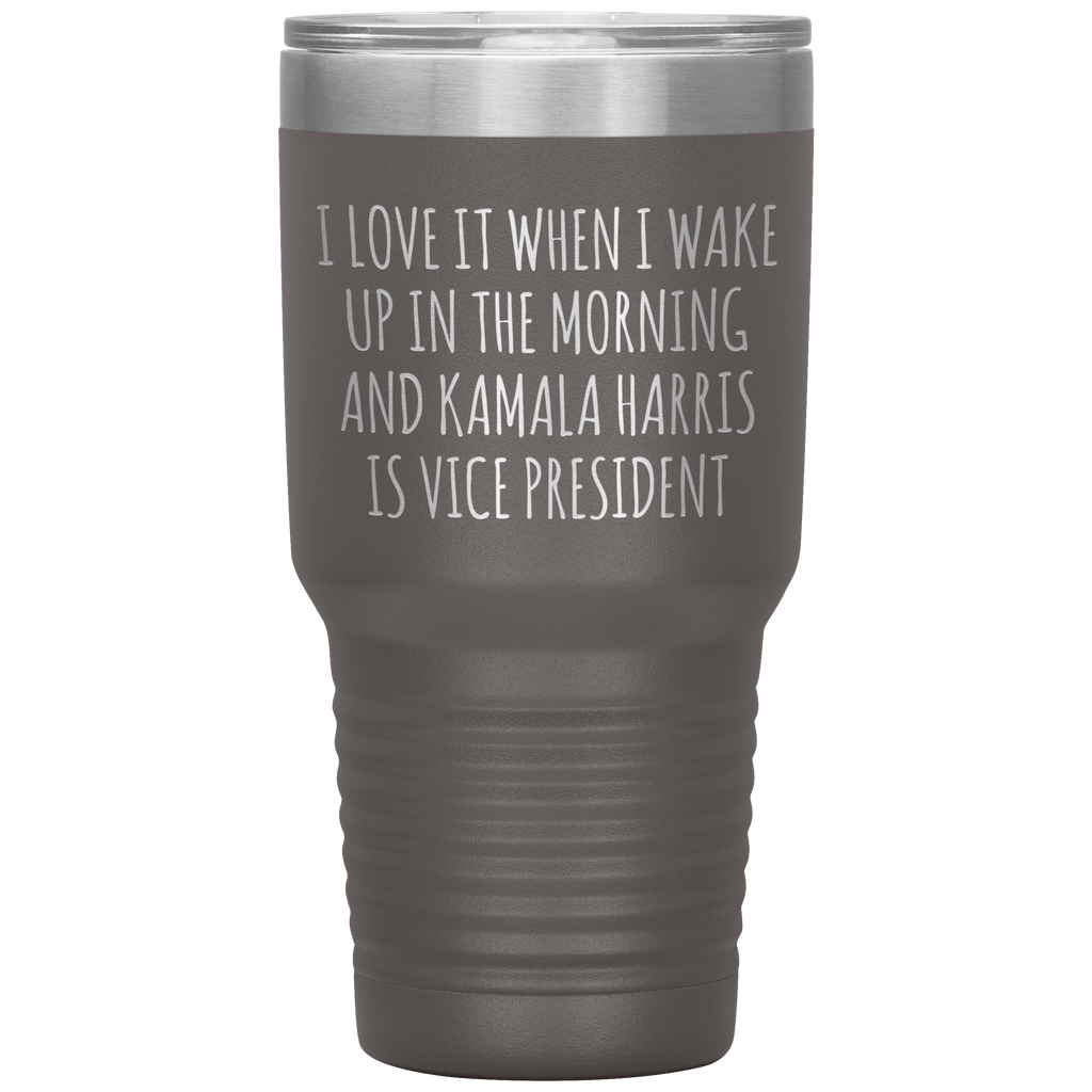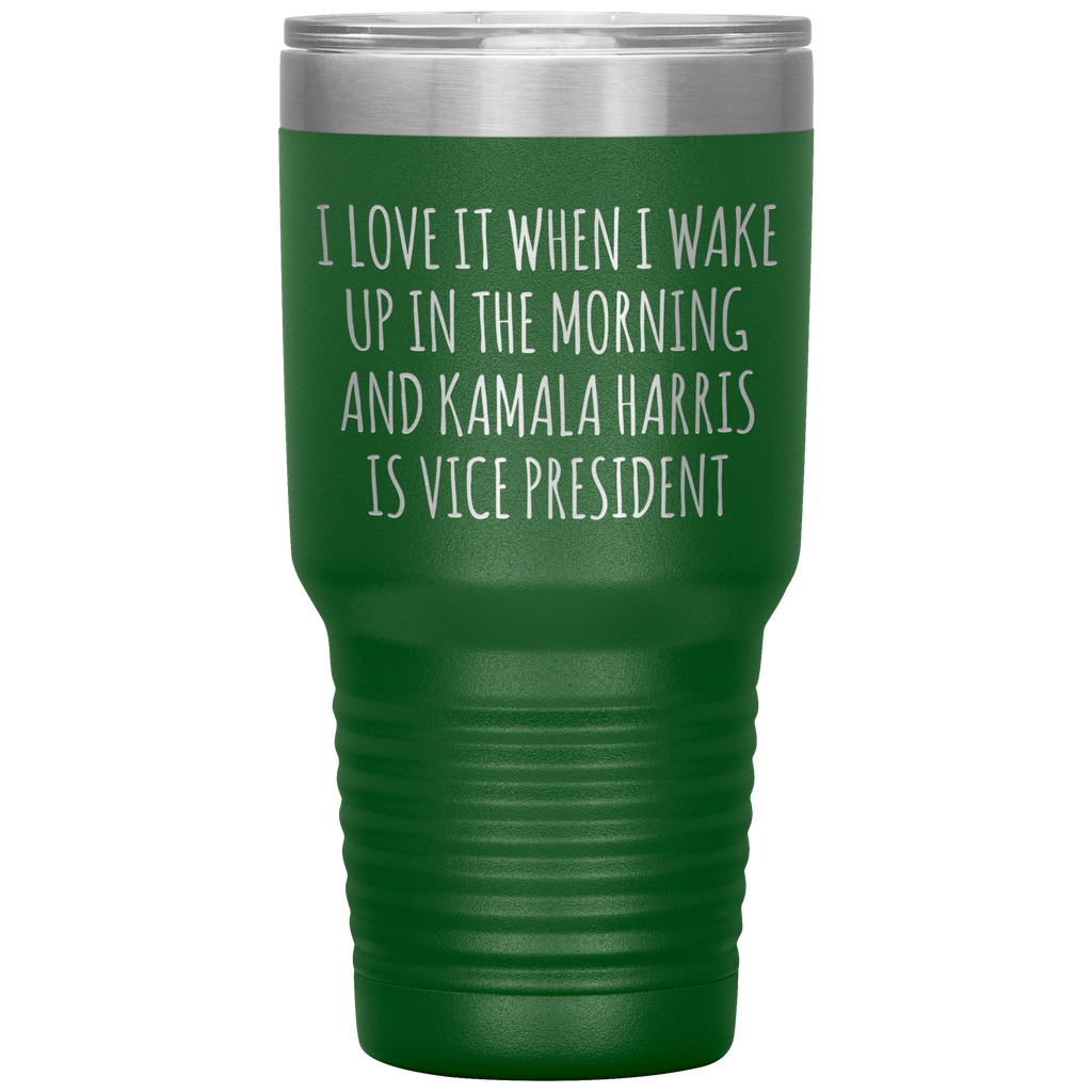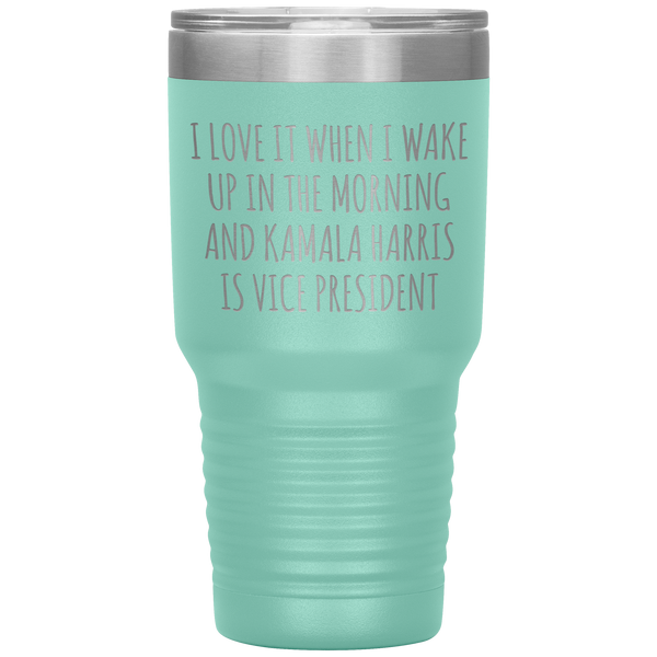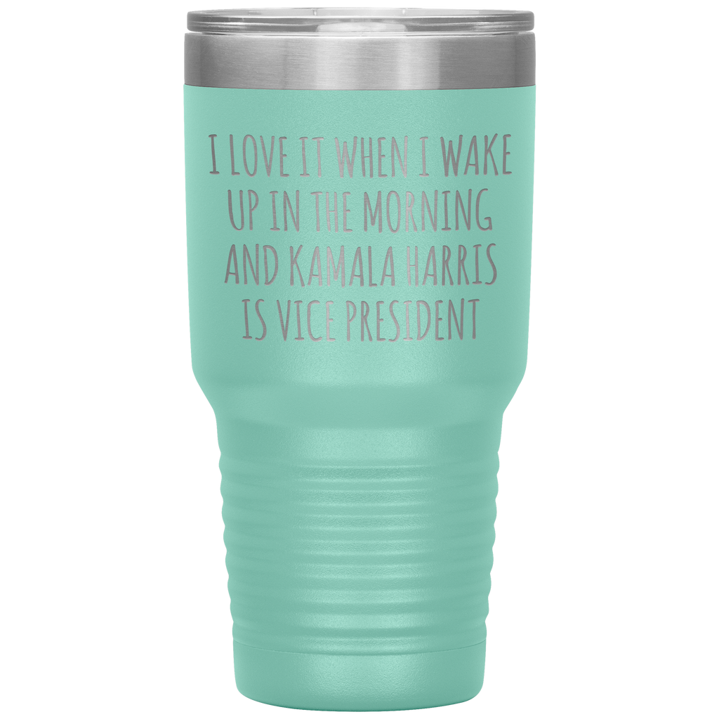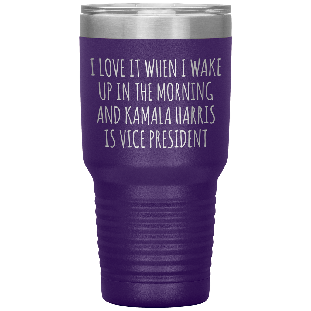 I Love it When I Wake Up in the Morning and Kamala Harris is Vice President Tumbler Insulated Travel Democrat Gifts Coffee Cup 30oz BPA Free