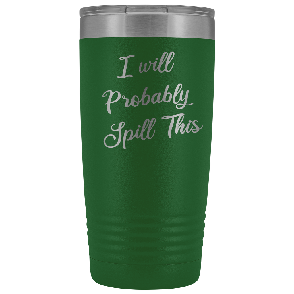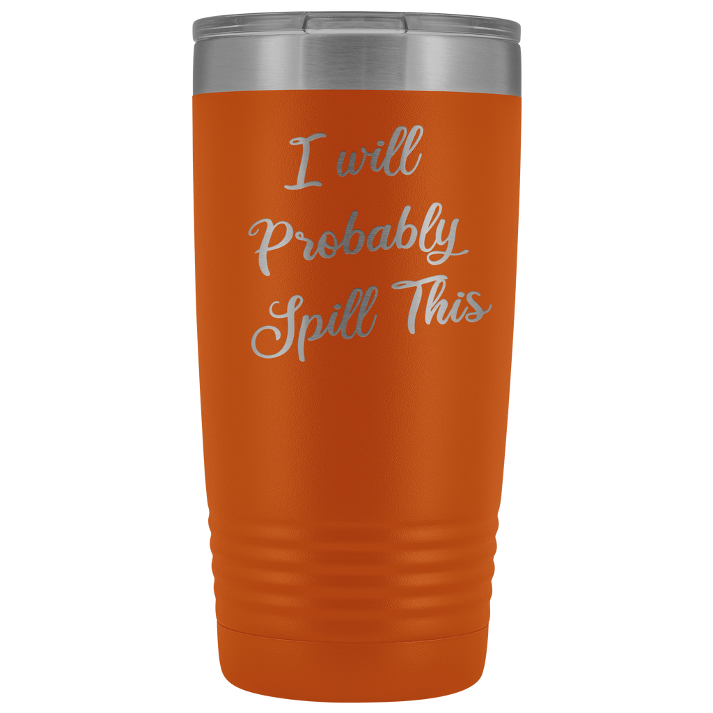I Will Probably Spill This Tumbler Funny Mug Metal Insulated Hot Cold Travel Coffee Cup 20oz BPA Free