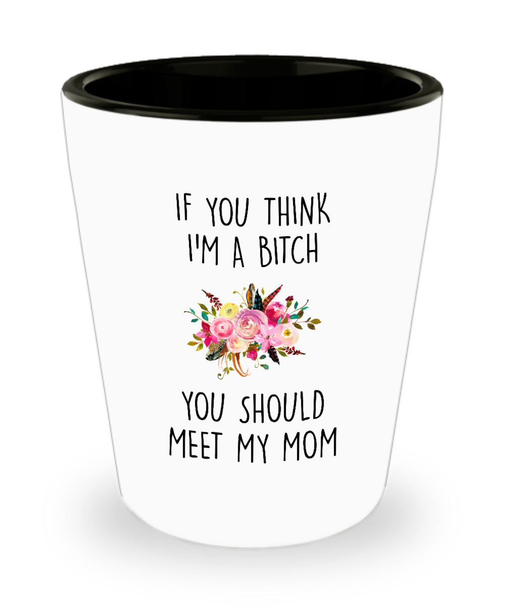 If You Think I'm A Bitch You Should Meet My Mom Ceramic Shot Glass Funny Gift