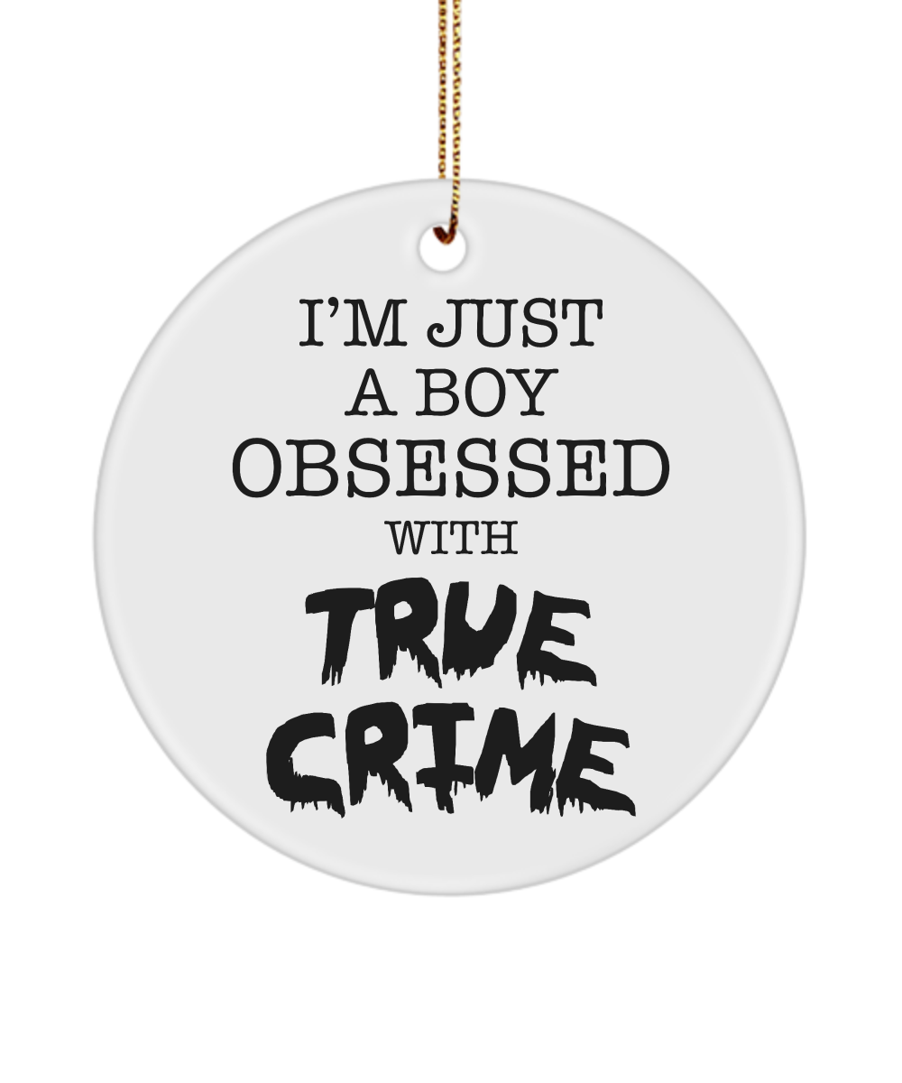 I'm Just a Boy Obsessed with True Crime Mug Funny Serial Killer Christmas Tree Ornament for Him