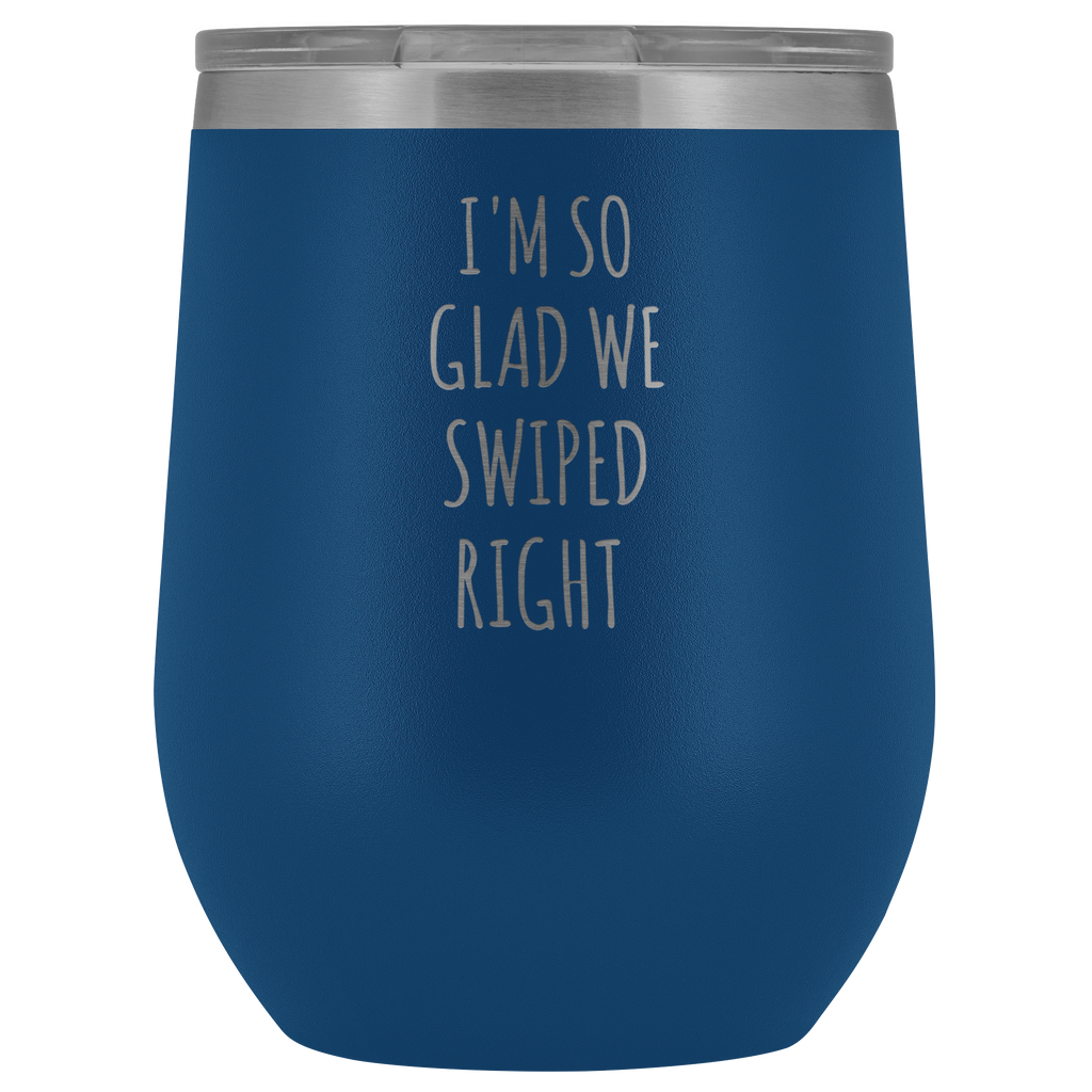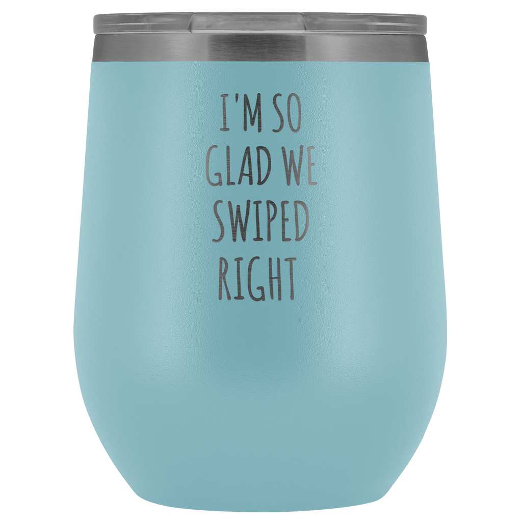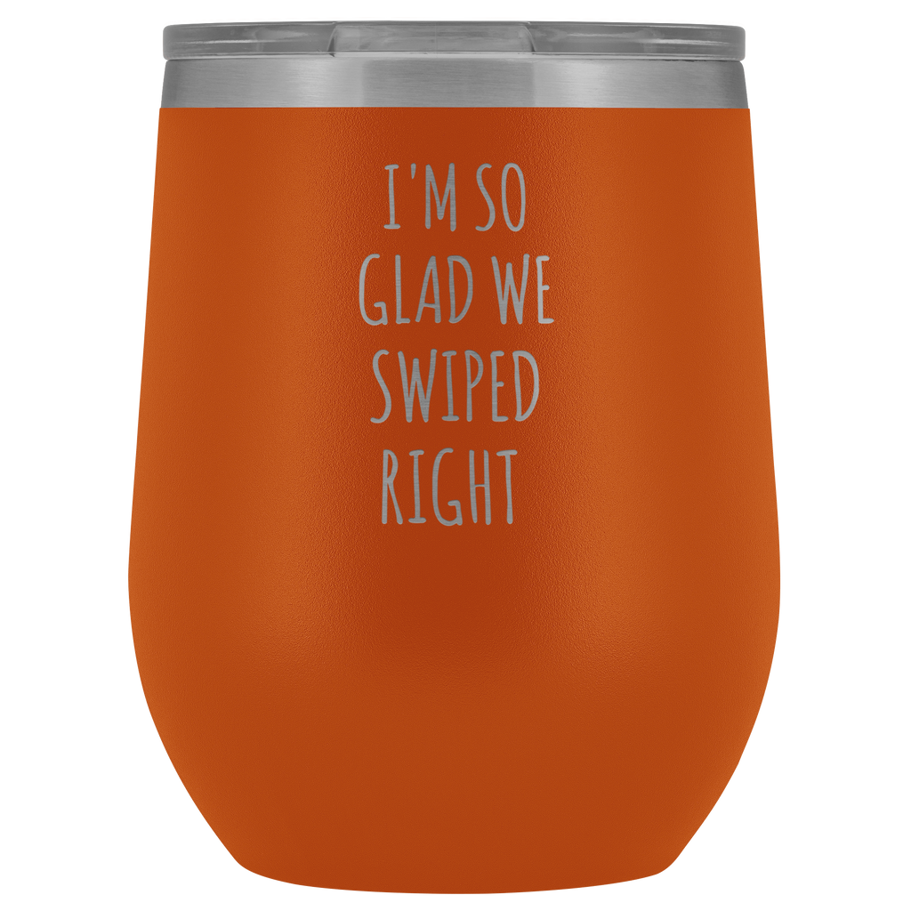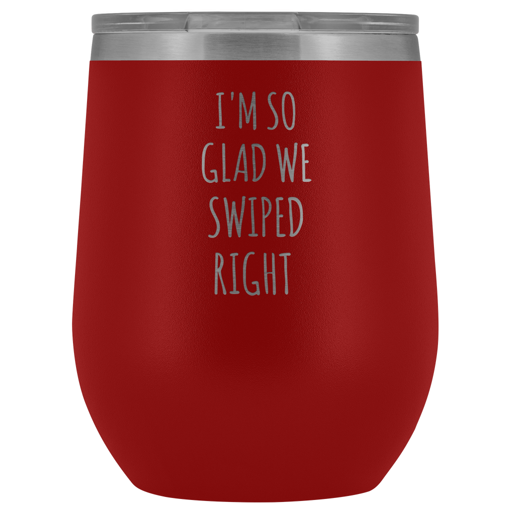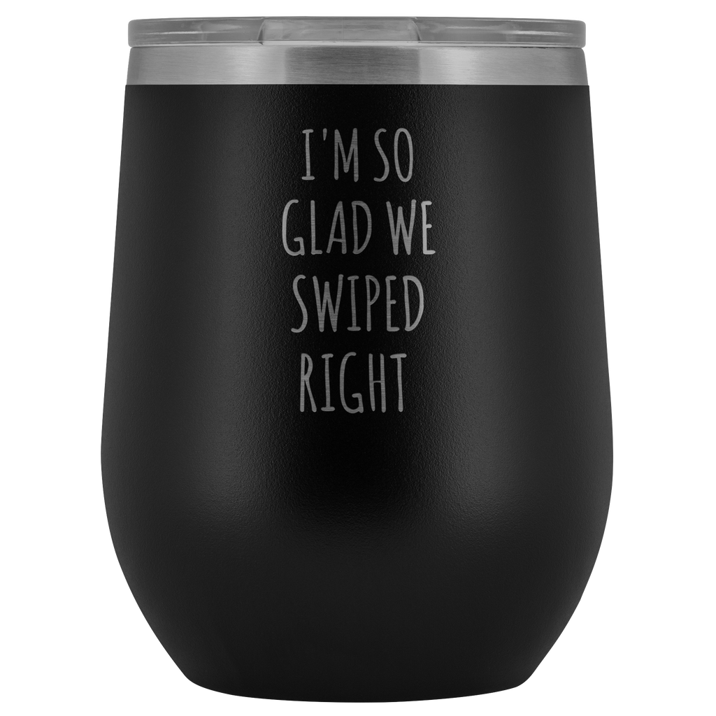 I'm So Glad We Swiped Right Tumbler Online Dating New Relationship Gift Stemless Stainless Steel Insulated Wine Tumbler Cup BPA Free 12oz