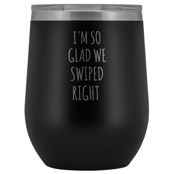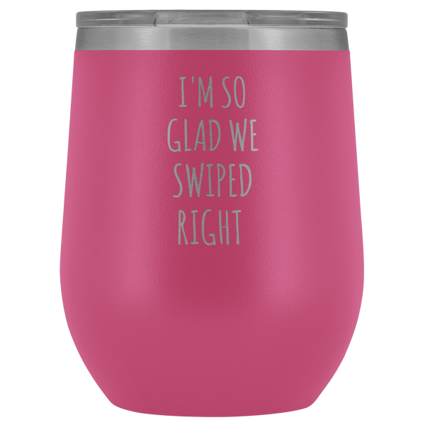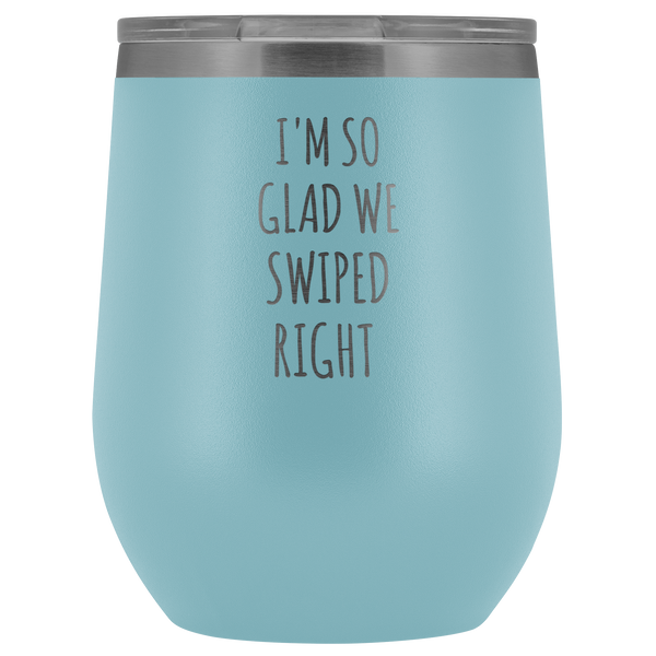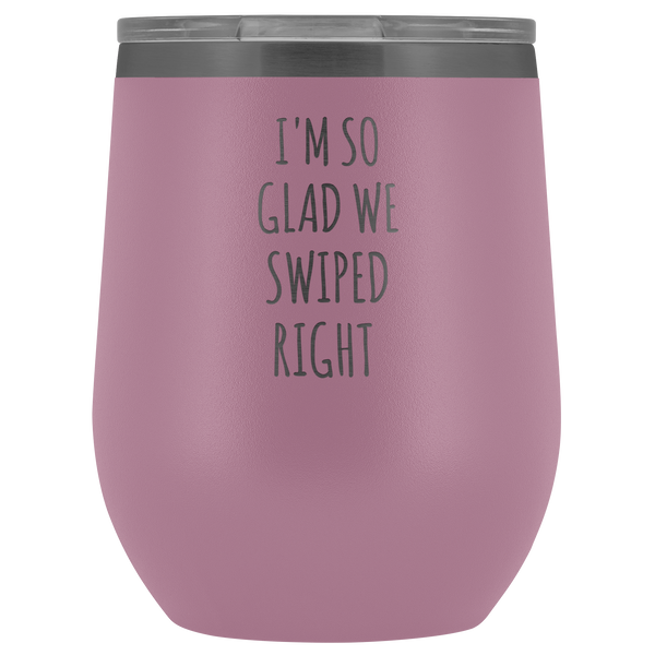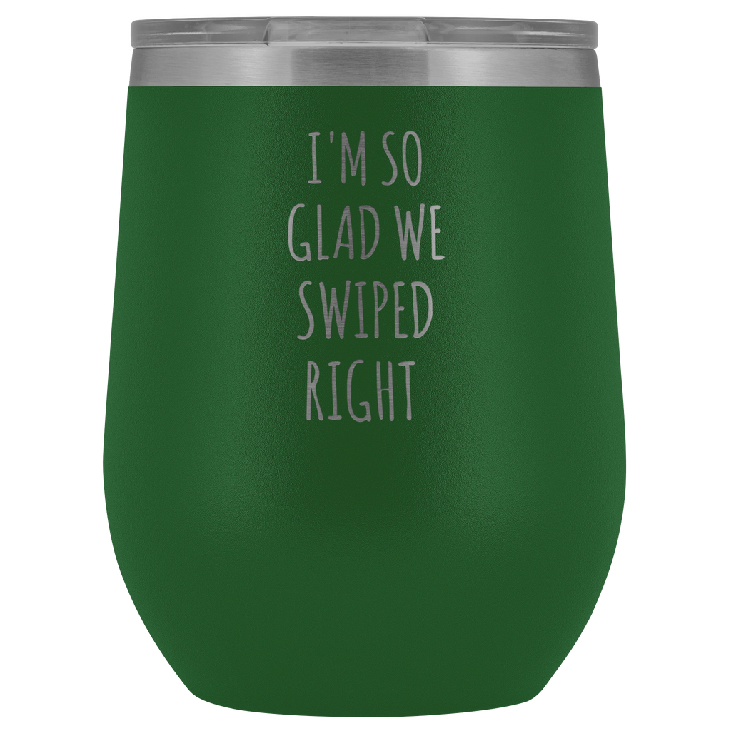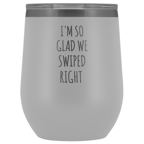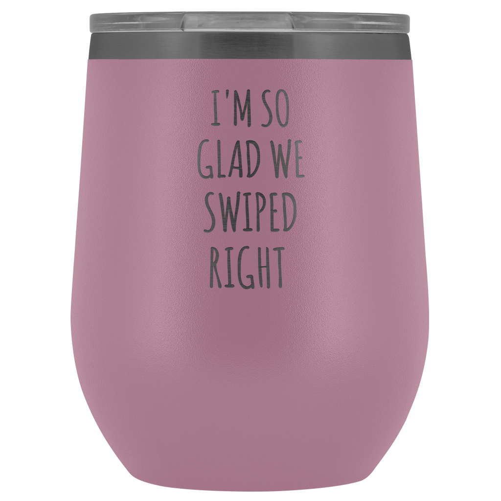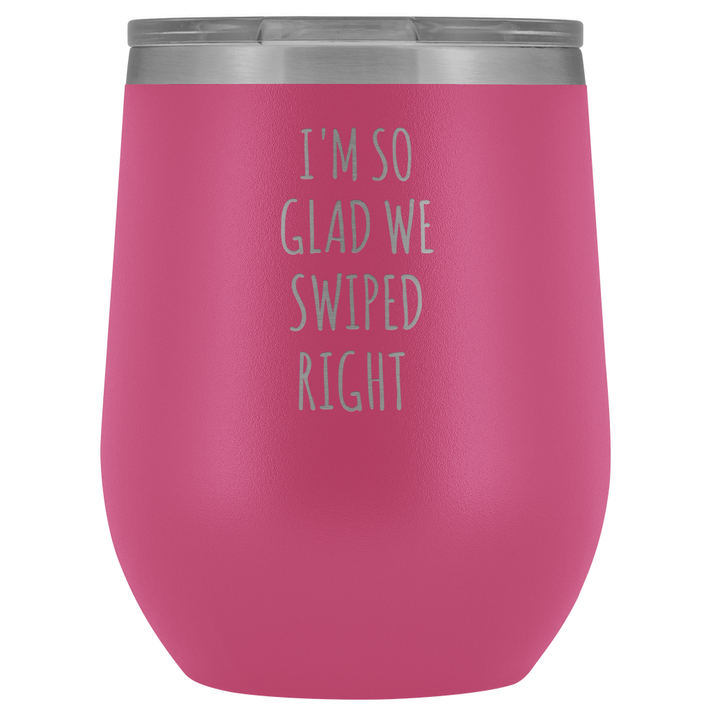 I'm So Glad We Swiped Right Tumbler Online Dating New Relationship Gift Stemless Stainless Steel Insulated Wine Tumbler Cup BPA Free 12oz