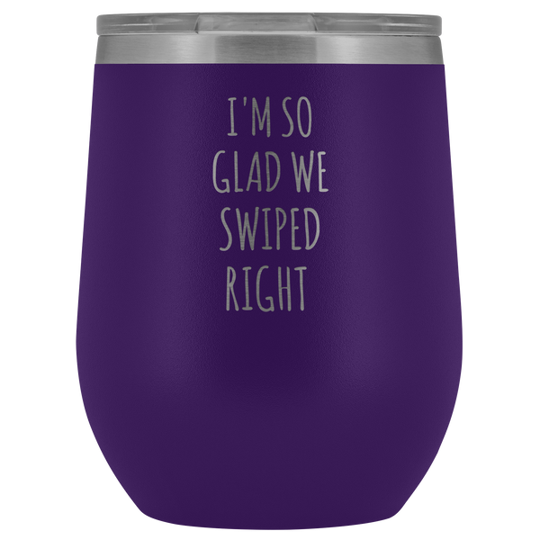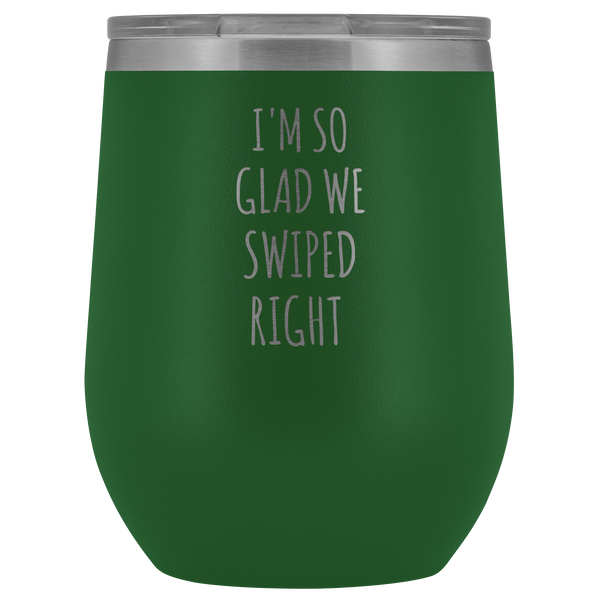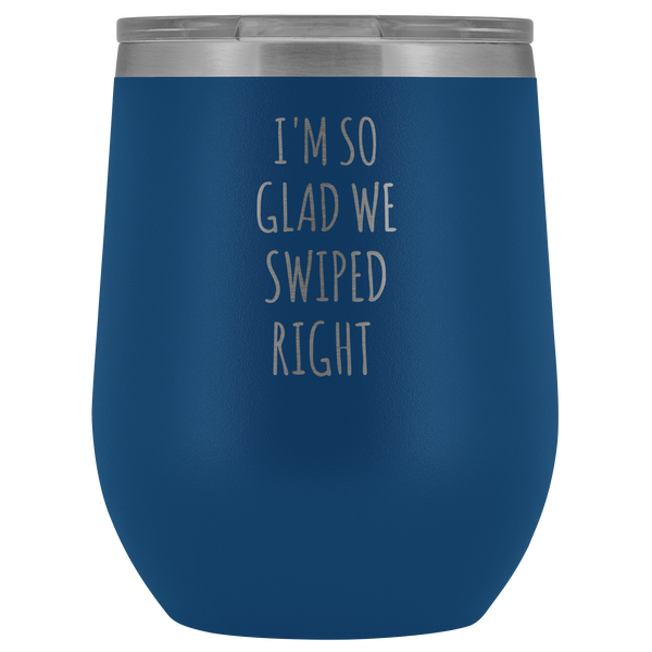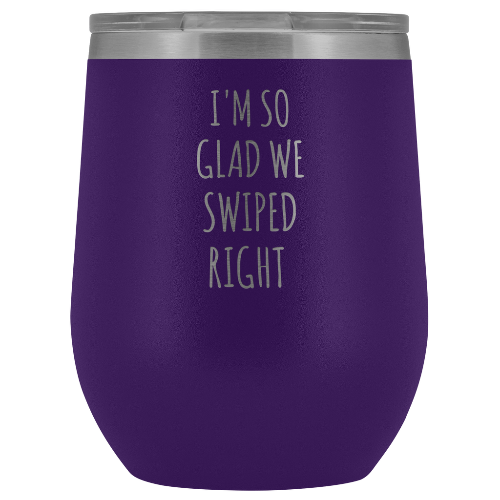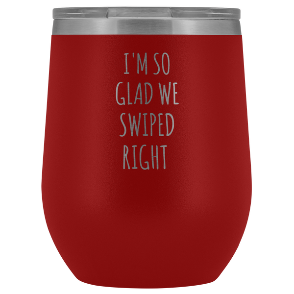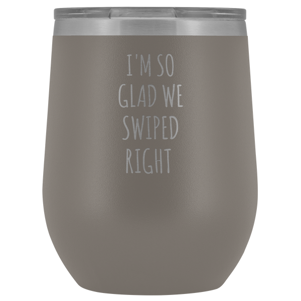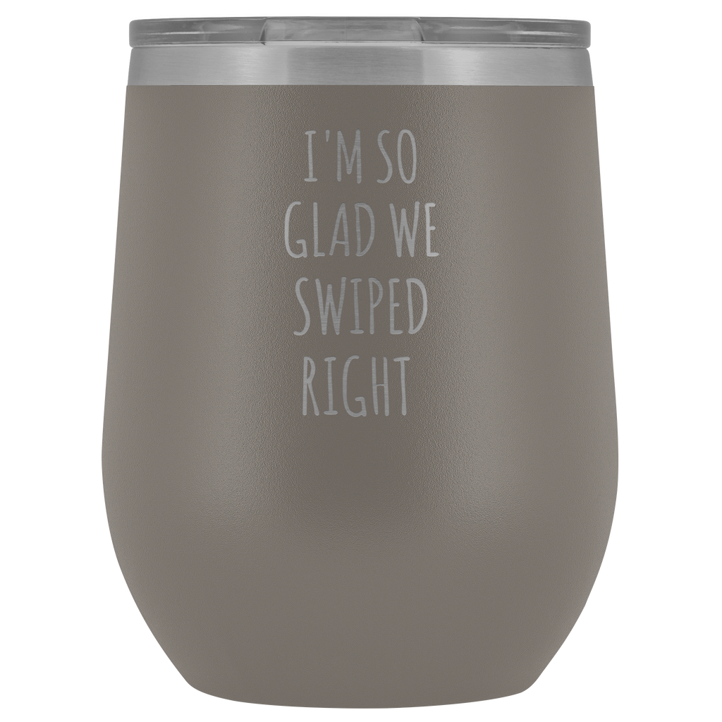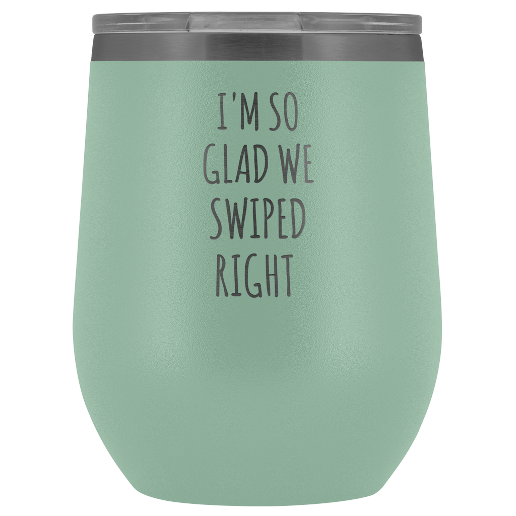 I'm So Glad We Swiped Right Tumbler Online Dating New Relationship Gift Stemless Stainless Steel Insulated Wine Tumbler Cup BPA Free 12oz