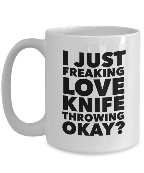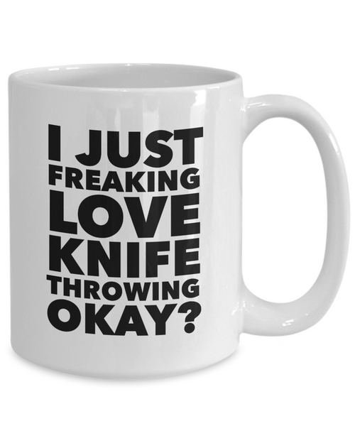 Knife Thrower Gifts I Just Freaking Love Knife Throwing Okay Funny Mug Ceramic Coffee Cup