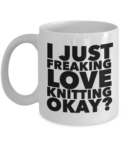 Knitter Gifts I Just Freaking Love Knitting Okay Funny Mug Ceramic Coffee Cup