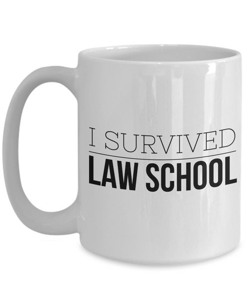 Law Graduation Coffee Mug - I Survived Law School Ceramic Coffee Cup