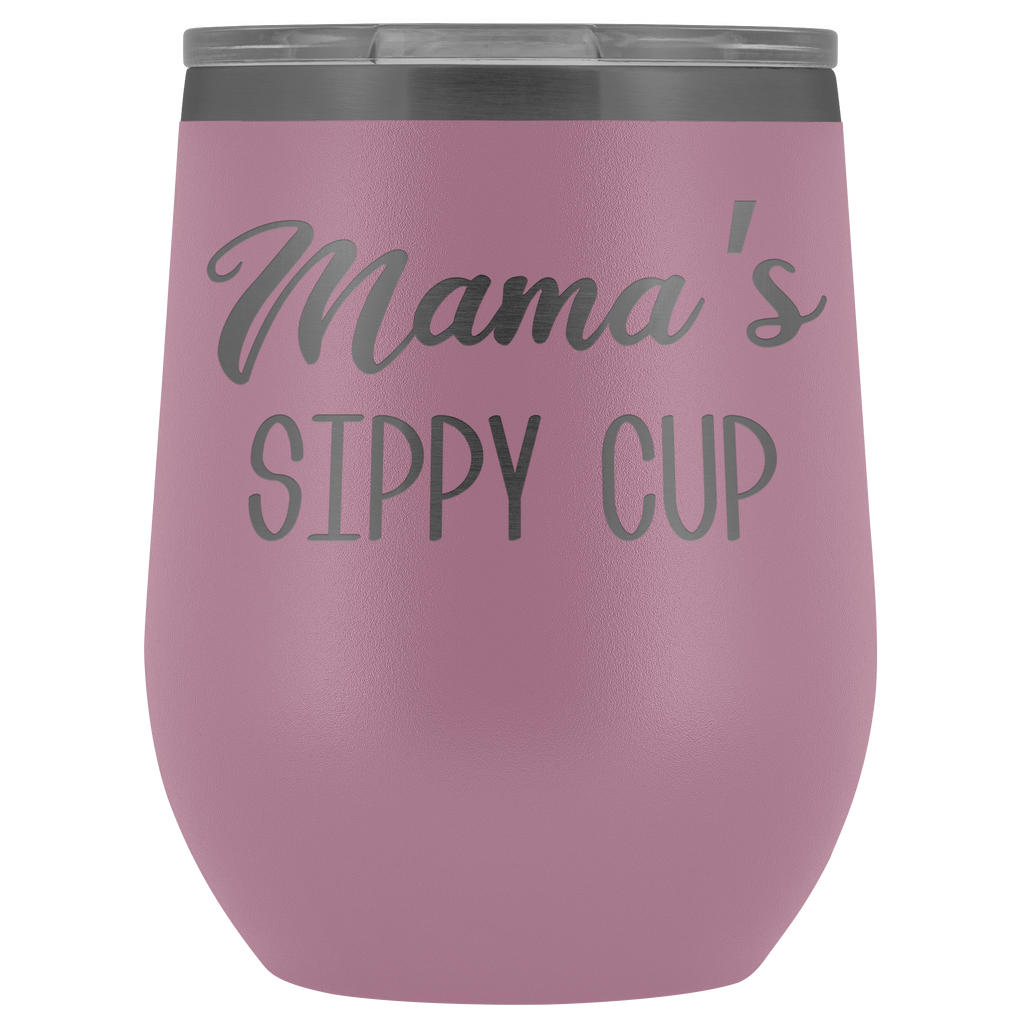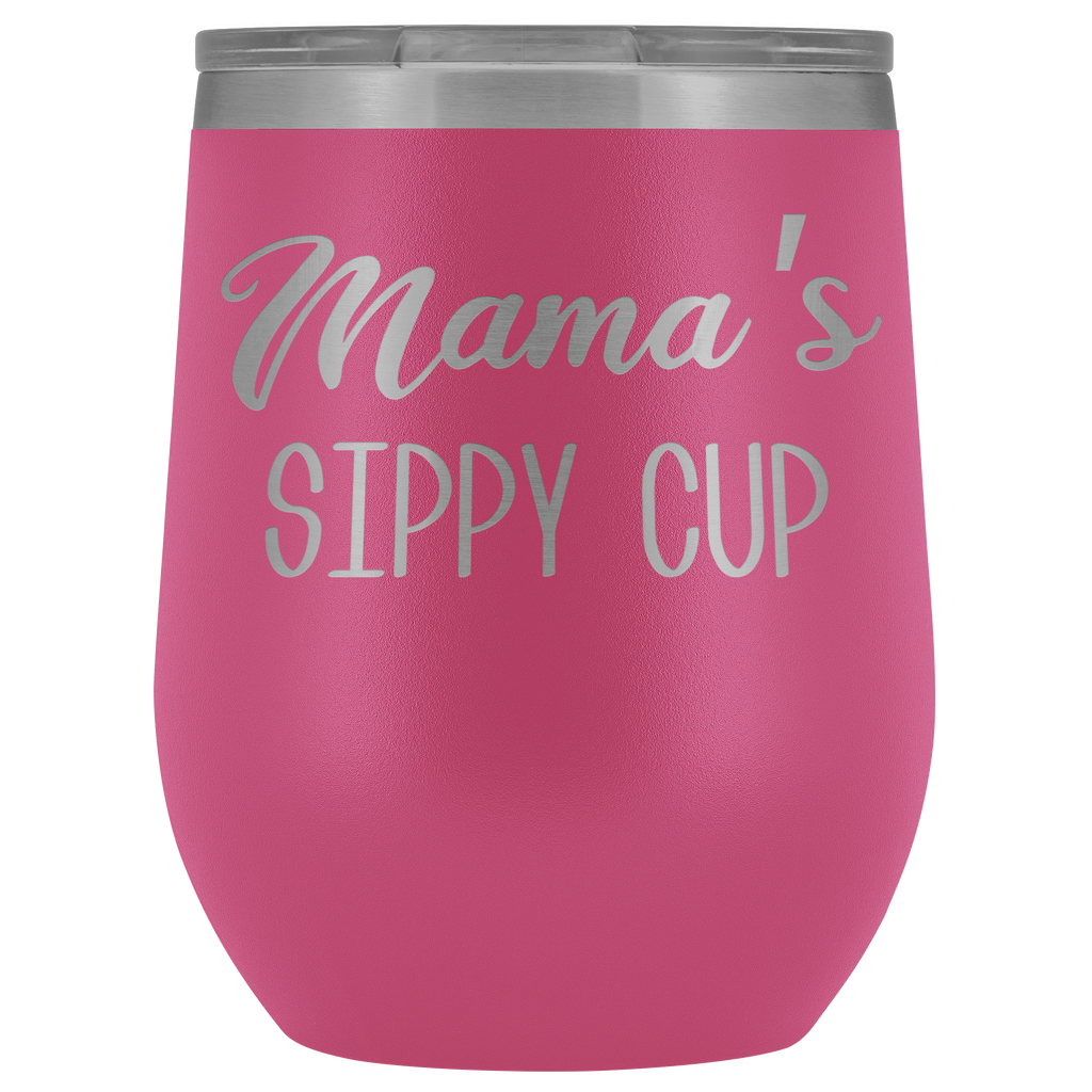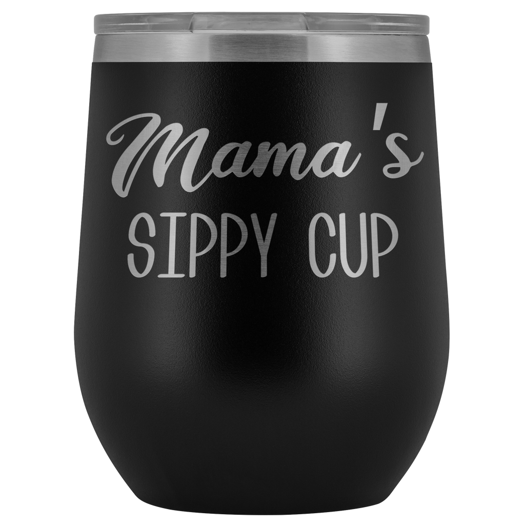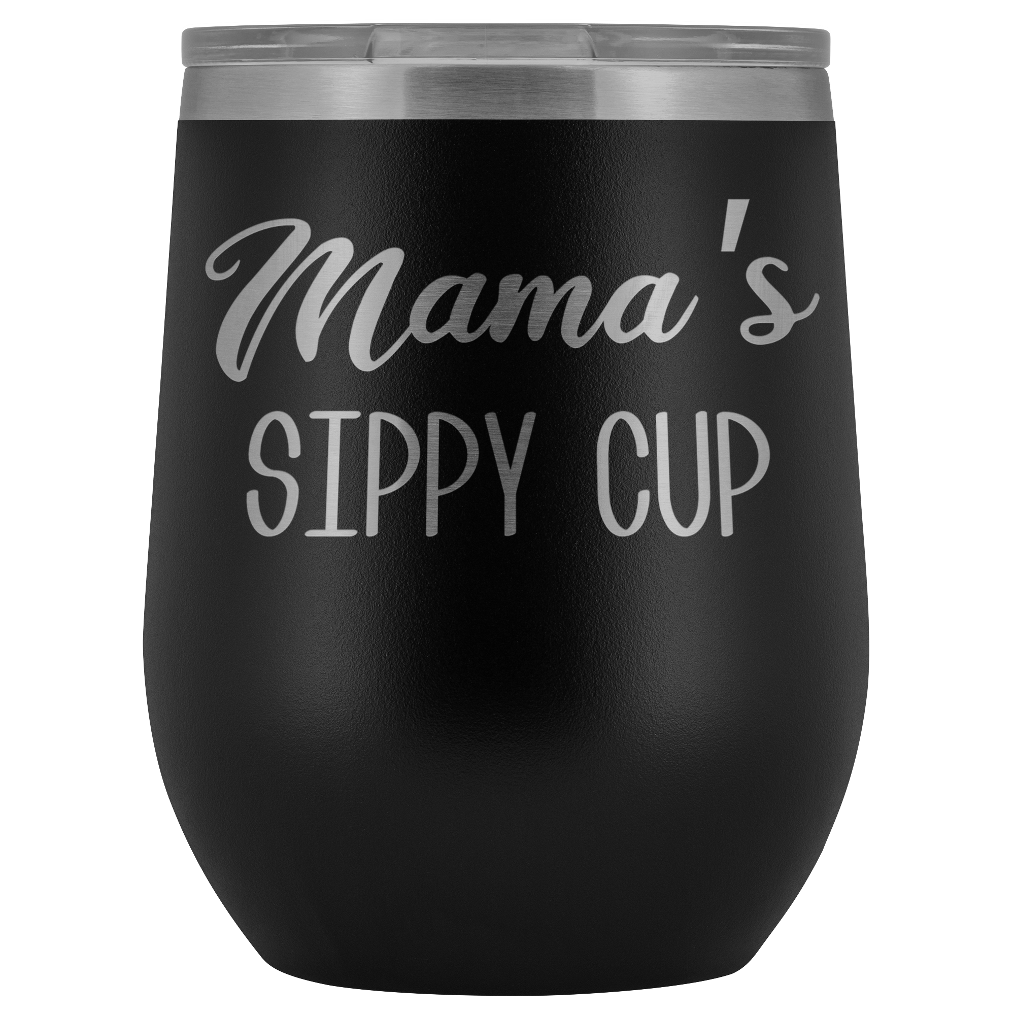 Mama's Sippy Cup Mama Wine Tumbler Gifts for Mamas Funny Stemless Stainless Steel Insulated Tumblers Hot Cold BPA Free 12oz Travel Cup