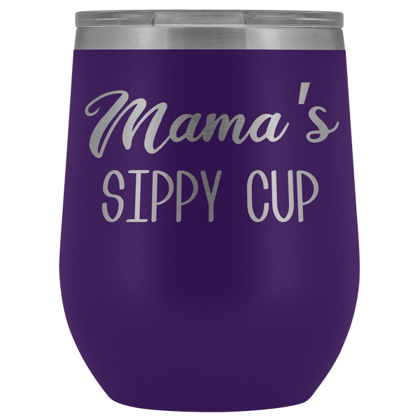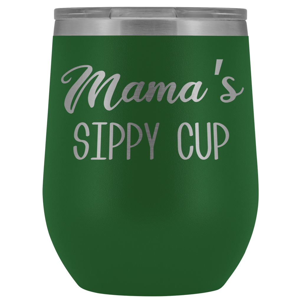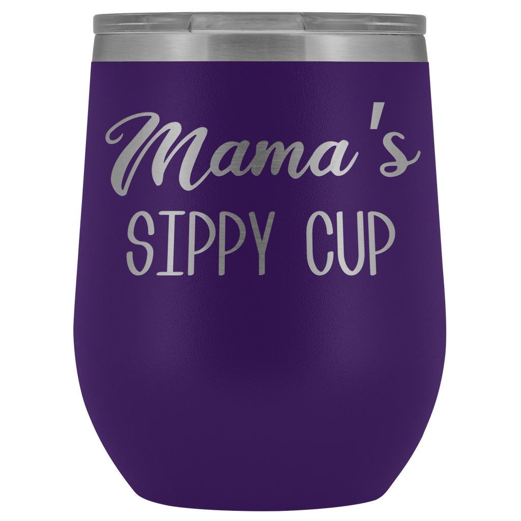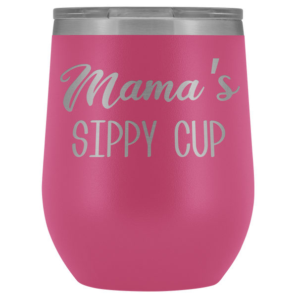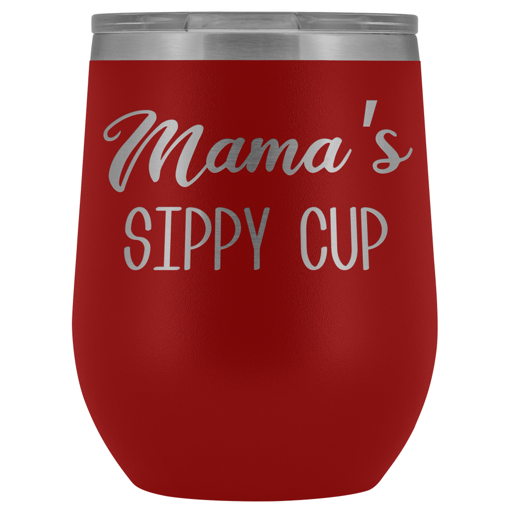 Mama's Sippy Cup Mama Wine Tumbler Gifts for Mamas Funny Stemless Stainless Steel Insulated Tumblers Hot Cold BPA Free 12oz Travel Cup