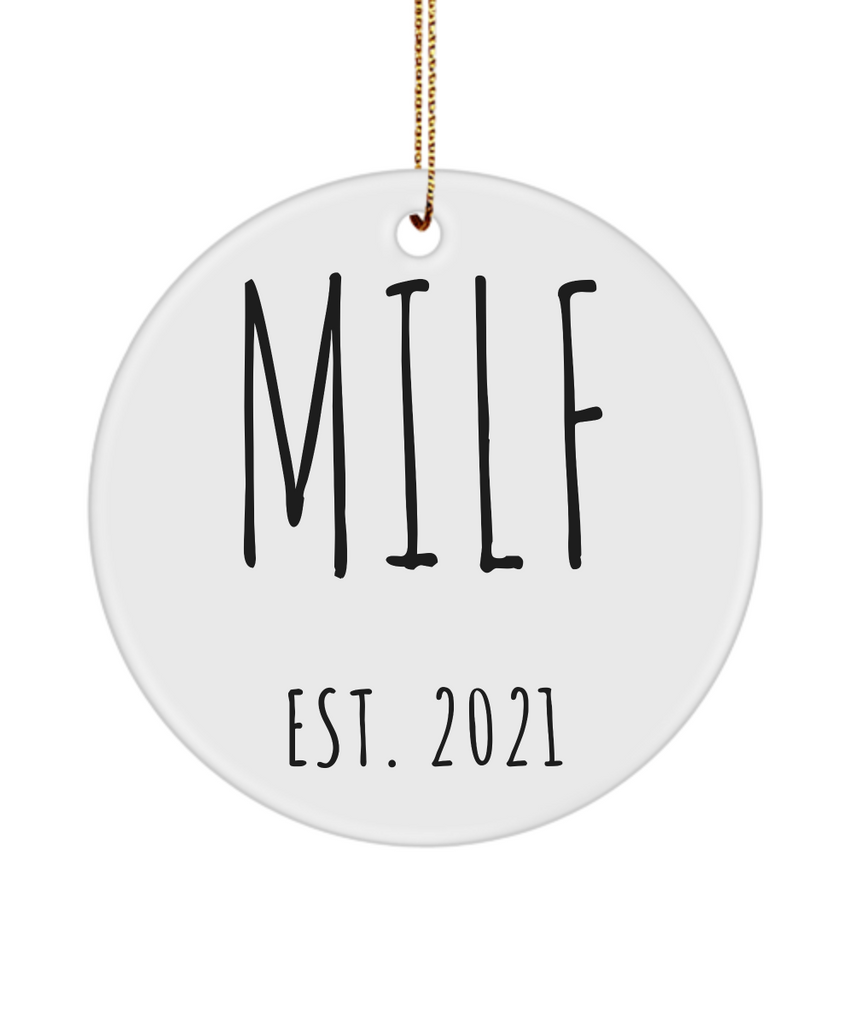 MILF Christmas Tree Ornament Push Present For New Mom Holiday Gifts Funny Mother Est 2020 Baby Shower Future Mom Pregnant Congratulations