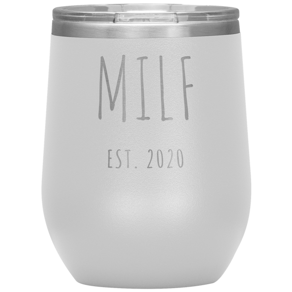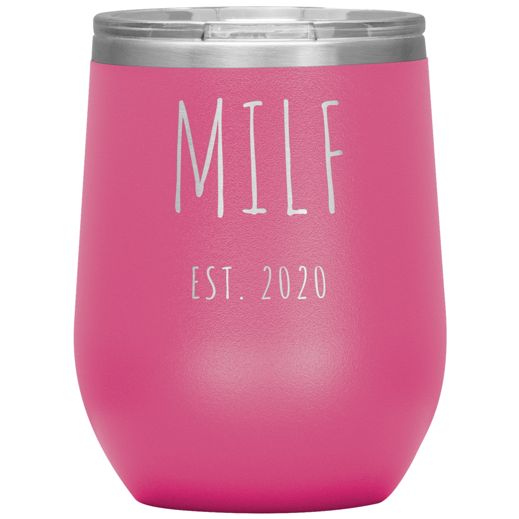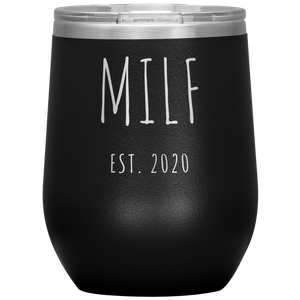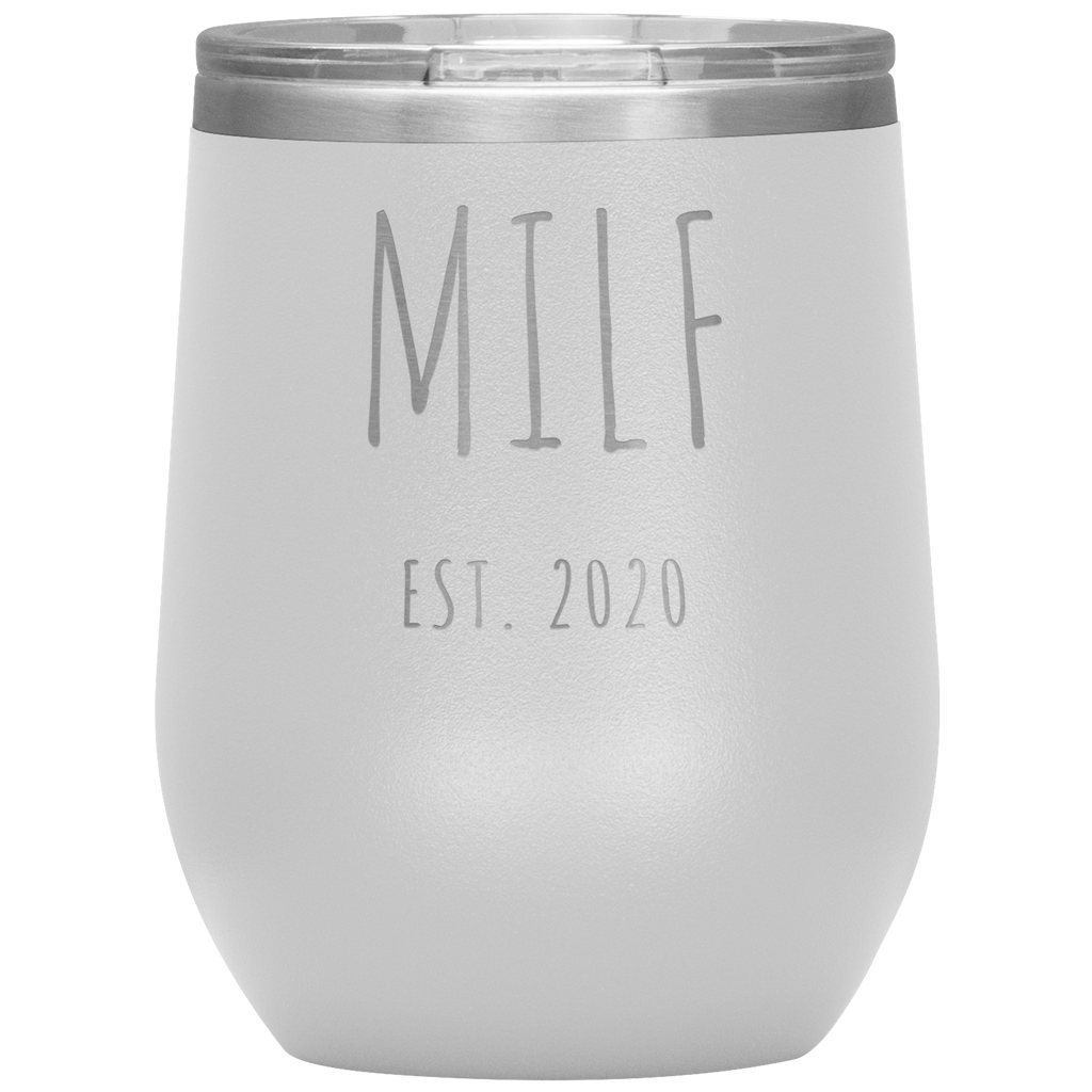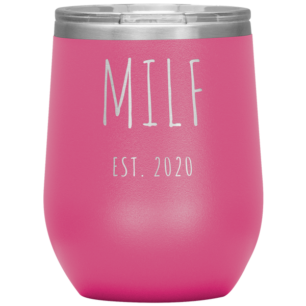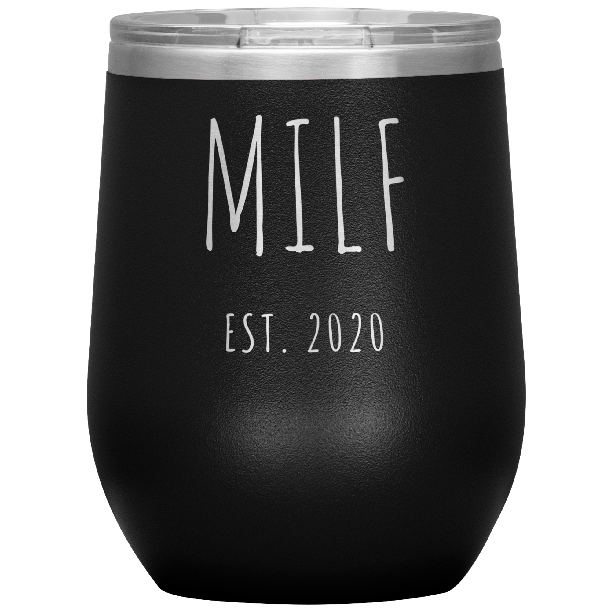 MILF Est 2020 Wine Tumbler Expecting Mom Gifts Push Present Funny Stemless Stainless Steel Insulated Tumblers BPA Free 12oz Travel Cup