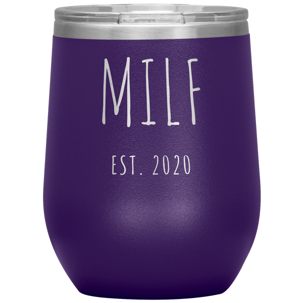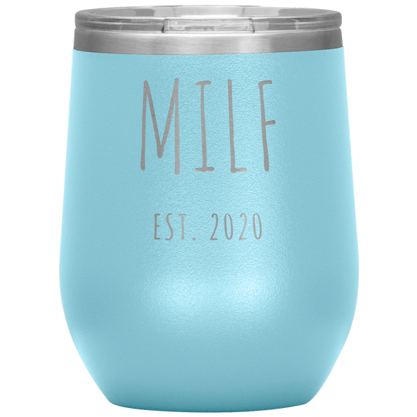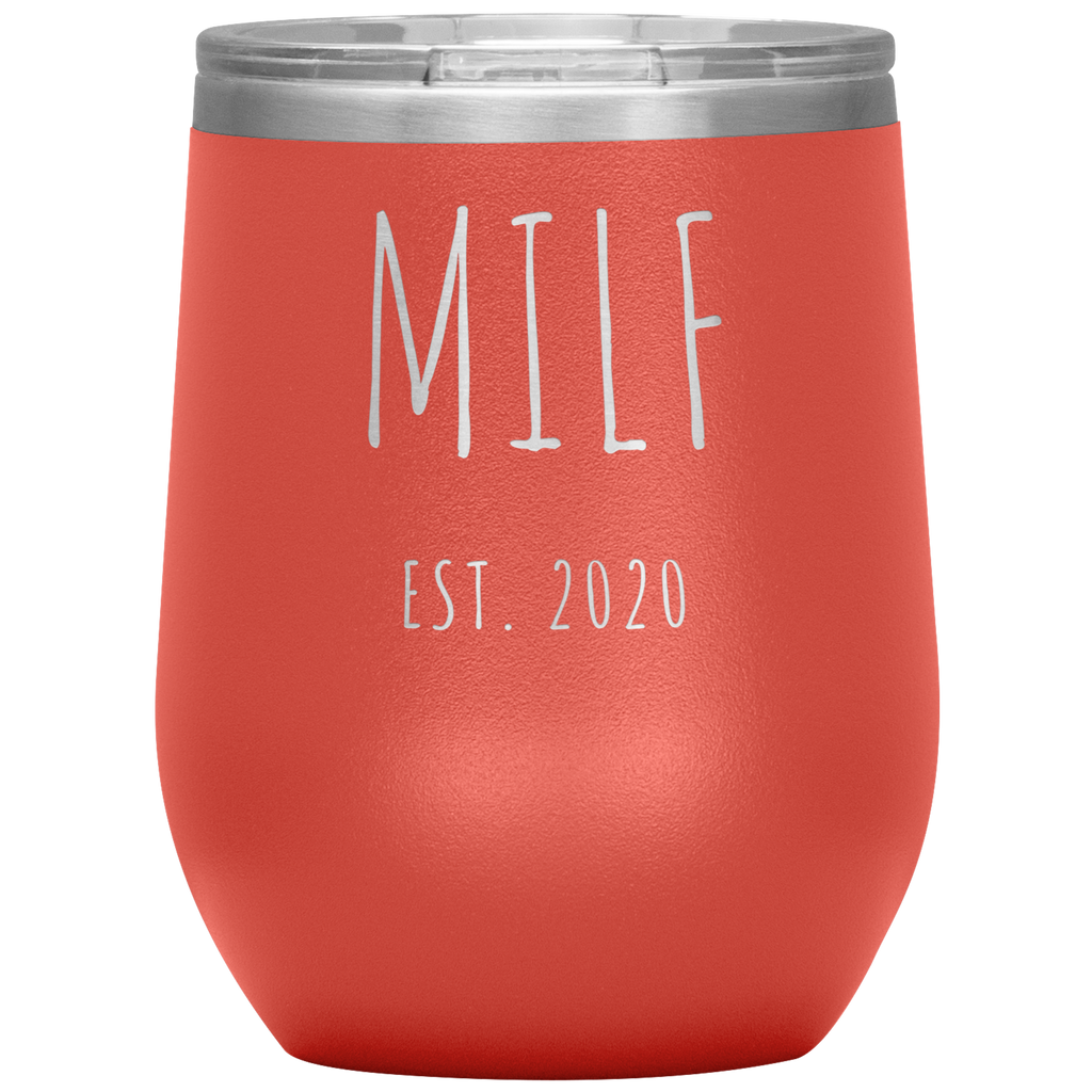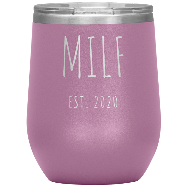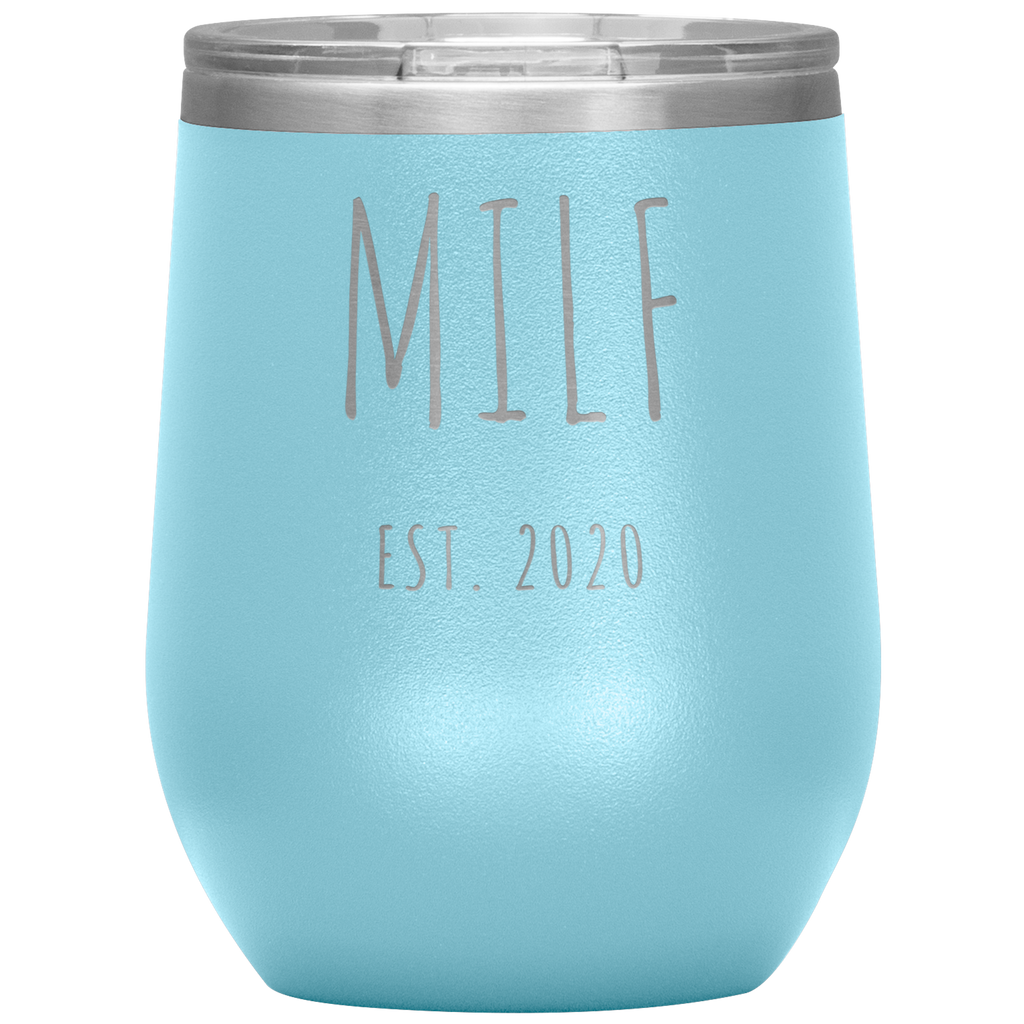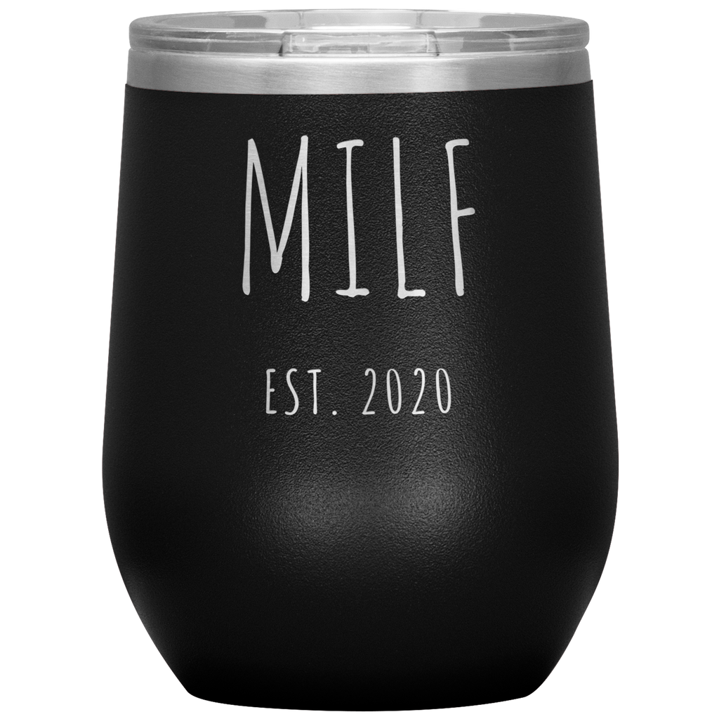MILF Est 2020 Wine Tumbler Expecting Mom Gifts Push Present Funny Stemless Stainless Steel Insulated Tumblers BPA Free 12oz Travel Cup