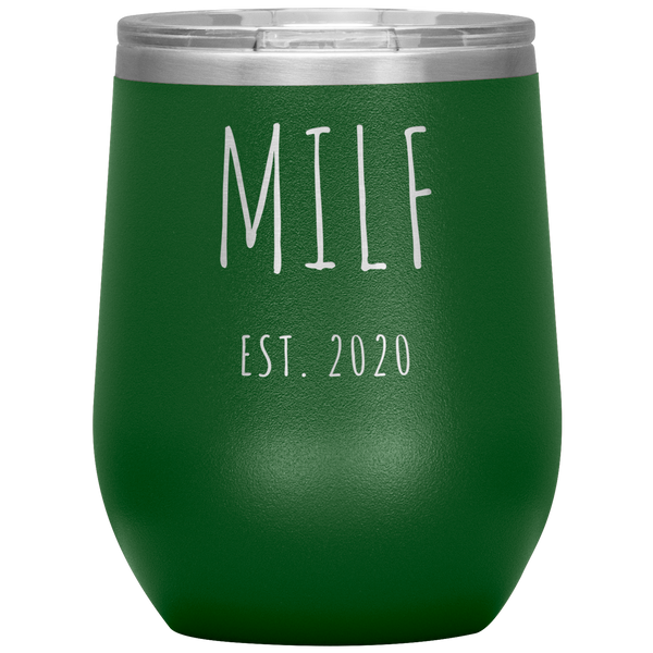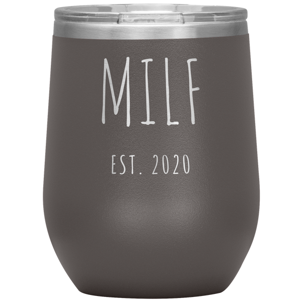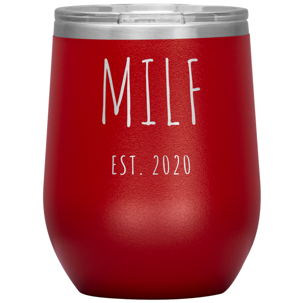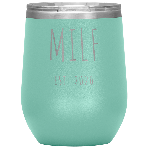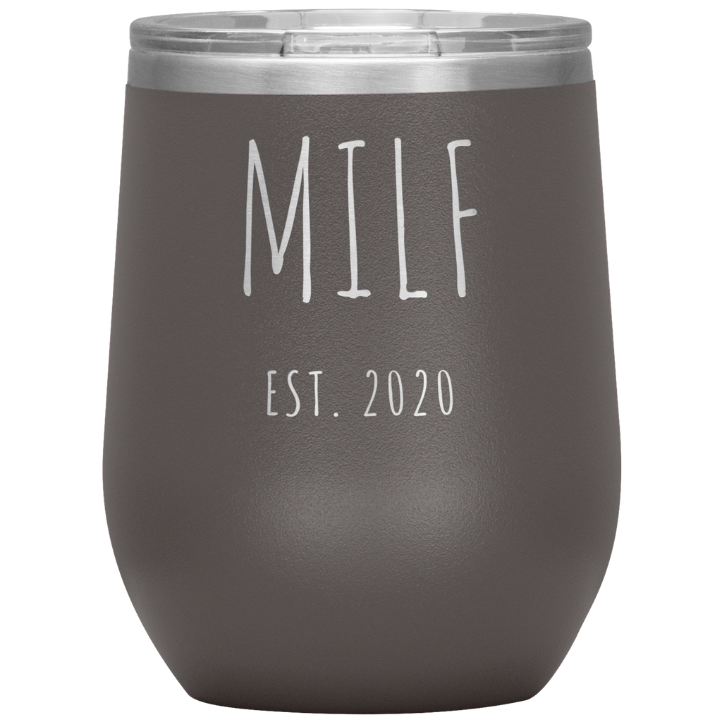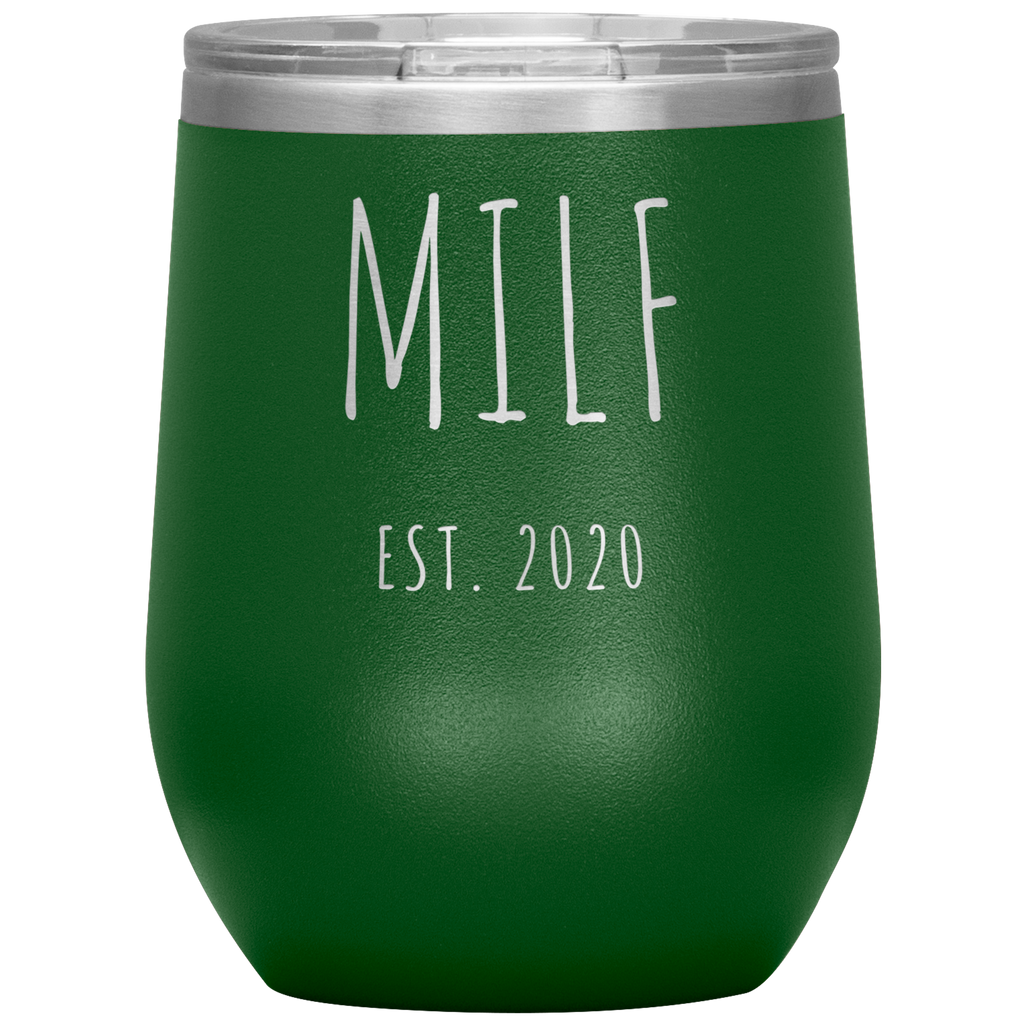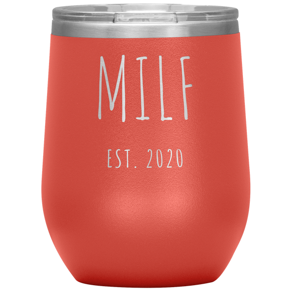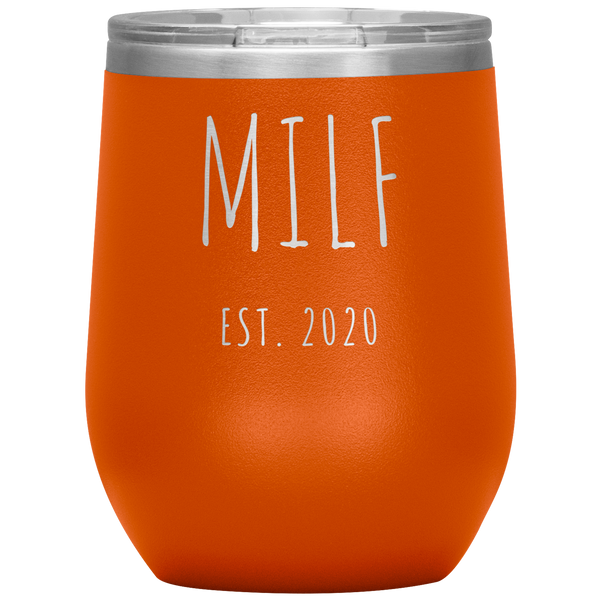 MILF Est 2020 Wine Tumbler Expecting Mom Gifts Push Present Funny Stemless Stainless Steel Insulated Tumblers BPA Free 12oz Travel Cup