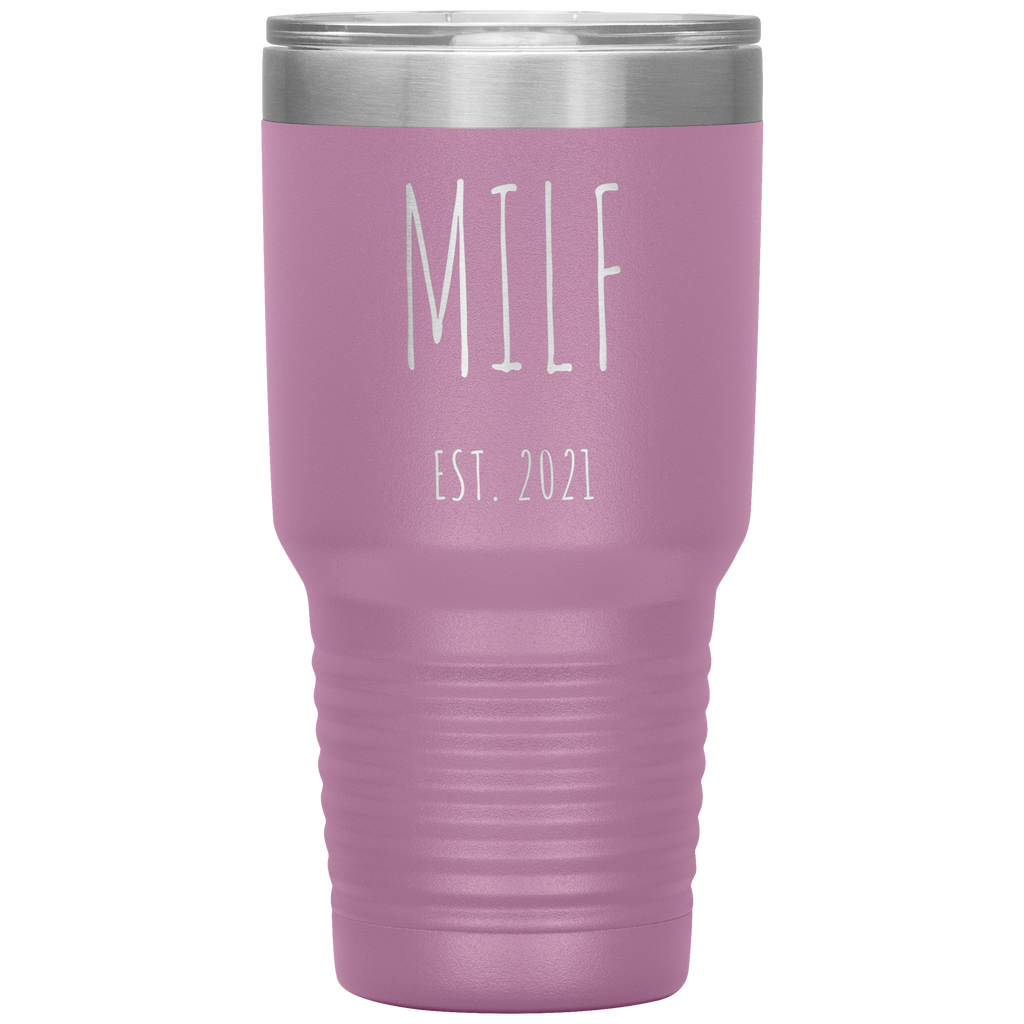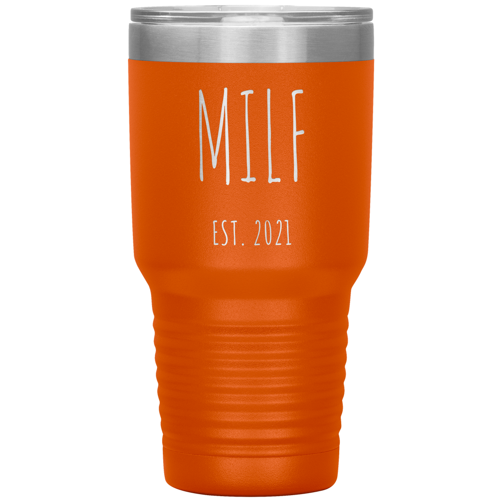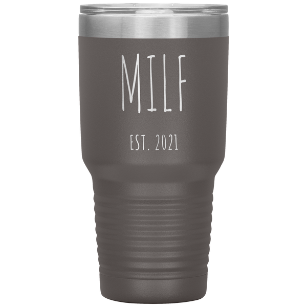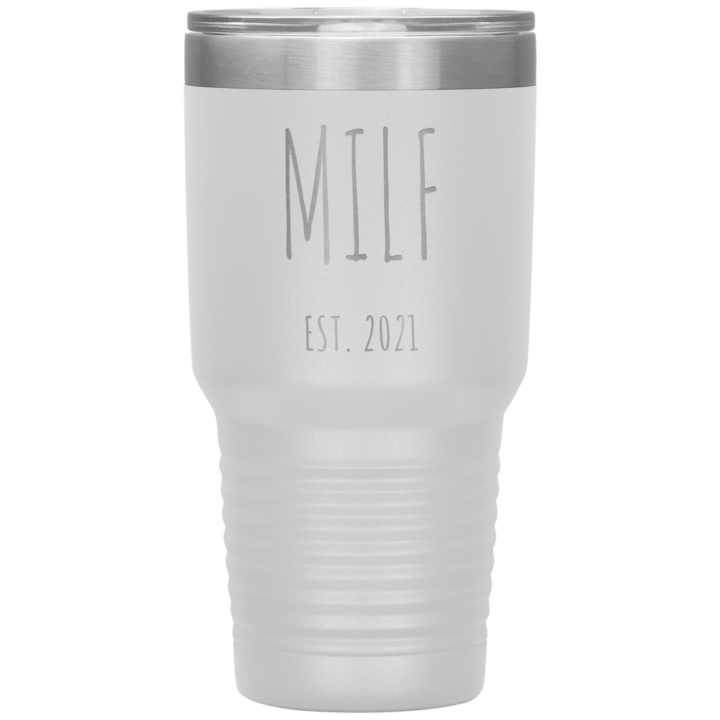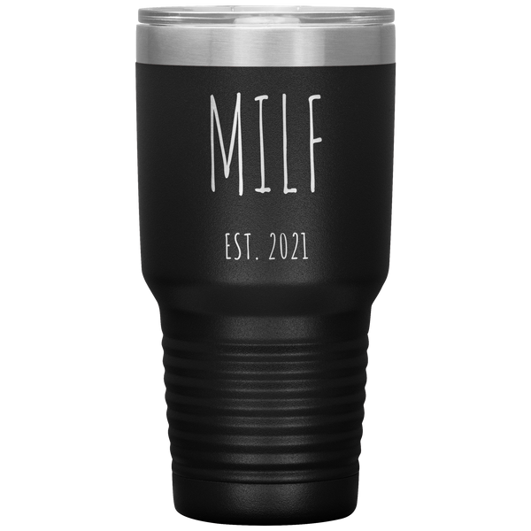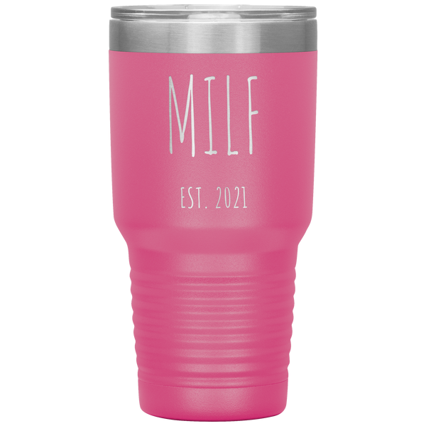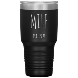 MILF Est 2021 Wine Tumbler Expecting Mom Gifts Push Present Funny Tumbler Insulated Hot Cold Travel Coffee Cup BPA Free