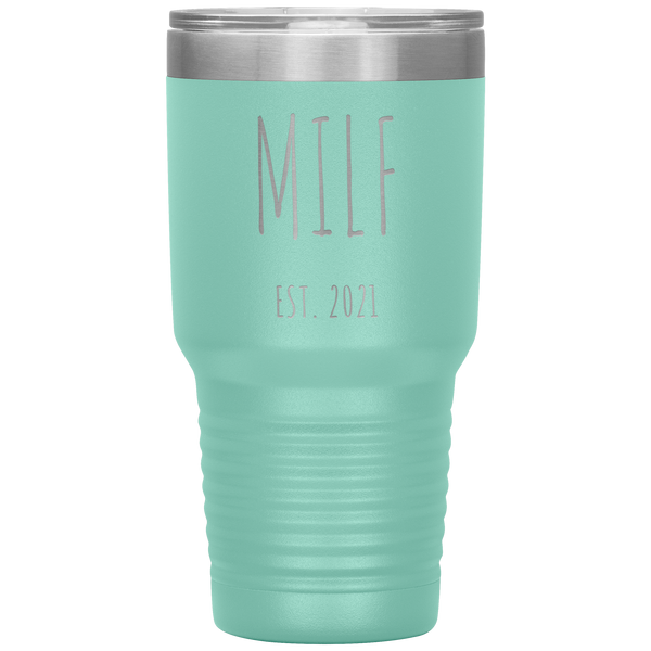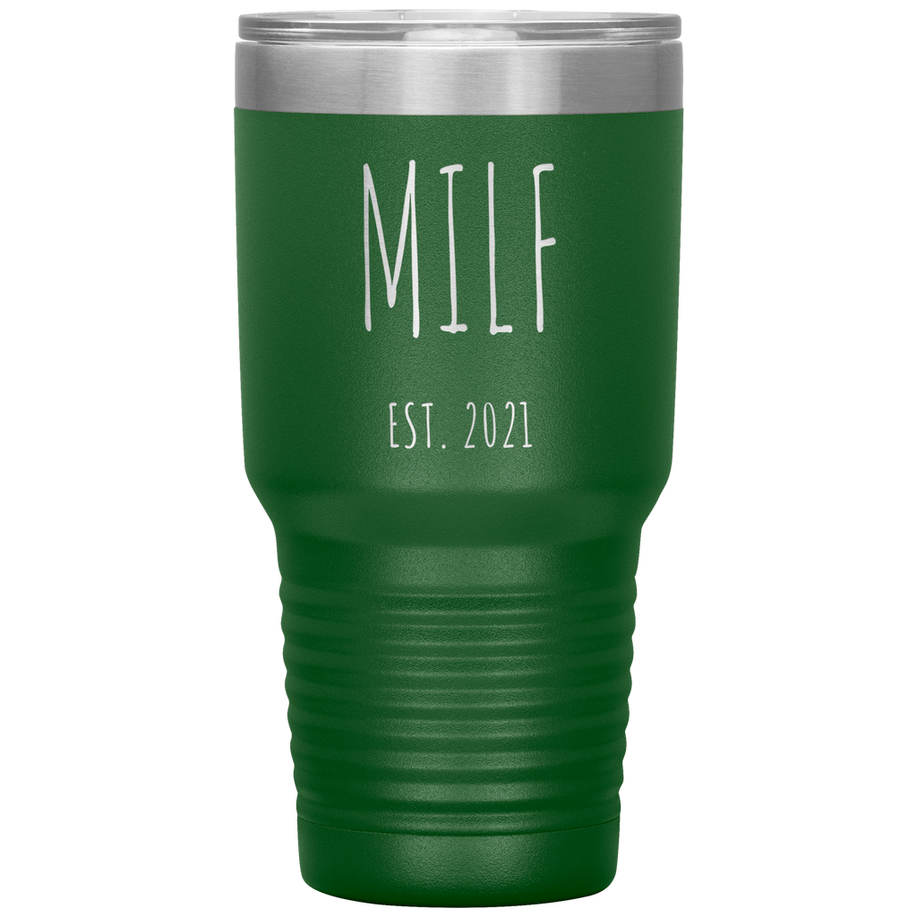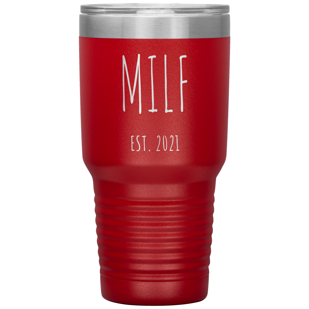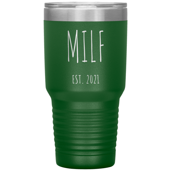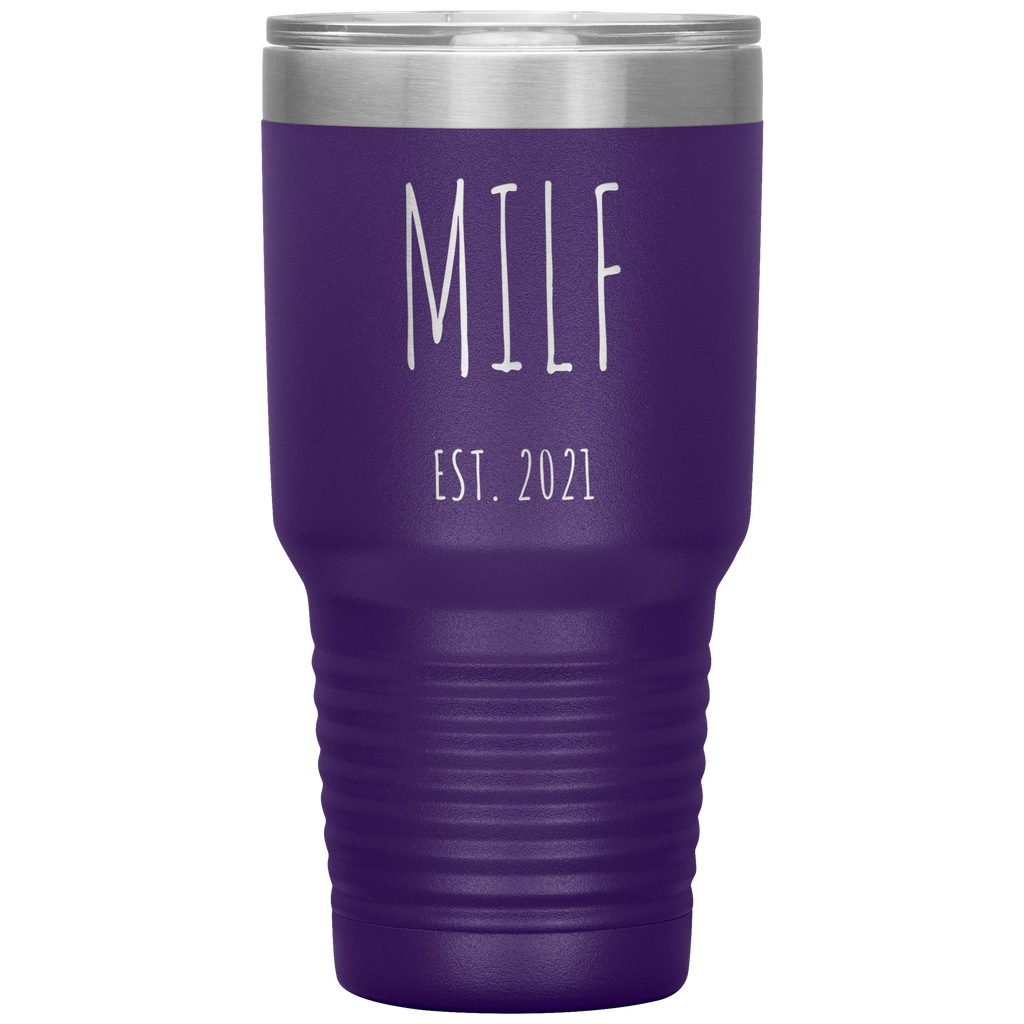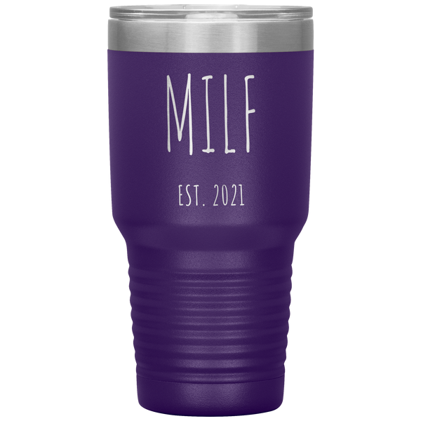 MILF Est 2021 Wine Tumbler Expecting Mom Gifts Push Present Funny Tumbler Insulated Hot Cold Travel Coffee Cup BPA Free