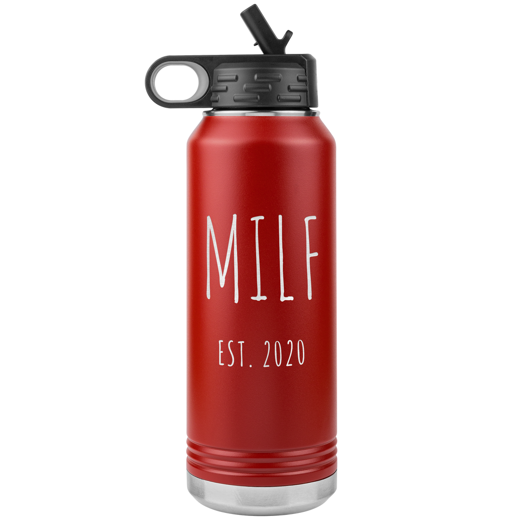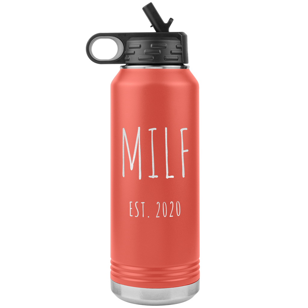 MILF Mug Push Present For New Mom Gifts Funny Mother Est 2020 Water Bottle Baby Shower Future Mom Pregnant Congratulations 32oz BPA Free