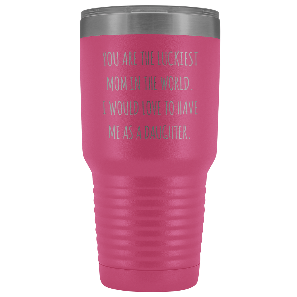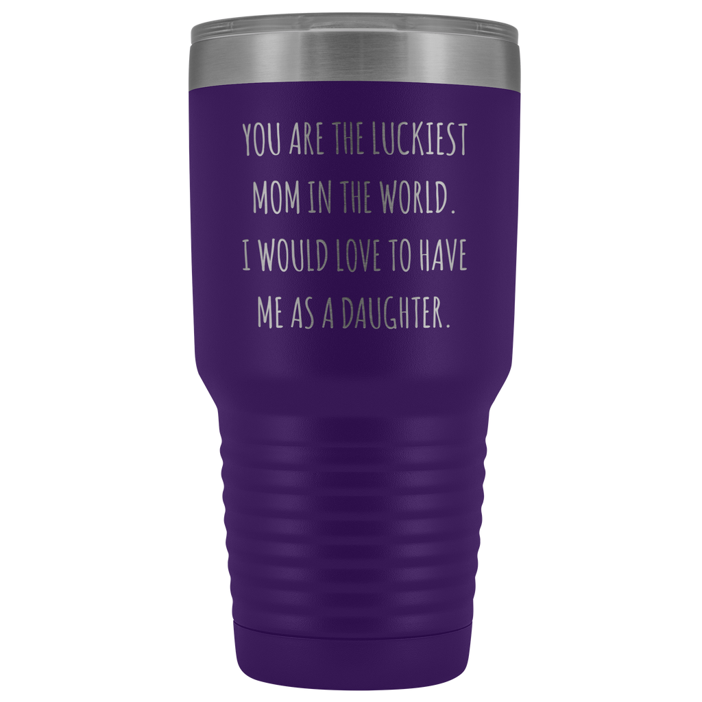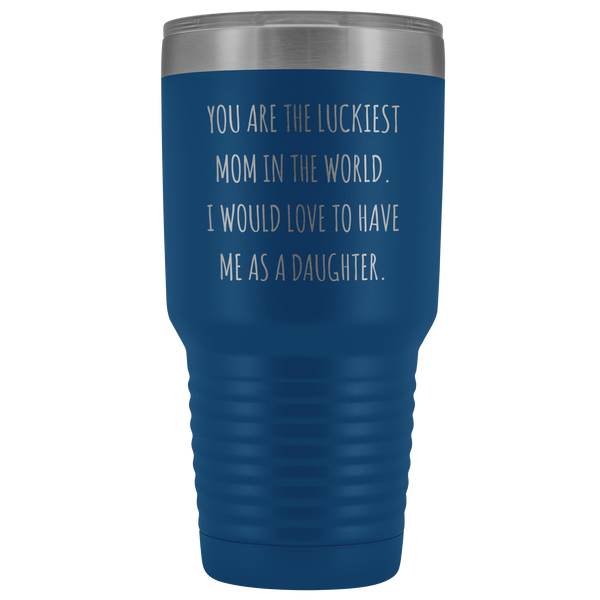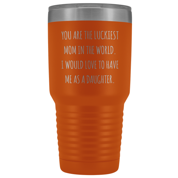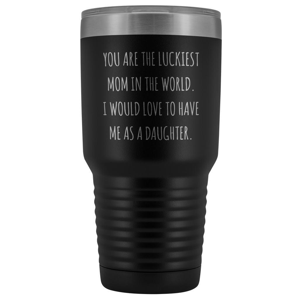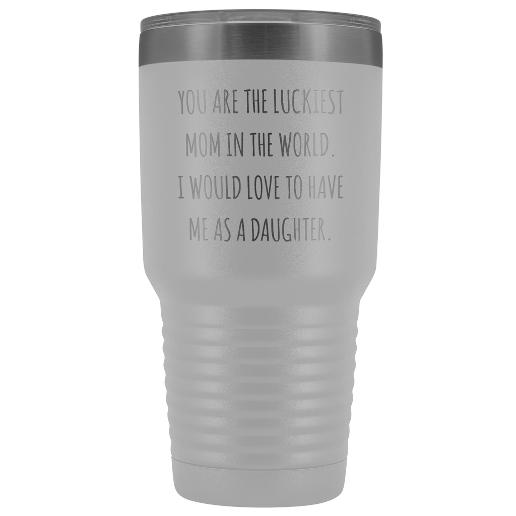 Mom Birthday Gift You are the Luckiest Mom in the World I Would Love to Have Me as a Daughter Tumbler Funny Travel Cup Mug 30oz BPA Free