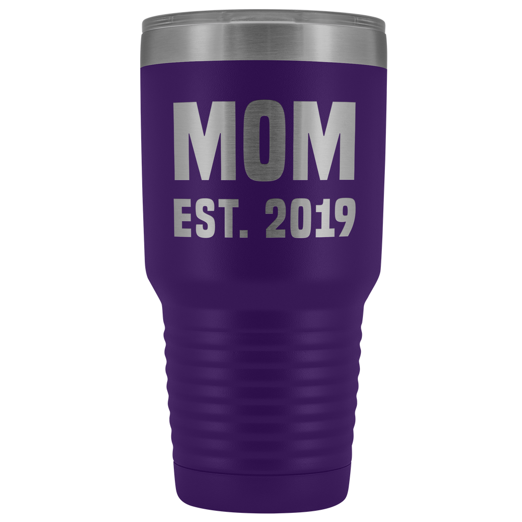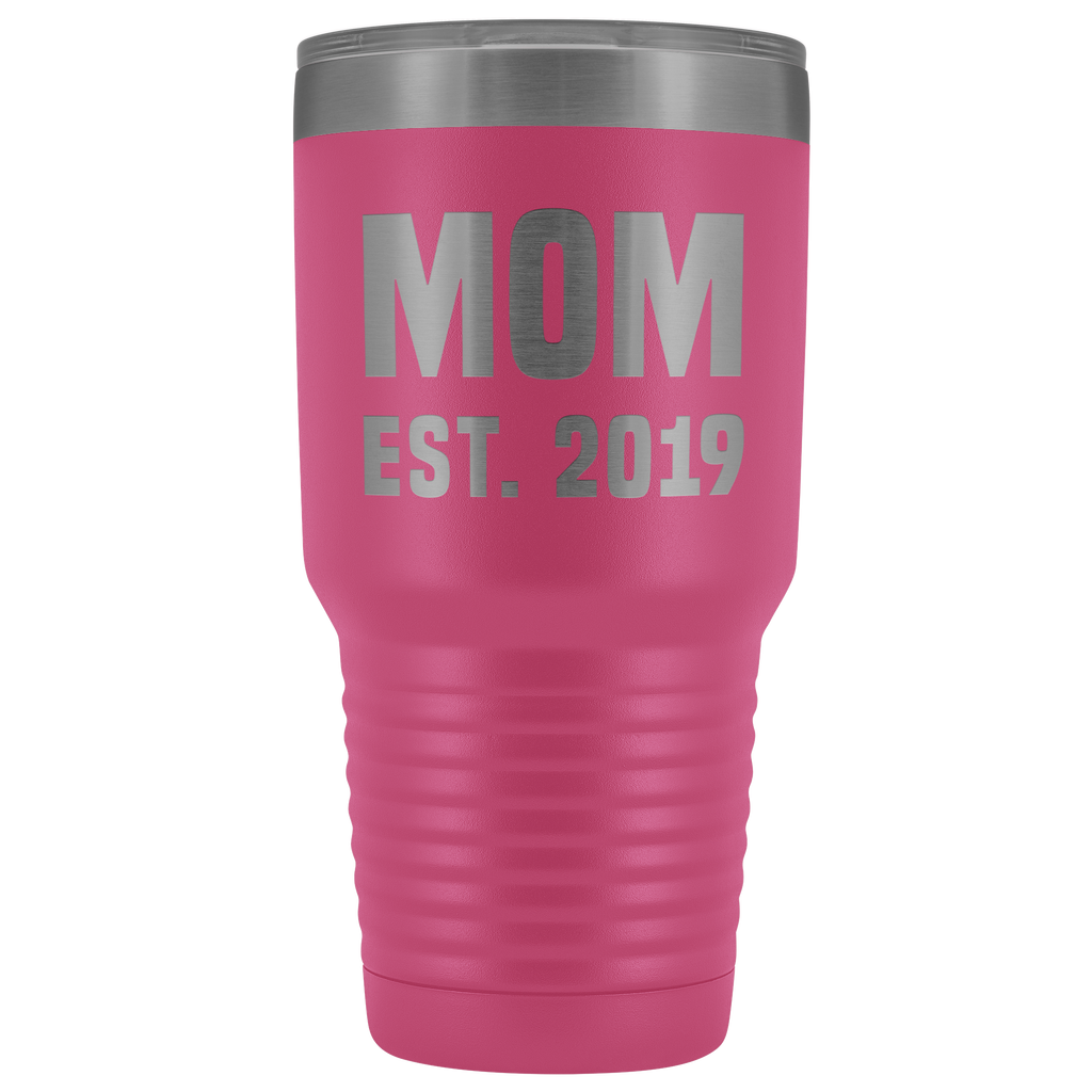 Mom Est 2019 Tumbler Funny Mother's Day Gifts New Mom Mug Double Wall Insulated Hot Cold Travel Cup 30oz BPA Free