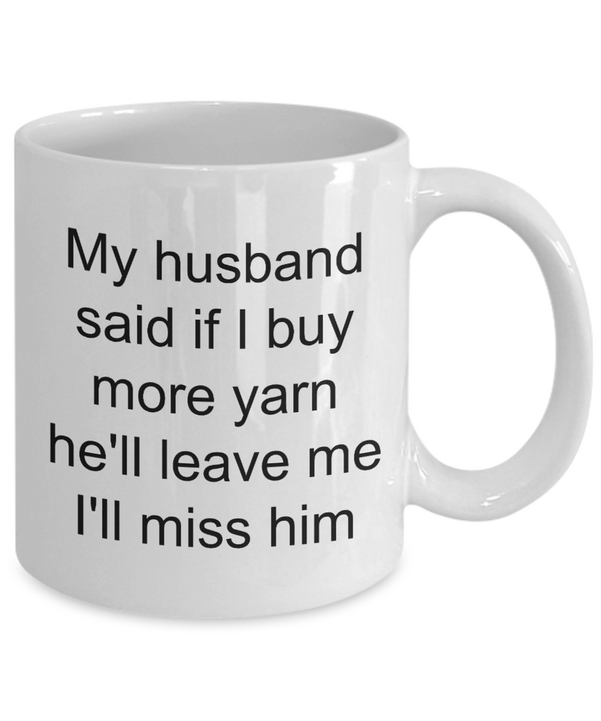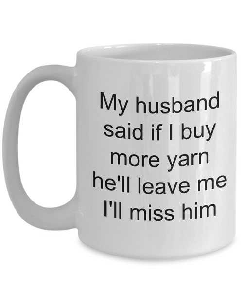 Knitting Mug - My Husband Said If I Buy More Yarn He'll Leave Me I'll Miss Him Ceramic Coffee Cup