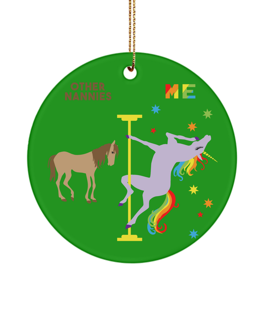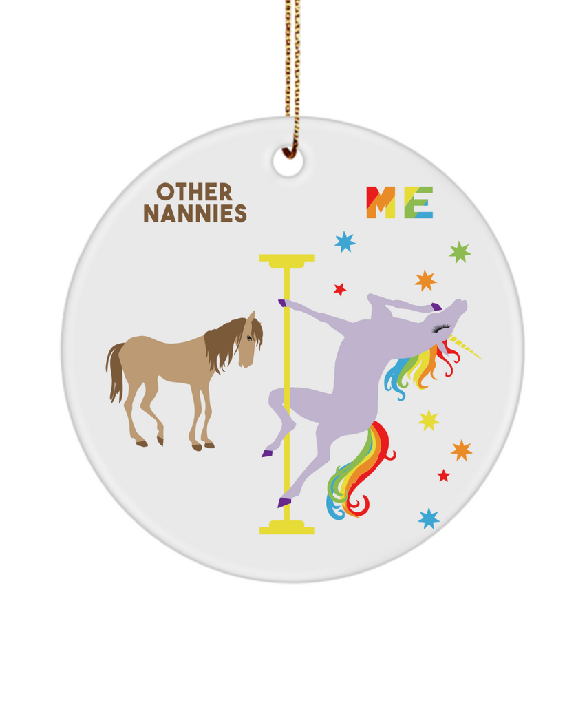Nanny Present Rainbow Unicorn Ceramic Christmas Tree Ornament