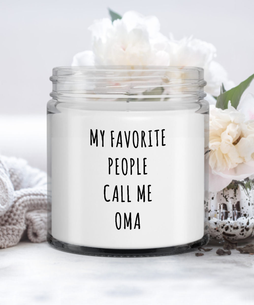 Oma Gift My Favorite People Call Me Oma Candle Vanilla Scented Soy Wax Blend 9 oz. with Lid